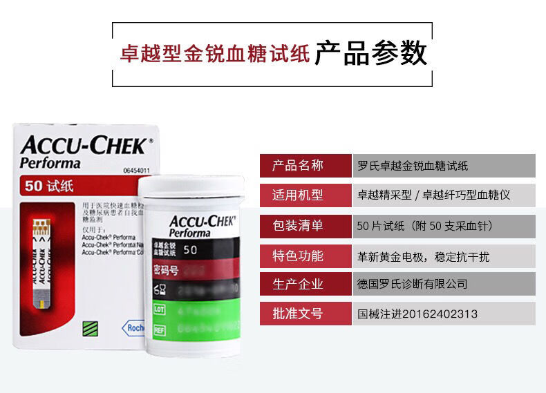 卓越金采罗氏型血糖试纸家用免调码测糖尿病试条原装进口 (无盒发货)50试纸丨配针棉