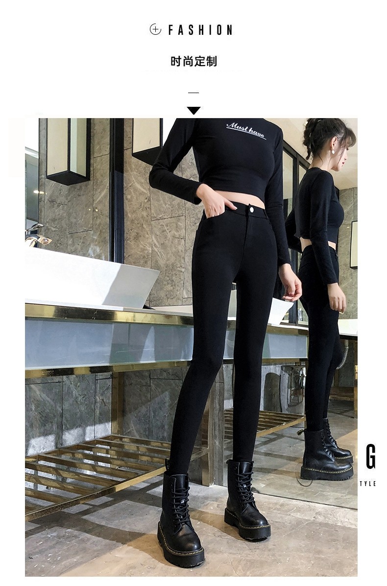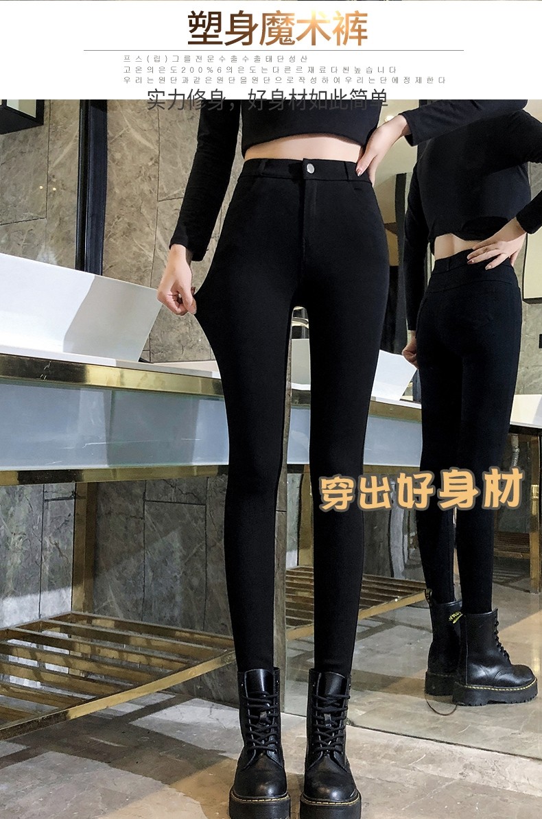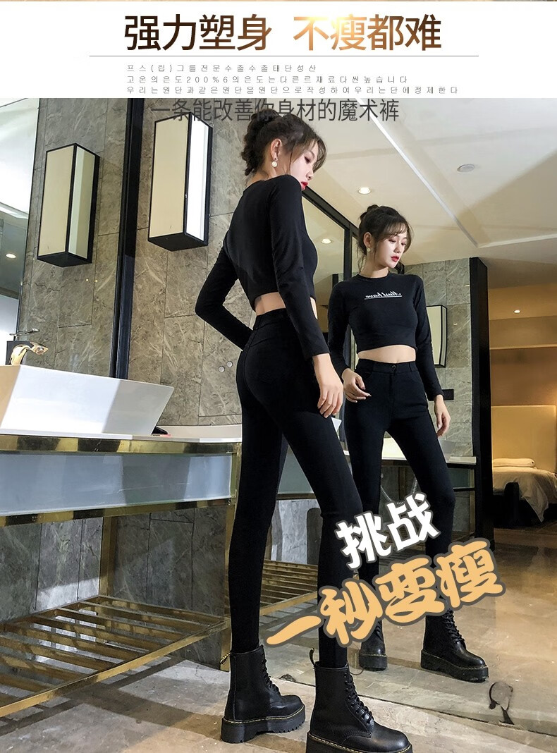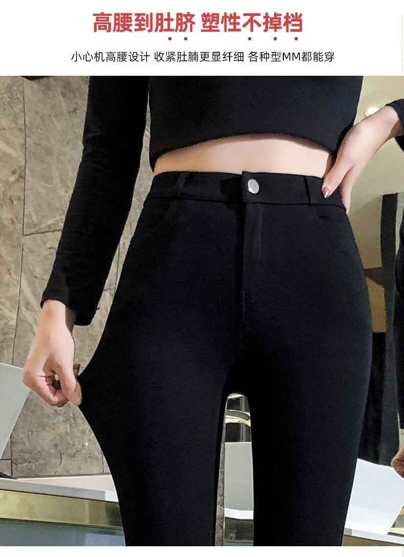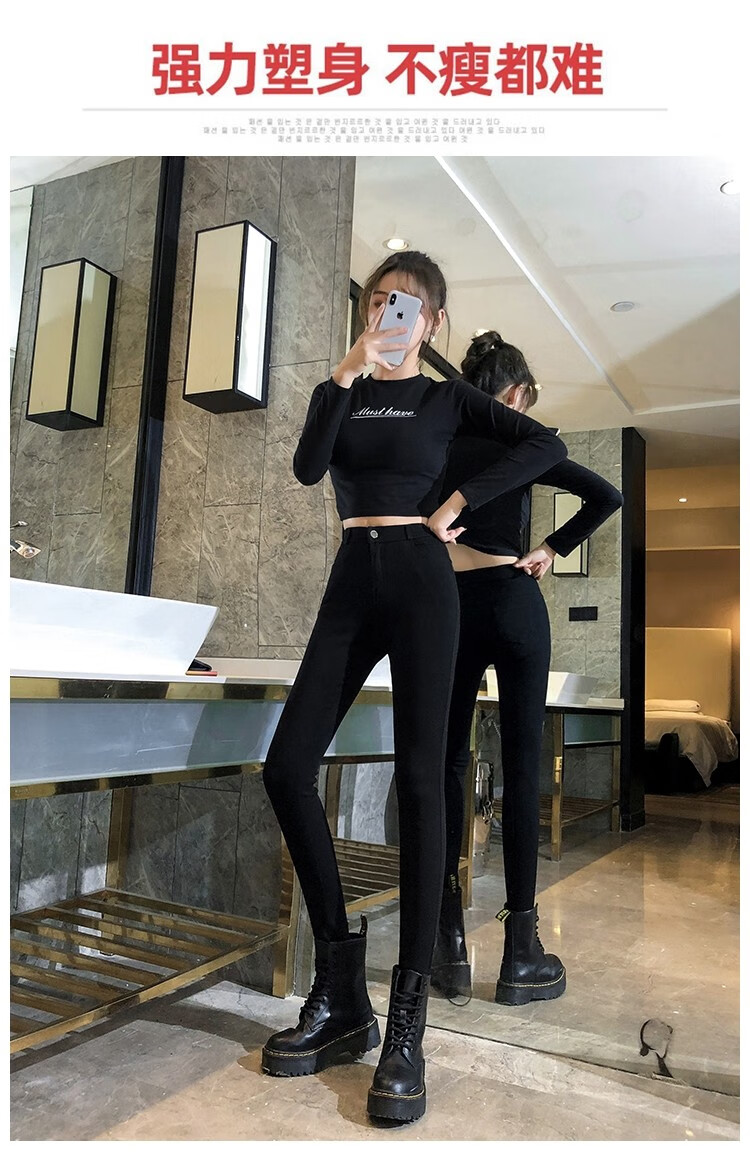 浪莎高腰打底裤女春秋外穿小脚裤黑色弹力显瘦紧身铅笔裤子女 黑色(秋冬加绒) L (105-115斤)