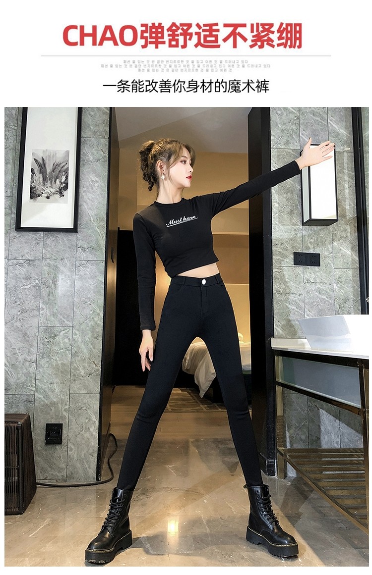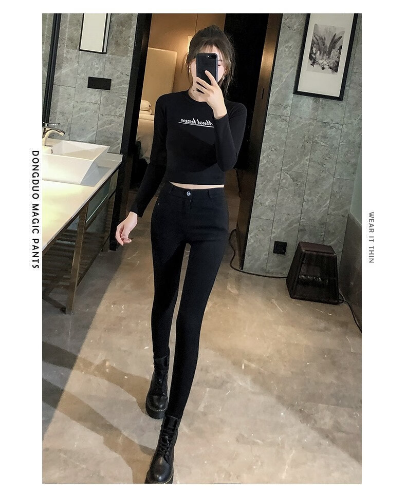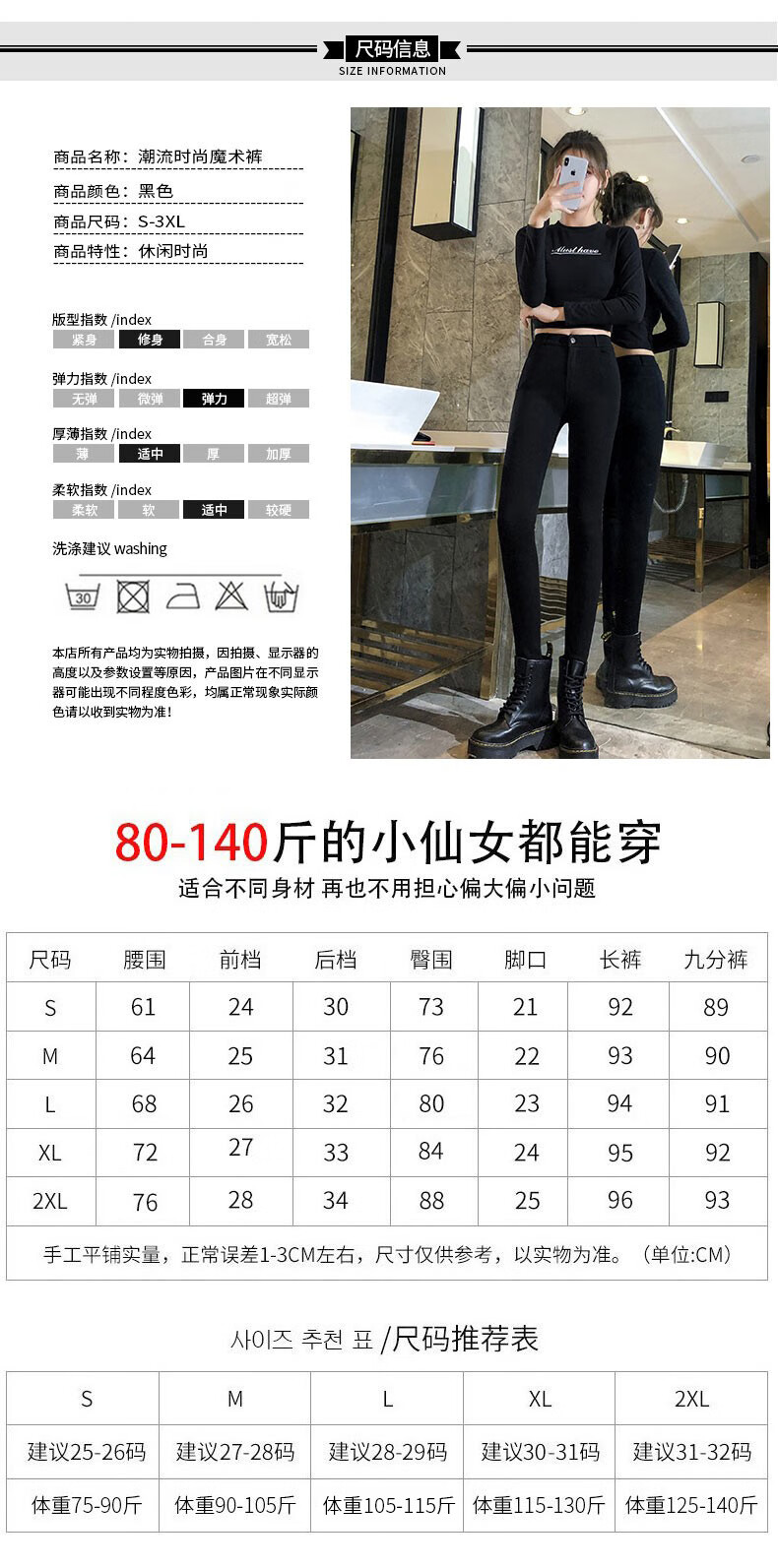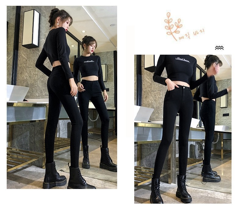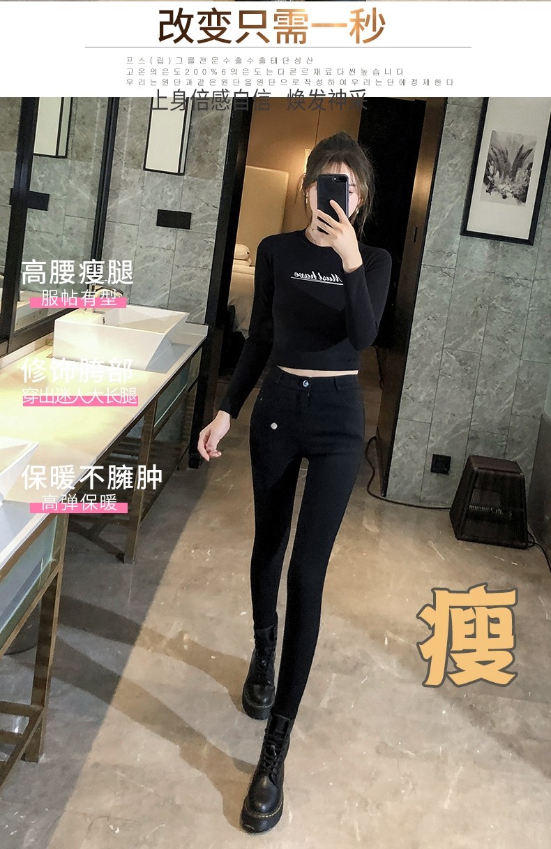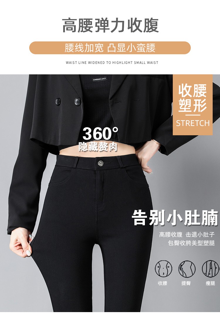 浪莎高腰打底裤女春秋外穿小脚裤黑色弹力显瘦紧身铅笔裤子女 黑色(秋冬加绒) L (105-115斤)