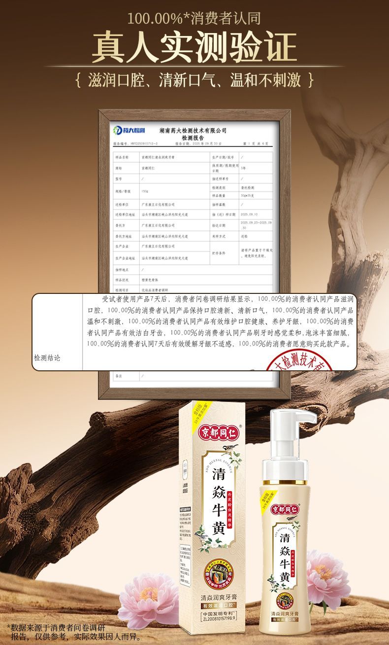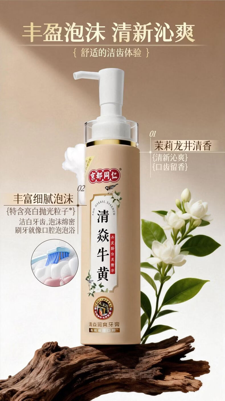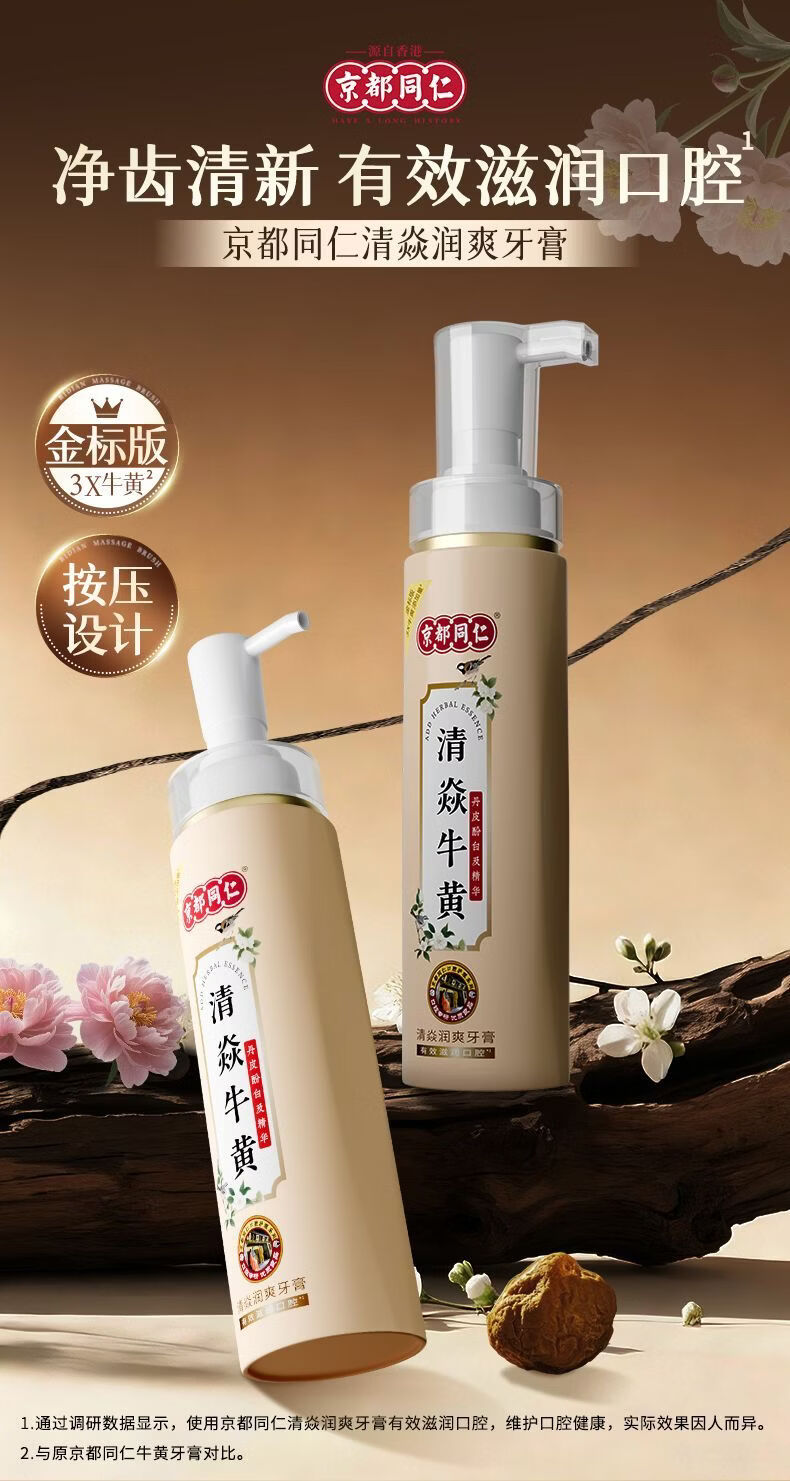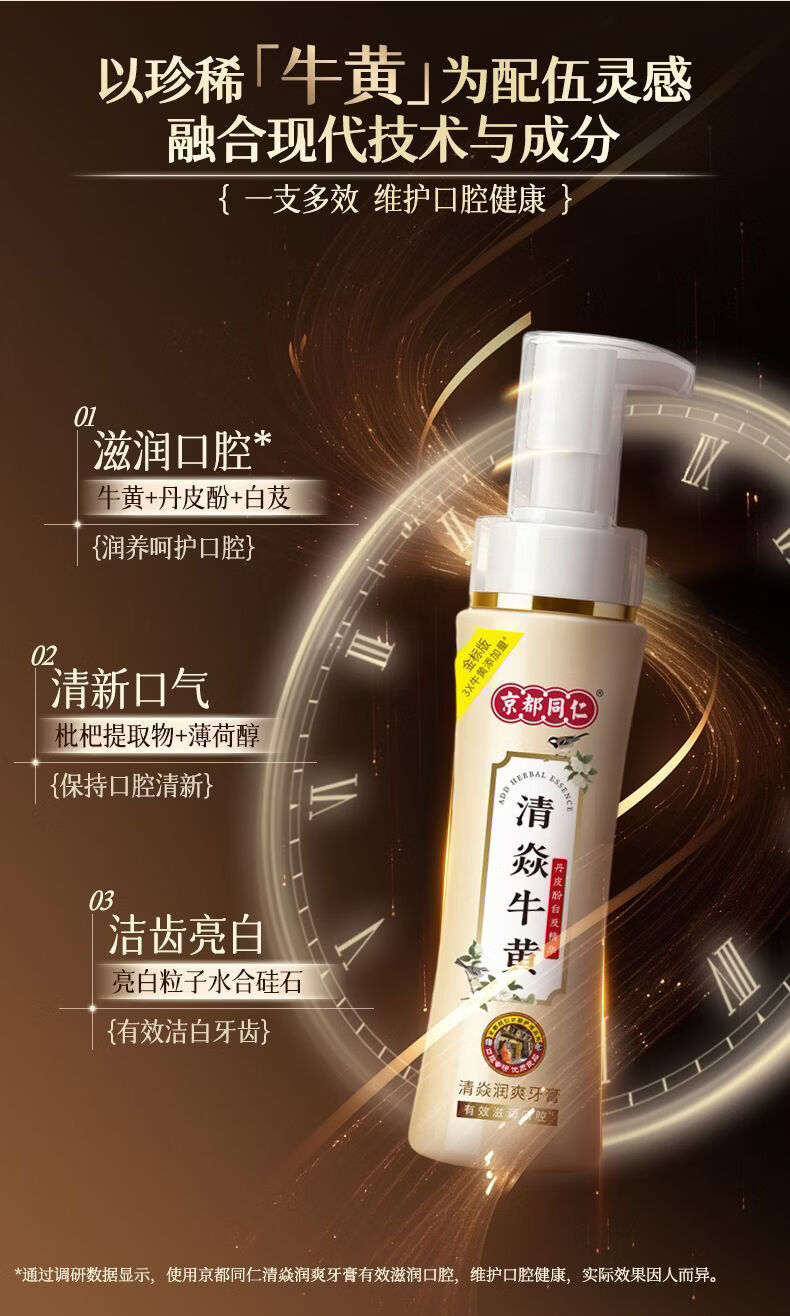 京都同仁美白牙膏3X牛黄口腔膏去烟渍去黄去口臭护龈固齿牙龈修复脱敏膏 清焱 【牙齿敏感/牙龈不适者适用】护龈金标版120g