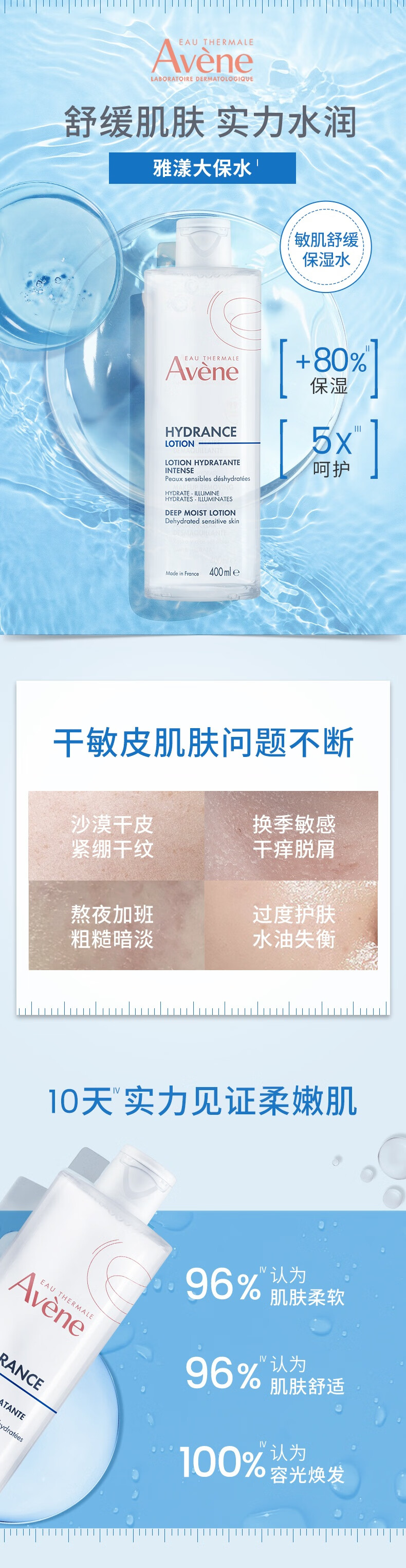 雅漾AVENE恒润柔肤保湿水 400ml