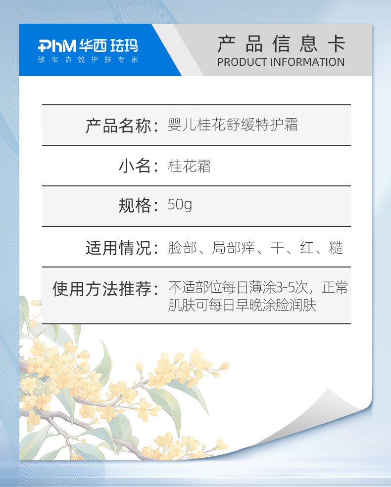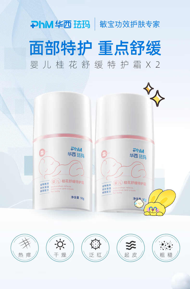 华西珐玛婴儿面部特护桂花霜新生儿舒缓面霜保湿滋润补水润肤 婴儿桂花霜50g*2