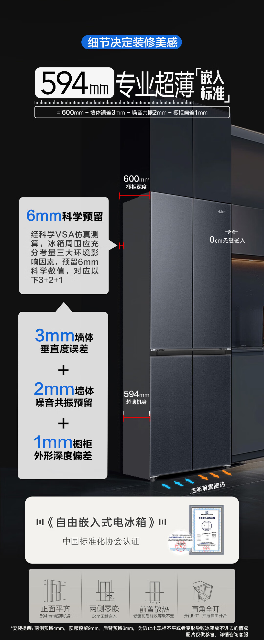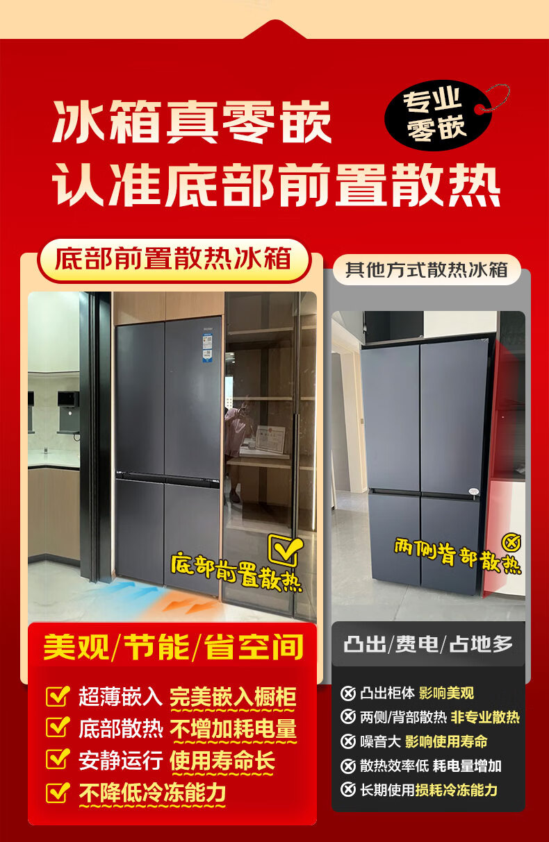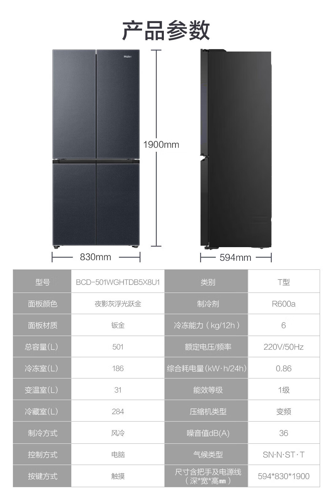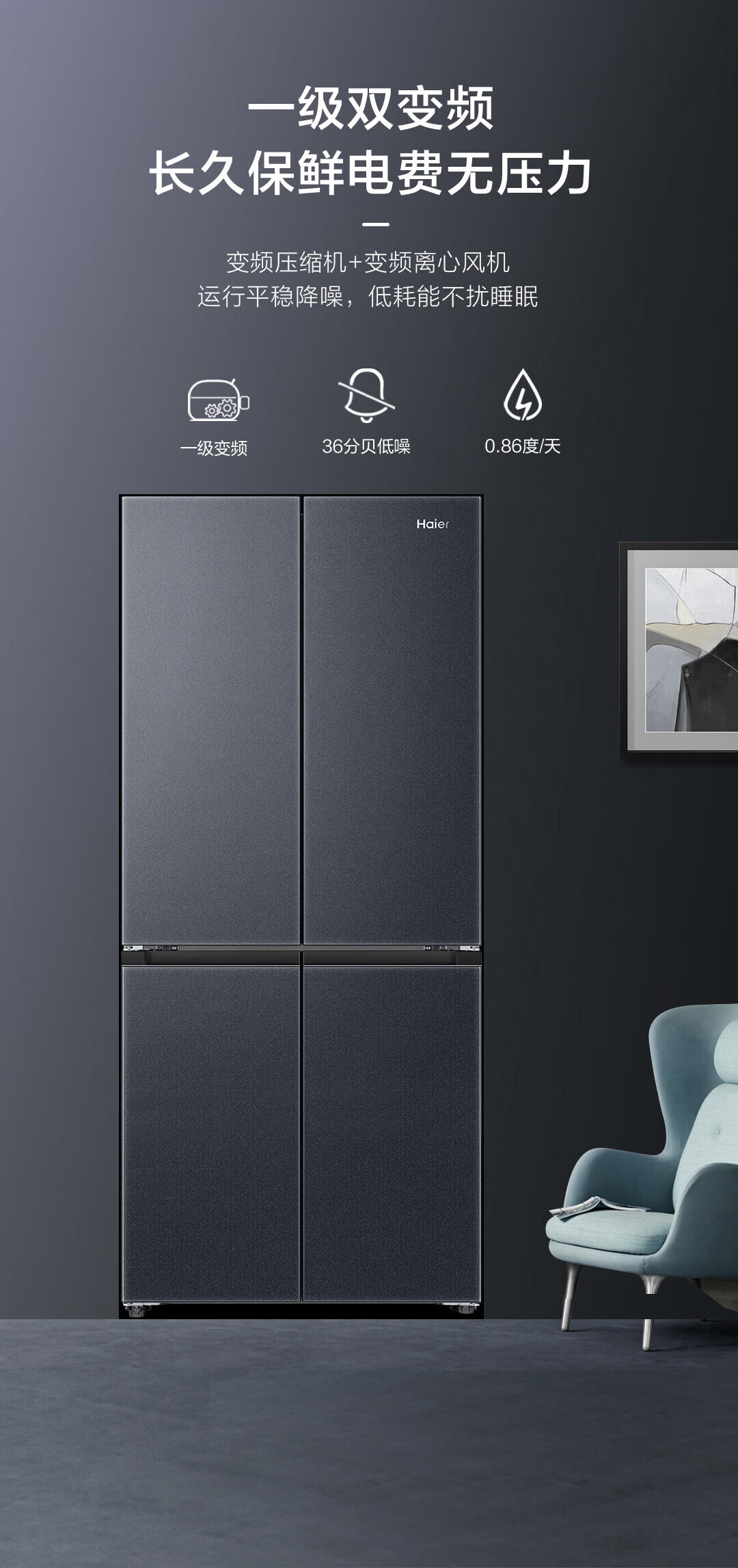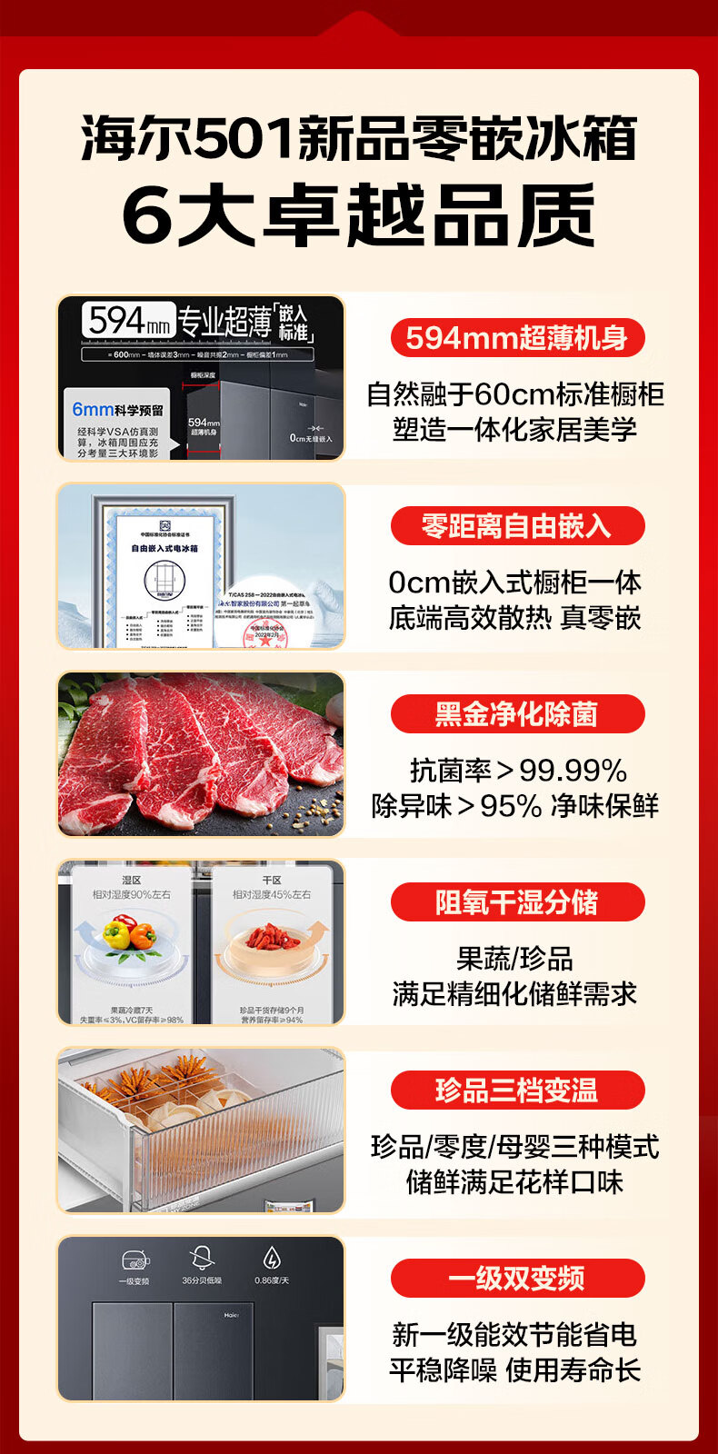 海尔(Haier)冰箱594mm超薄零嵌入式501升冰箱十字门双开门四门一级能效双变频家用干湿分储大容量电冰箱 501大容量+黑金净化+阻氧干湿分储+WiFi智控