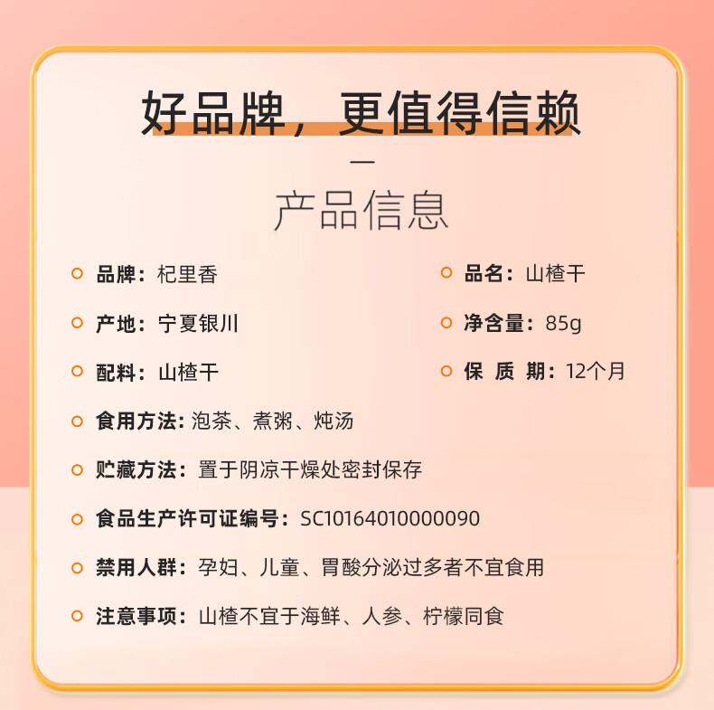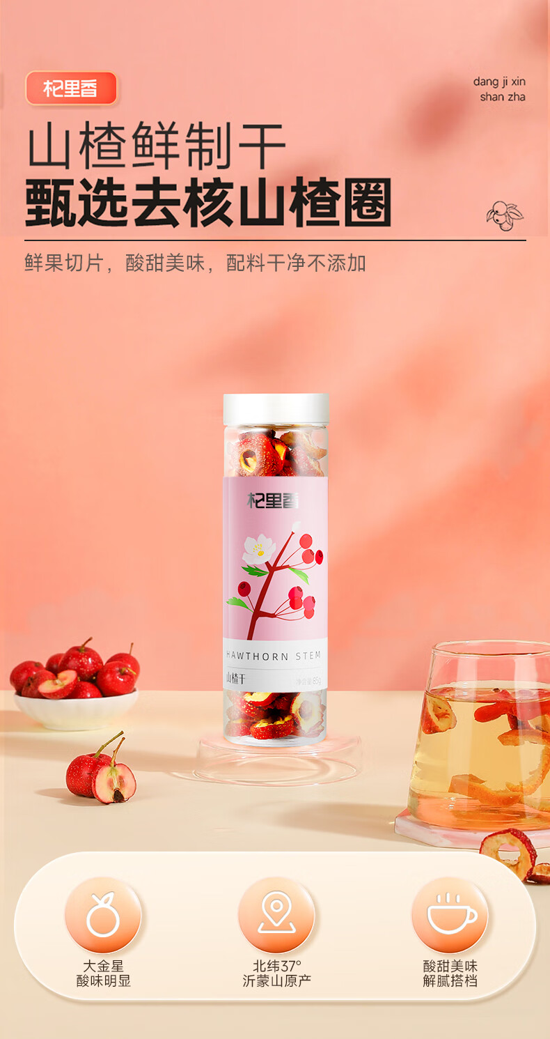 杞里香山楂干精选无核山楂片罐装85g干制山楂新鲜无籽无核空心泡茶片