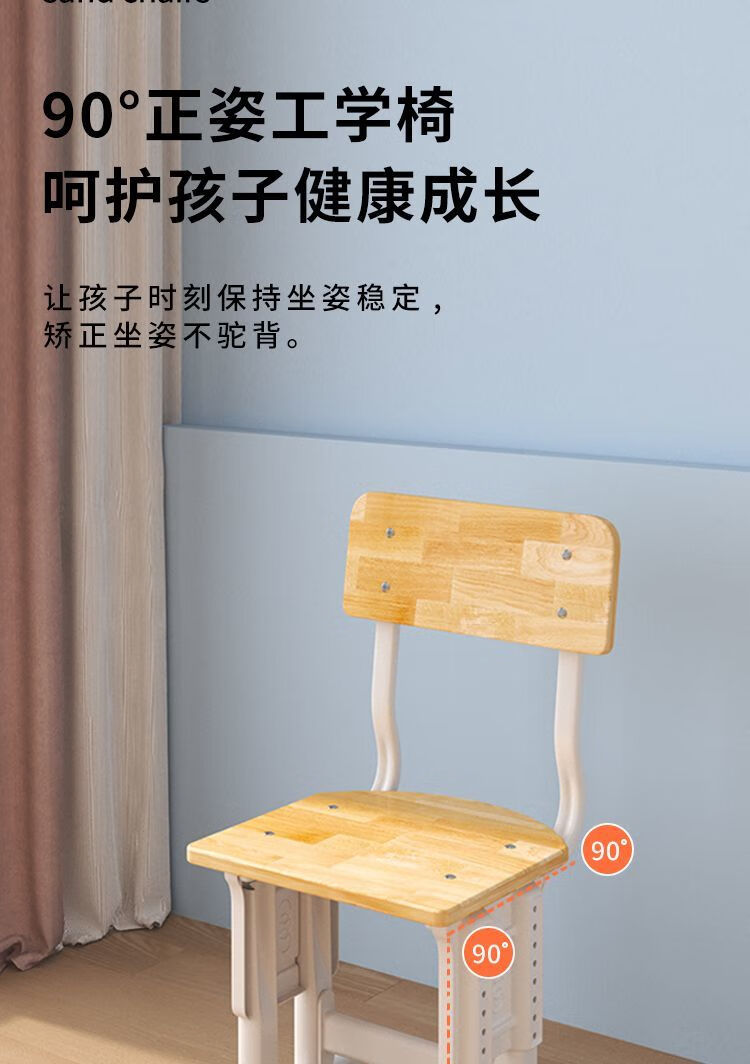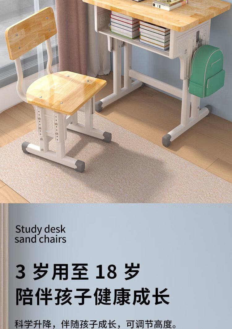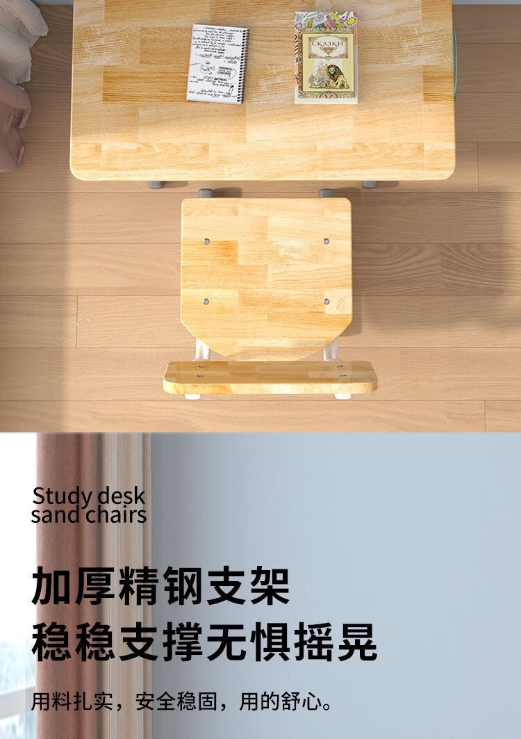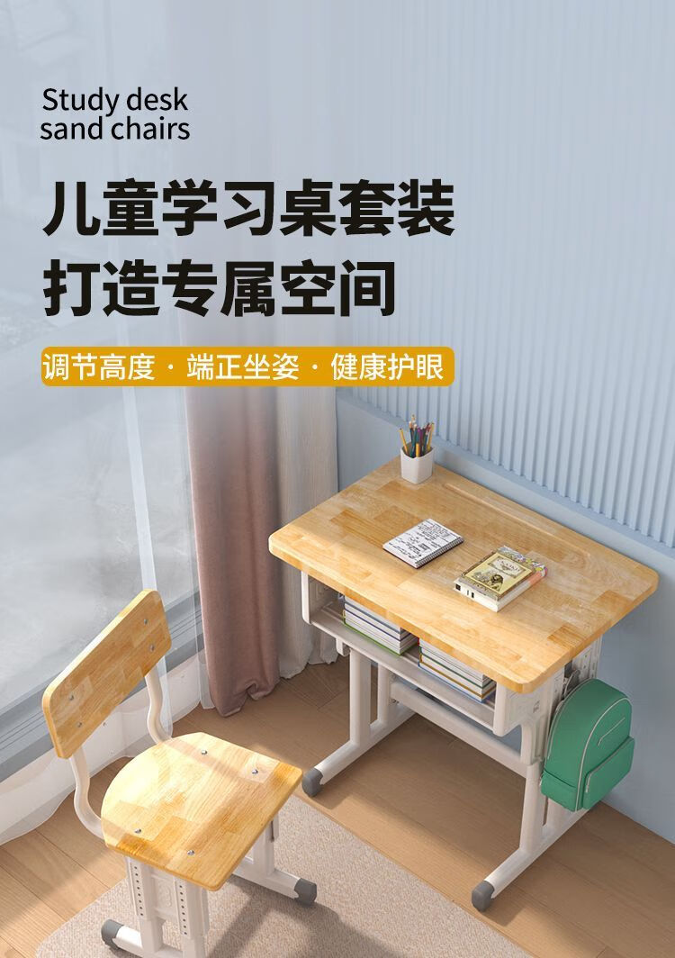 弘星隆实木儿童学习桌书桌家用学生椅子实木一整套可升降中小学生套装 实木单桌【全橡胶木桌面】 60+40桌面