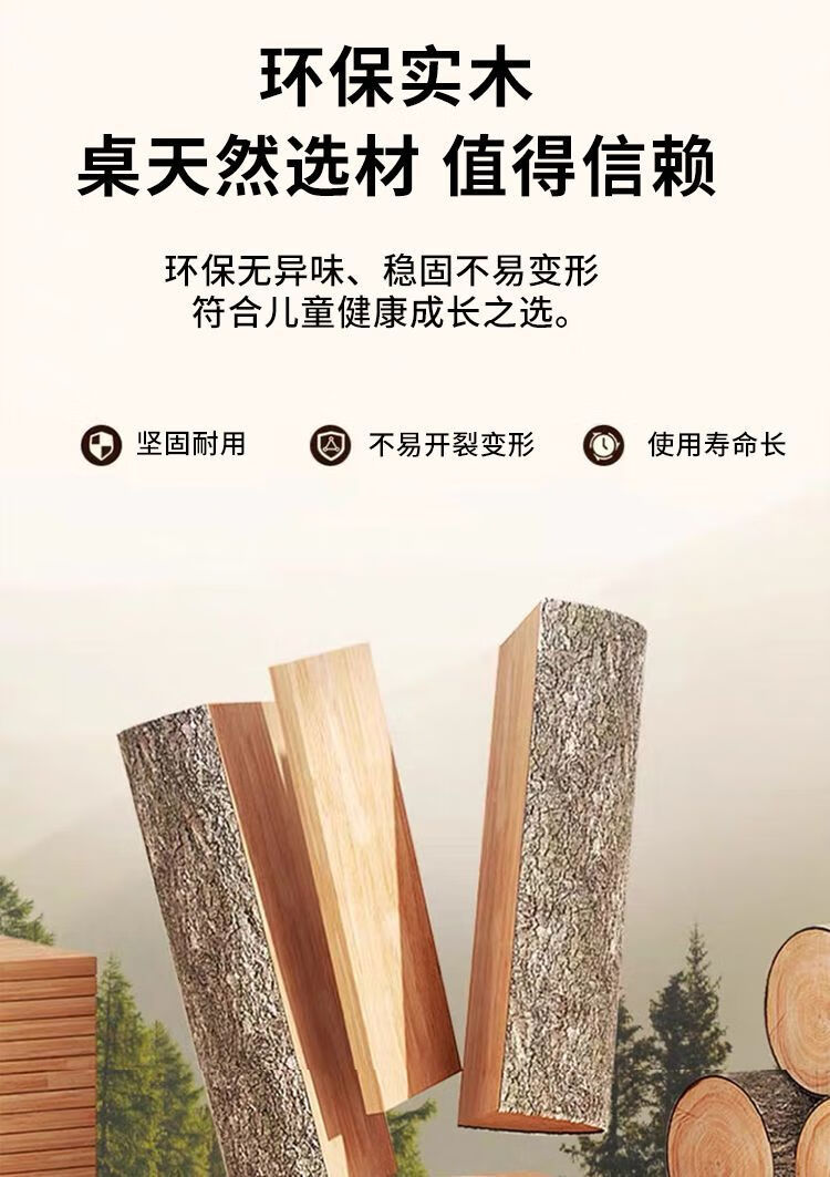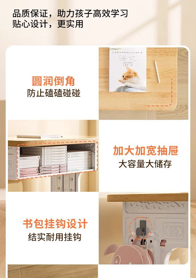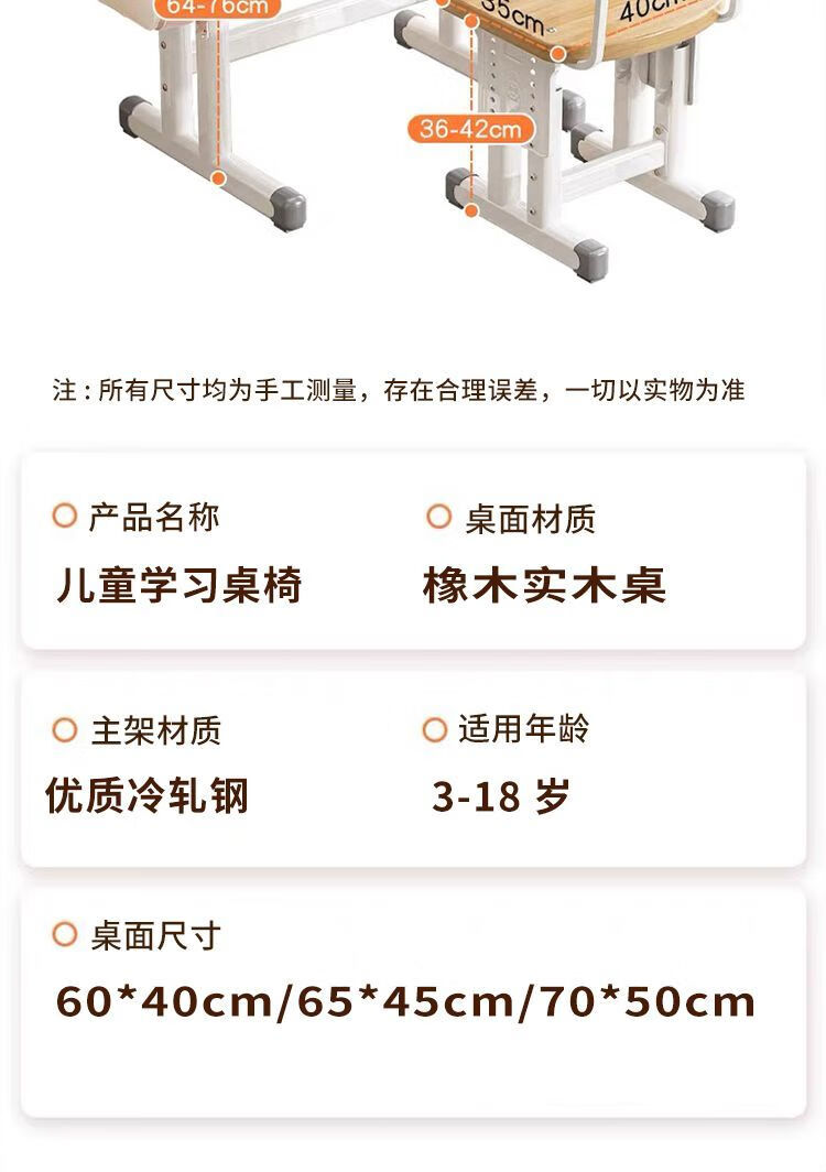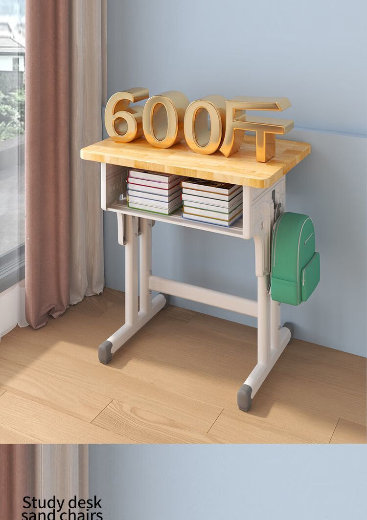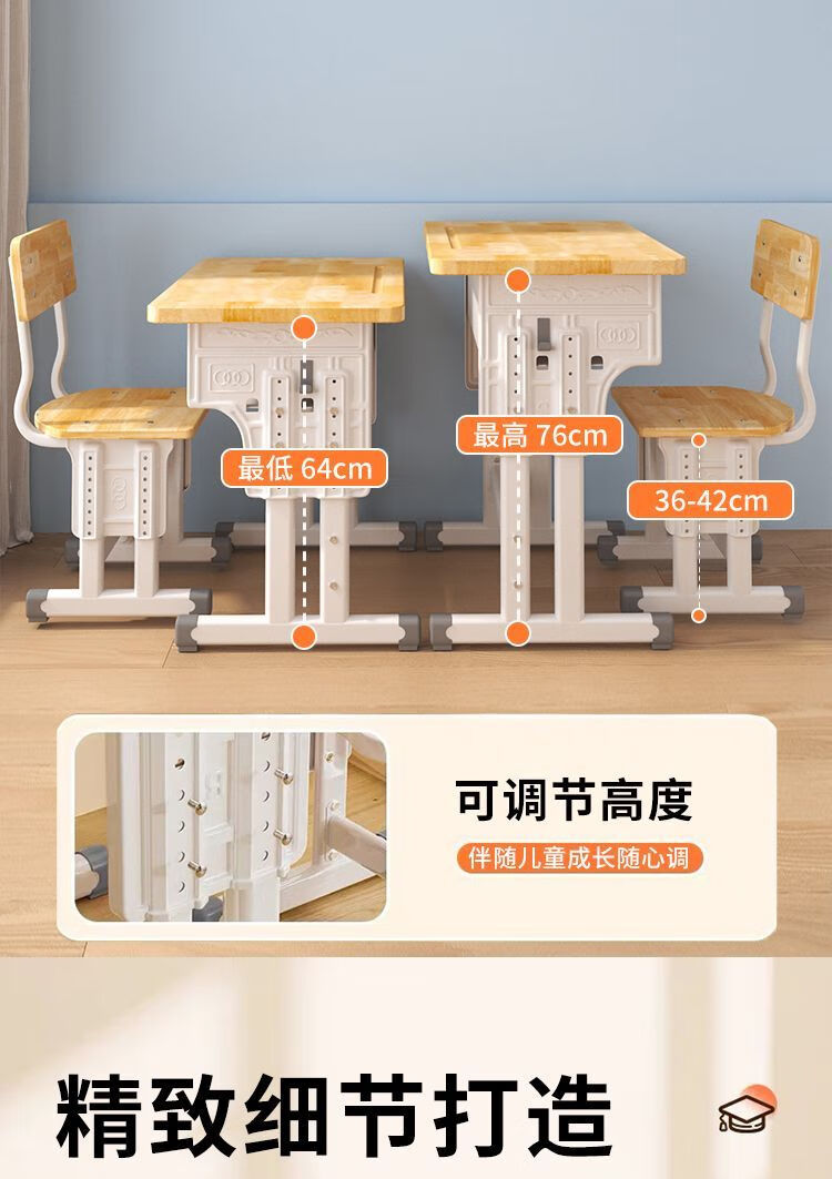 弘星隆实木儿童学习桌书桌家用学生椅子实木一整套可升降中小学生套装 实木单桌【全橡胶木桌面】 60+40桌面