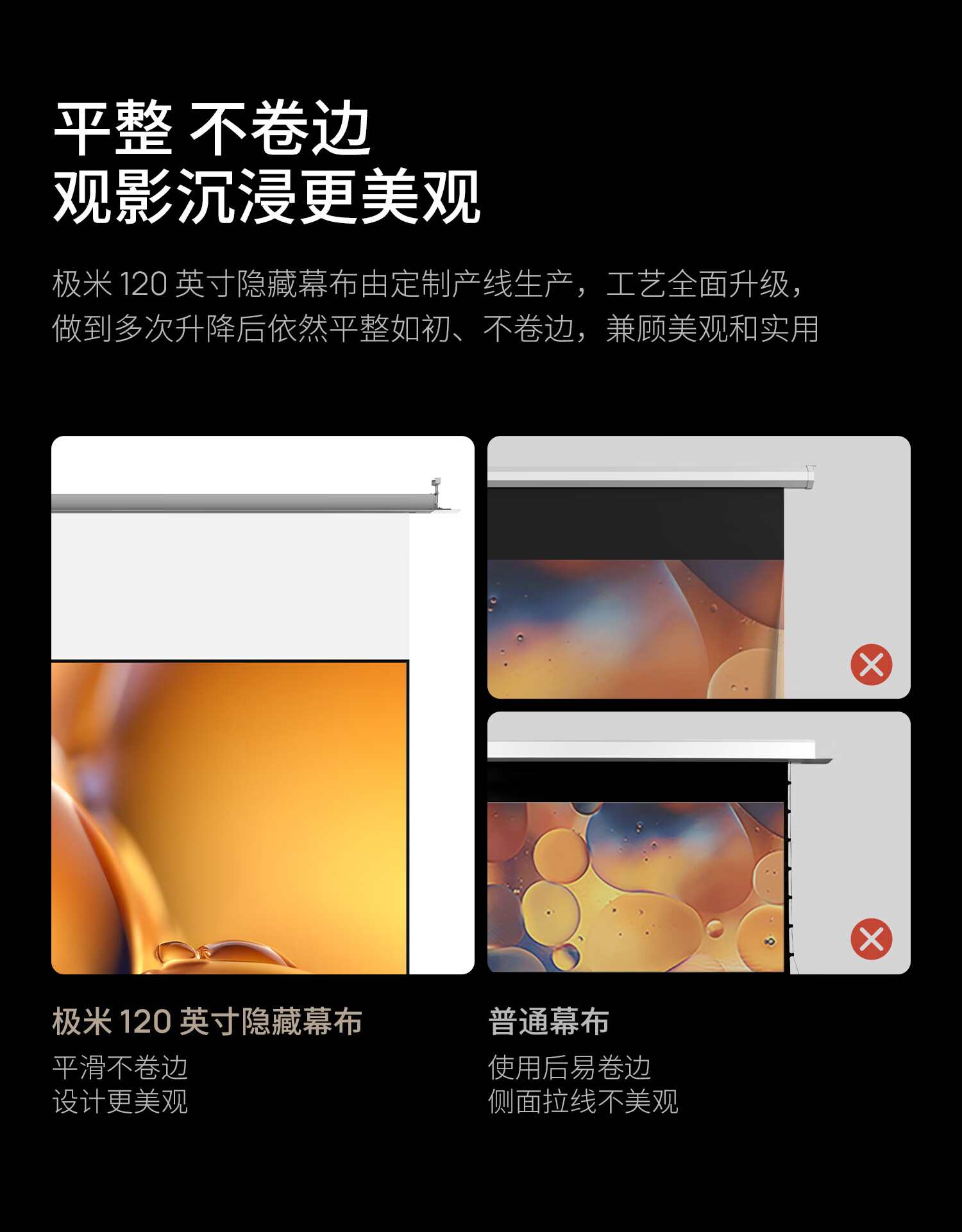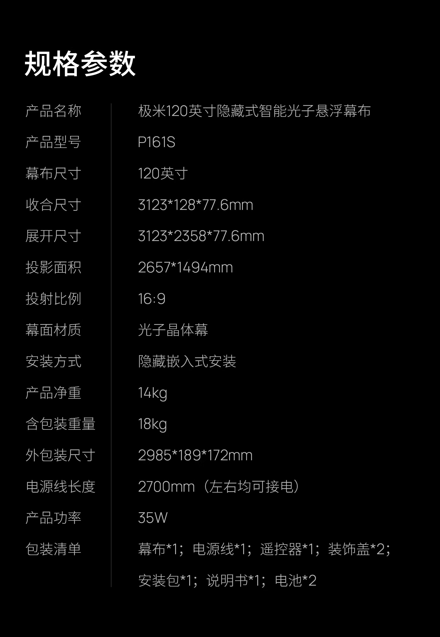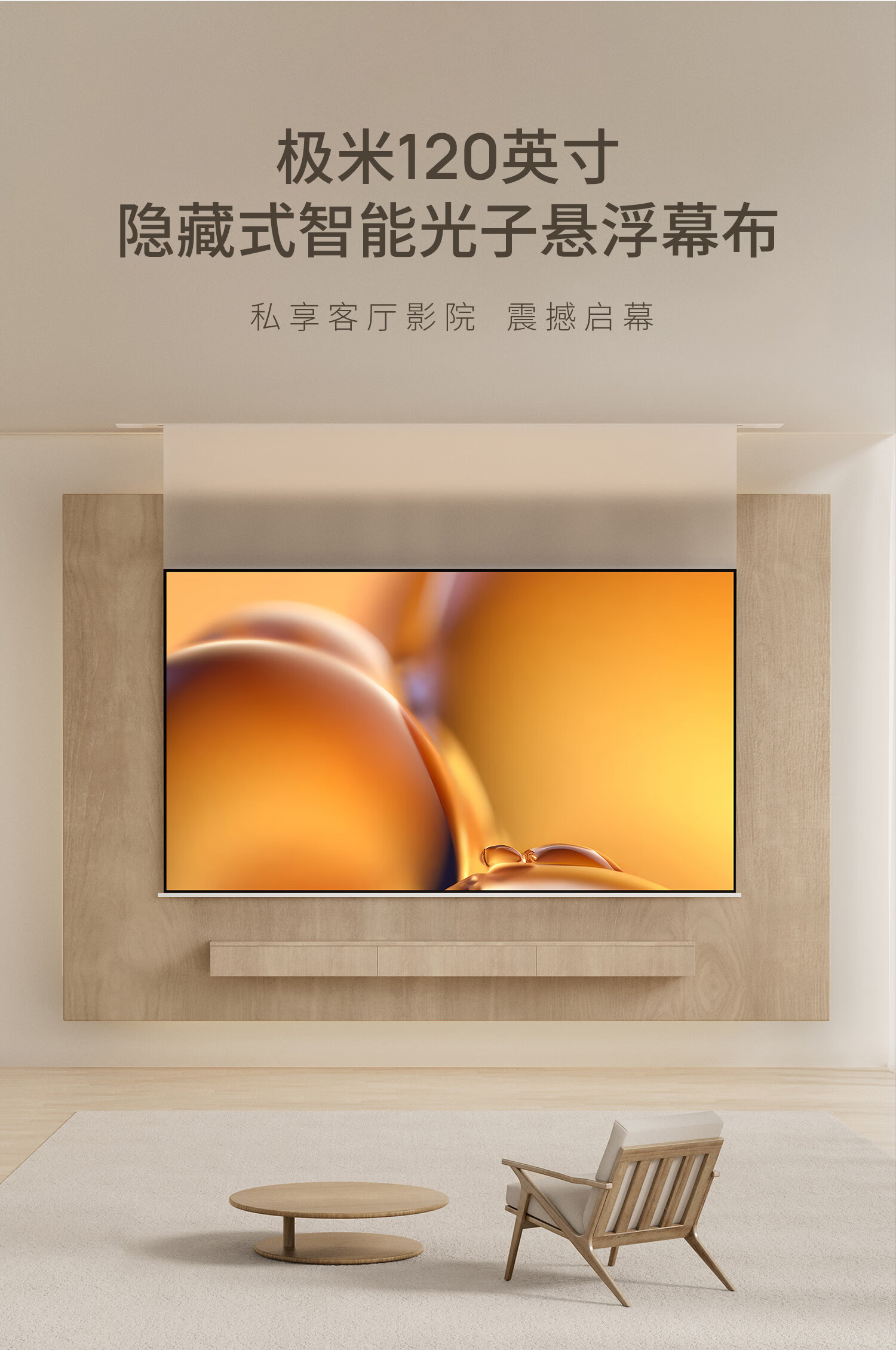 极米120英寸嵌入式安装 隐藏式智能光子悬浮幕布