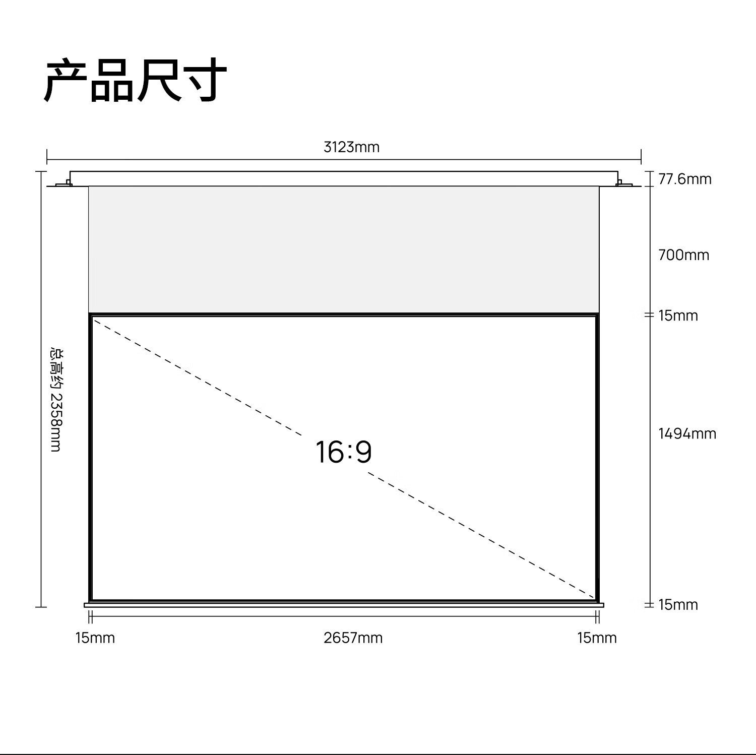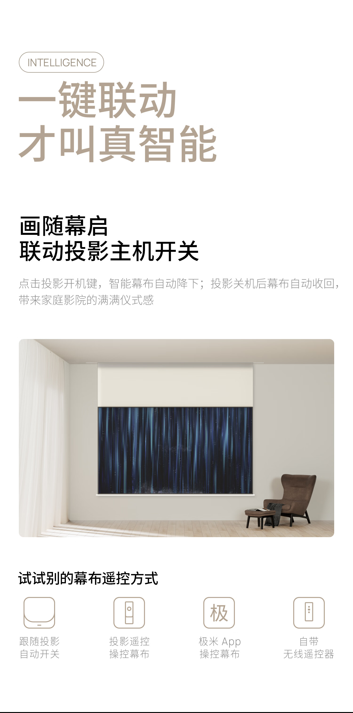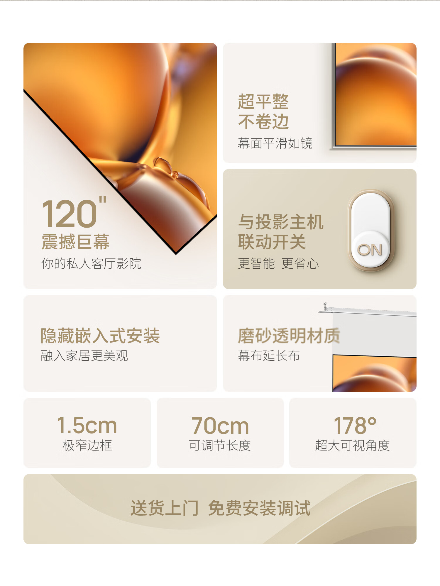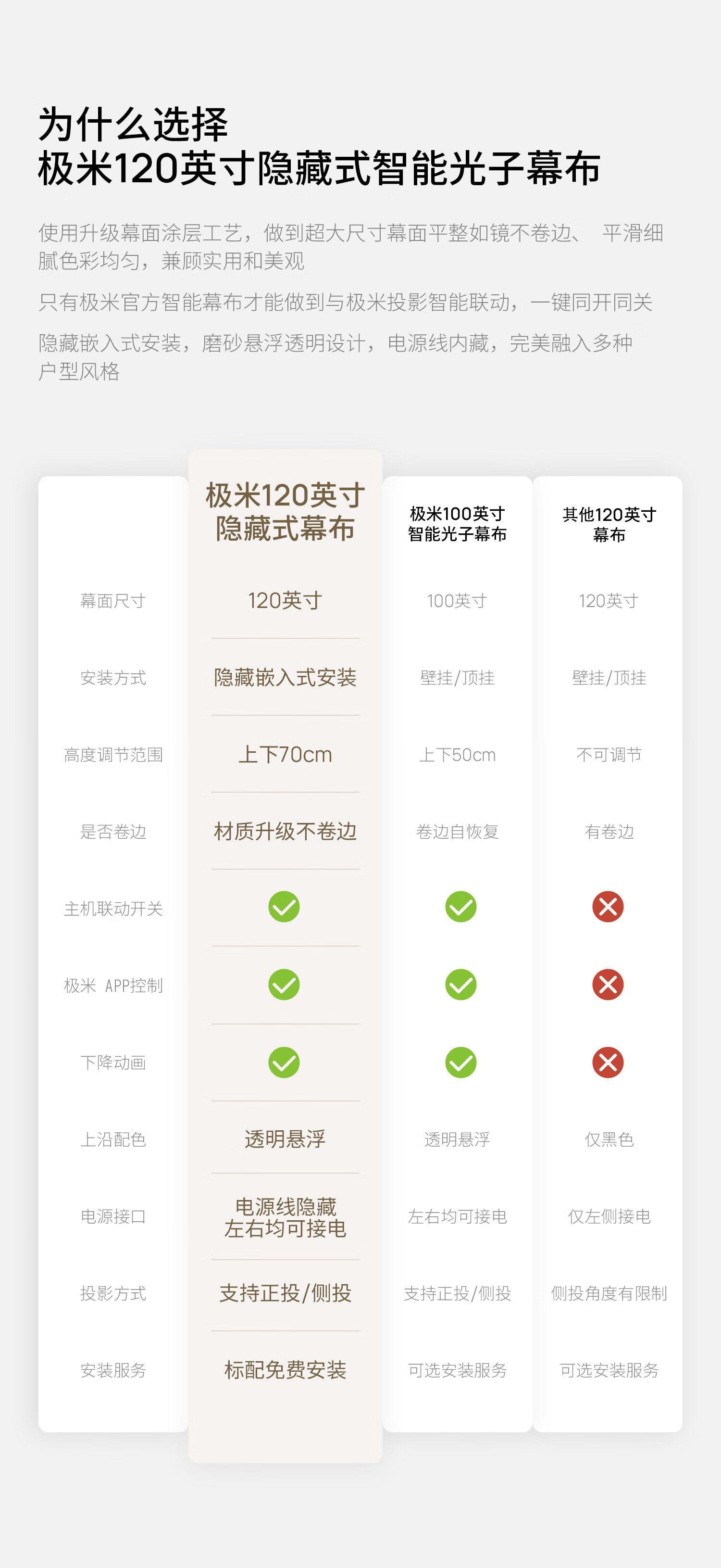 极米120英寸嵌入式安装 隐藏式智能光子悬浮幕布
