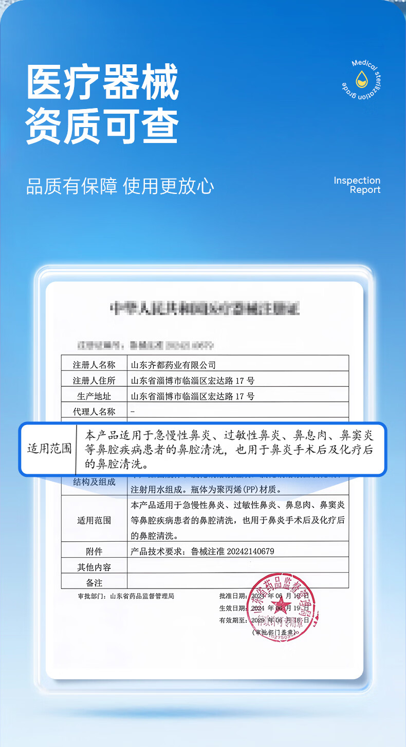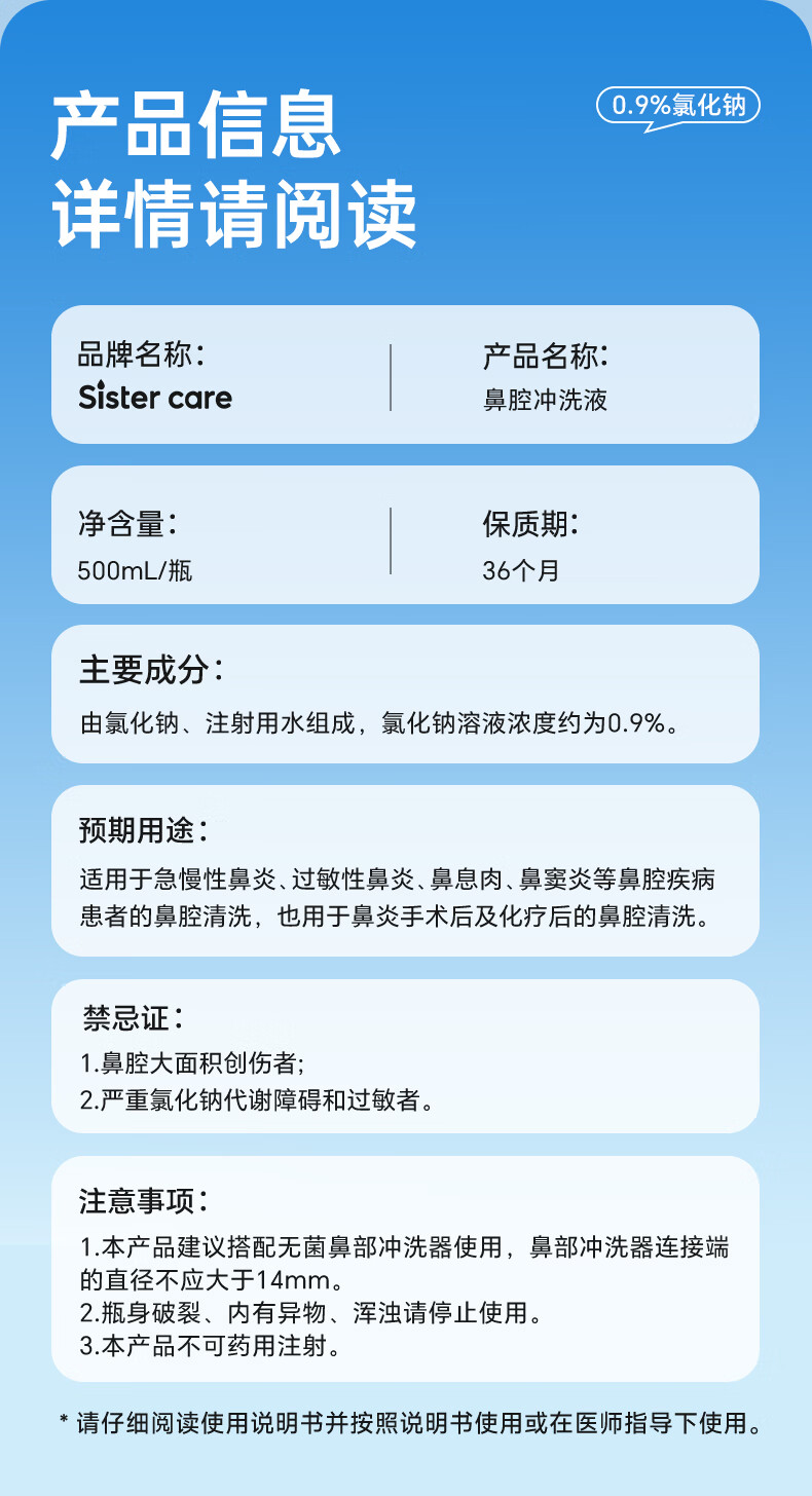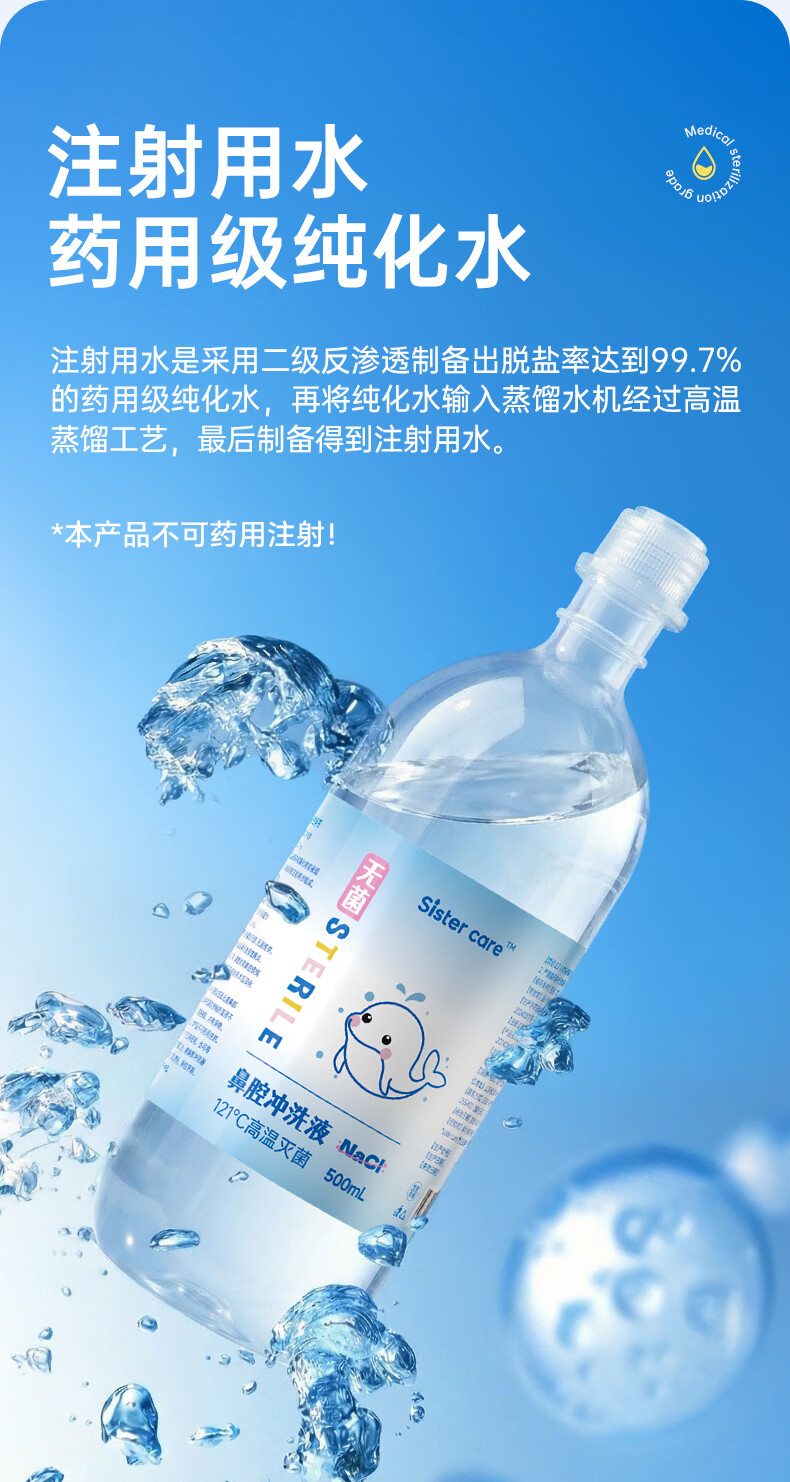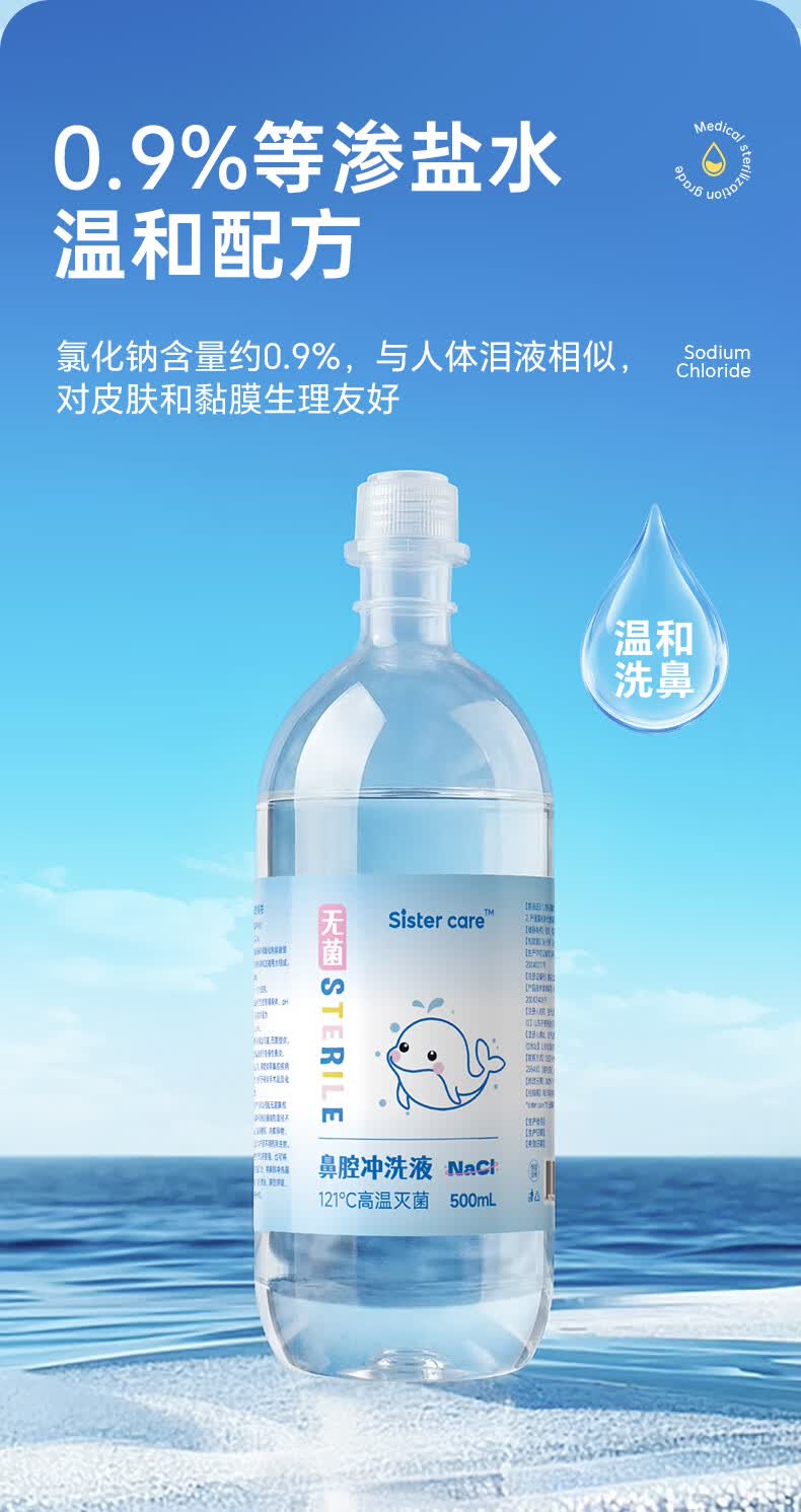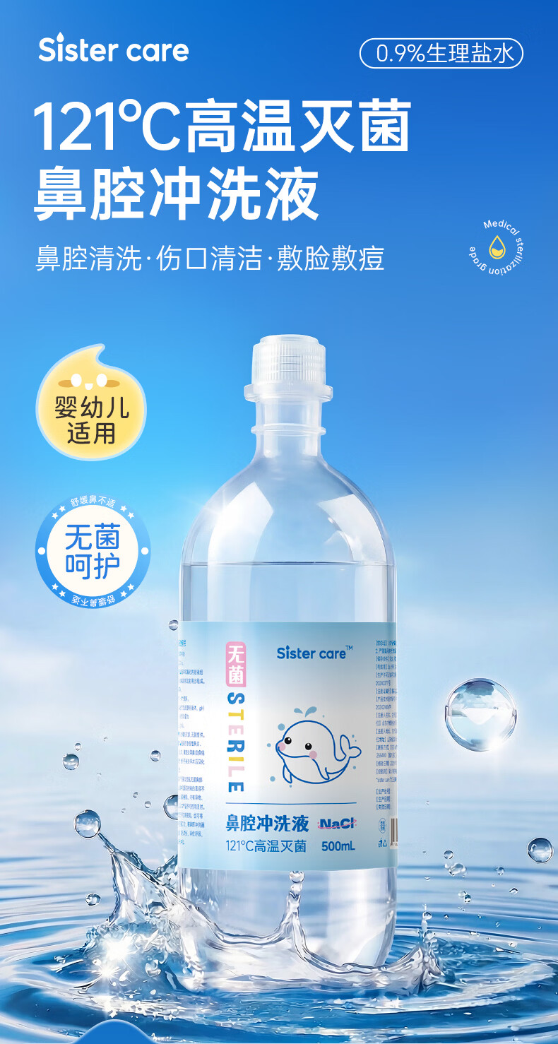 sister care无菌生理盐水婴儿鼻腔清洗医用海盐水敷脸雾化氯化钠清洗液500mL