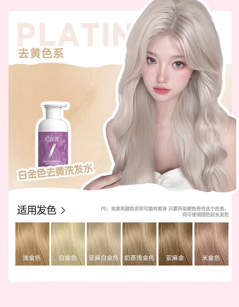 忆丝芸固色洗发水灰色粉色蓝色红紫染后去黄护色锁色洗发露补色专用 去黄洗发水330ml(洗出白金色)