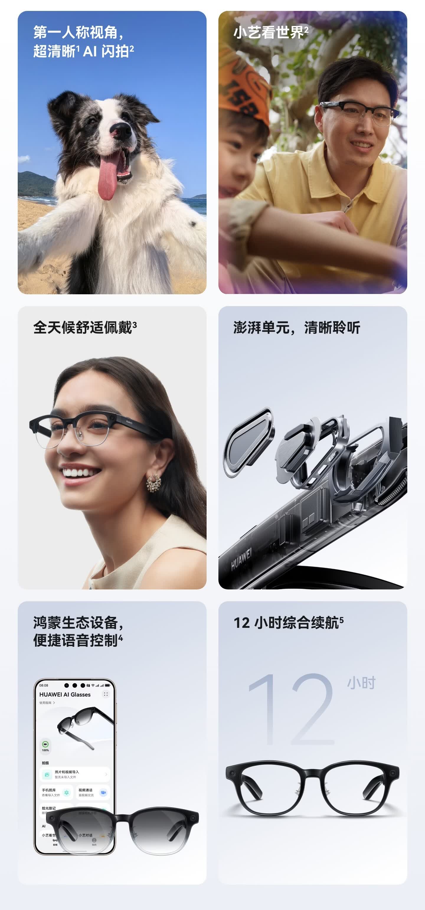 华为AI眼镜 摩登黑 经典全框款 第一人称视角 AI闪拍/小艺AI助手/翻译/支付/识物 仅支持鸿蒙6.0及以上
