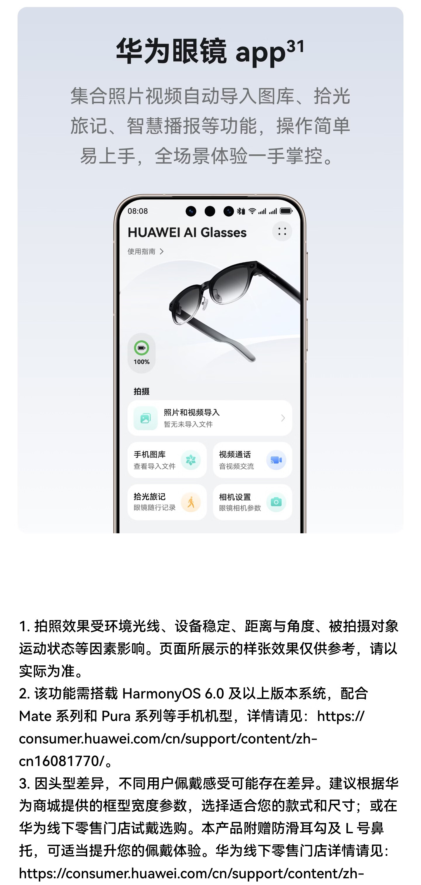 华为AI眼镜 钛银灰 钛丝半框款 第一人称视角 AI闪拍/小艺AI助手/翻译/支付/识物 仅支持鸿蒙6.0及以上
