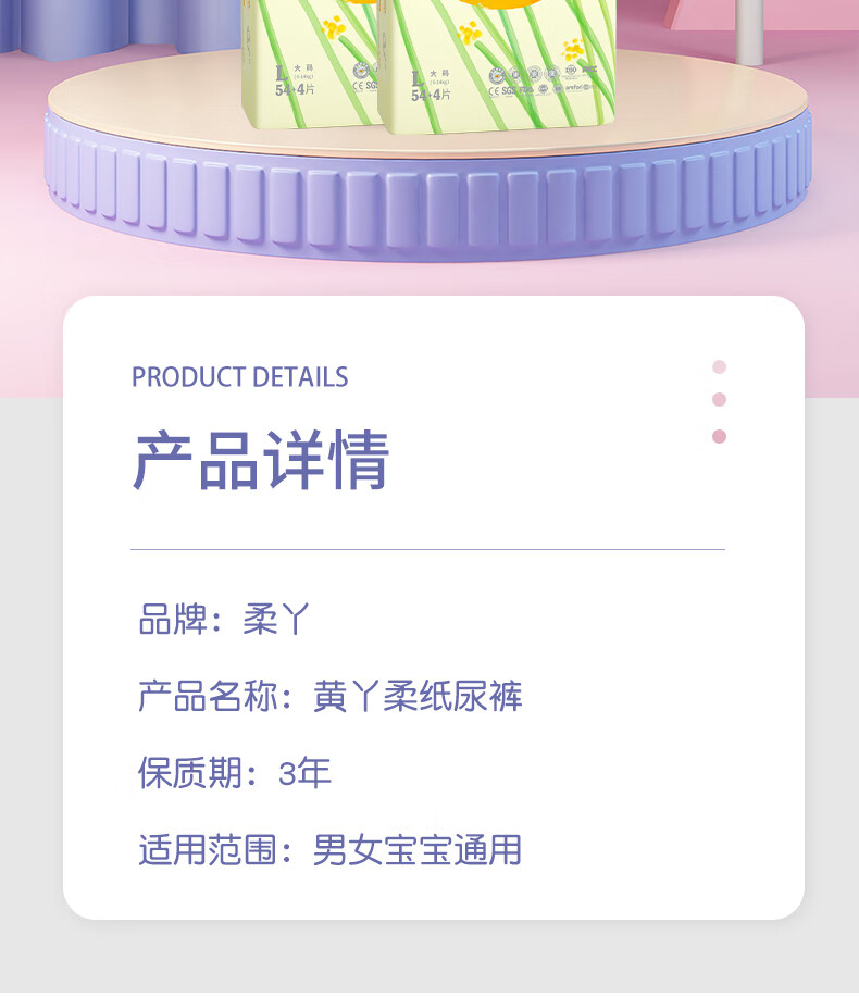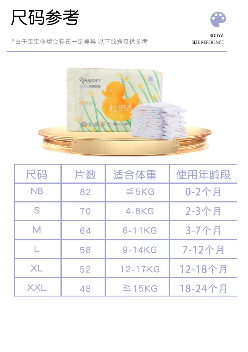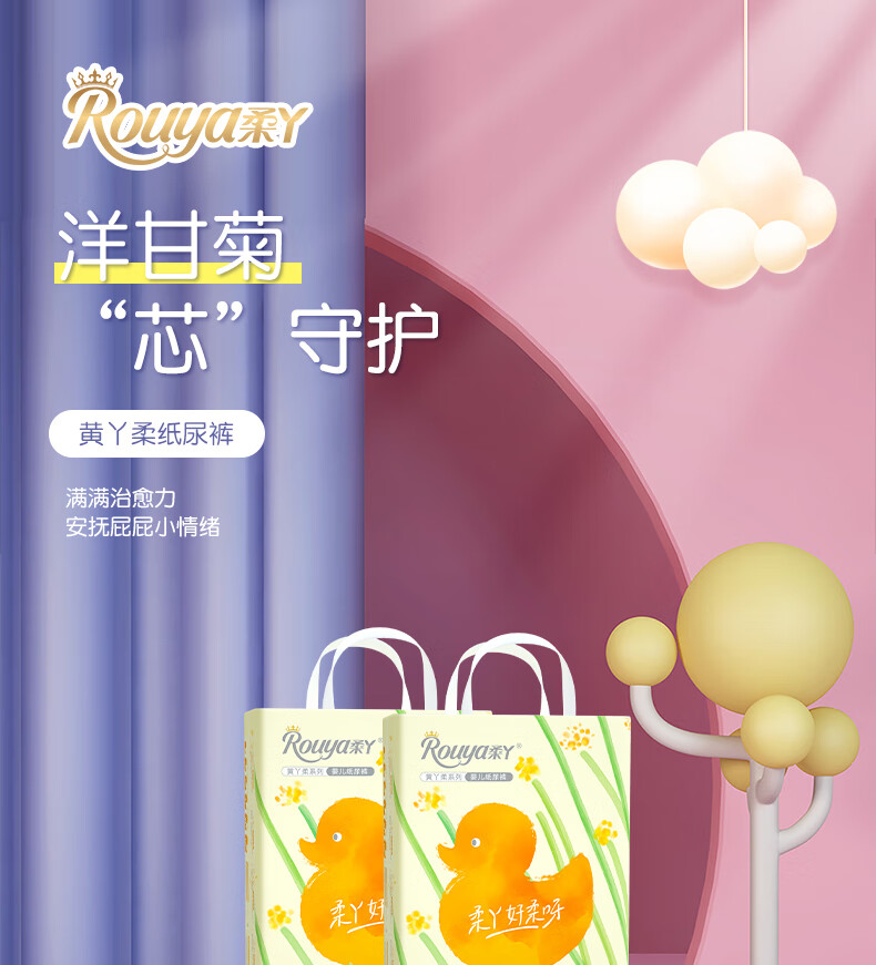 柔丫黄丫柔纸尿裤超薄透气拉拉裤xl男女宝宝专用尿不湿布新生婴儿夏季 2XL 1包 52片 【拉拉裤24-30斤】