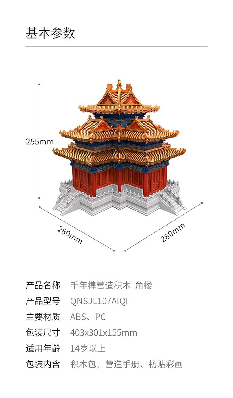 千年榫榫卯积木故宫角楼男孩玩具拼插积木中国古建筑国潮摆件生日礼物 故宫角楼