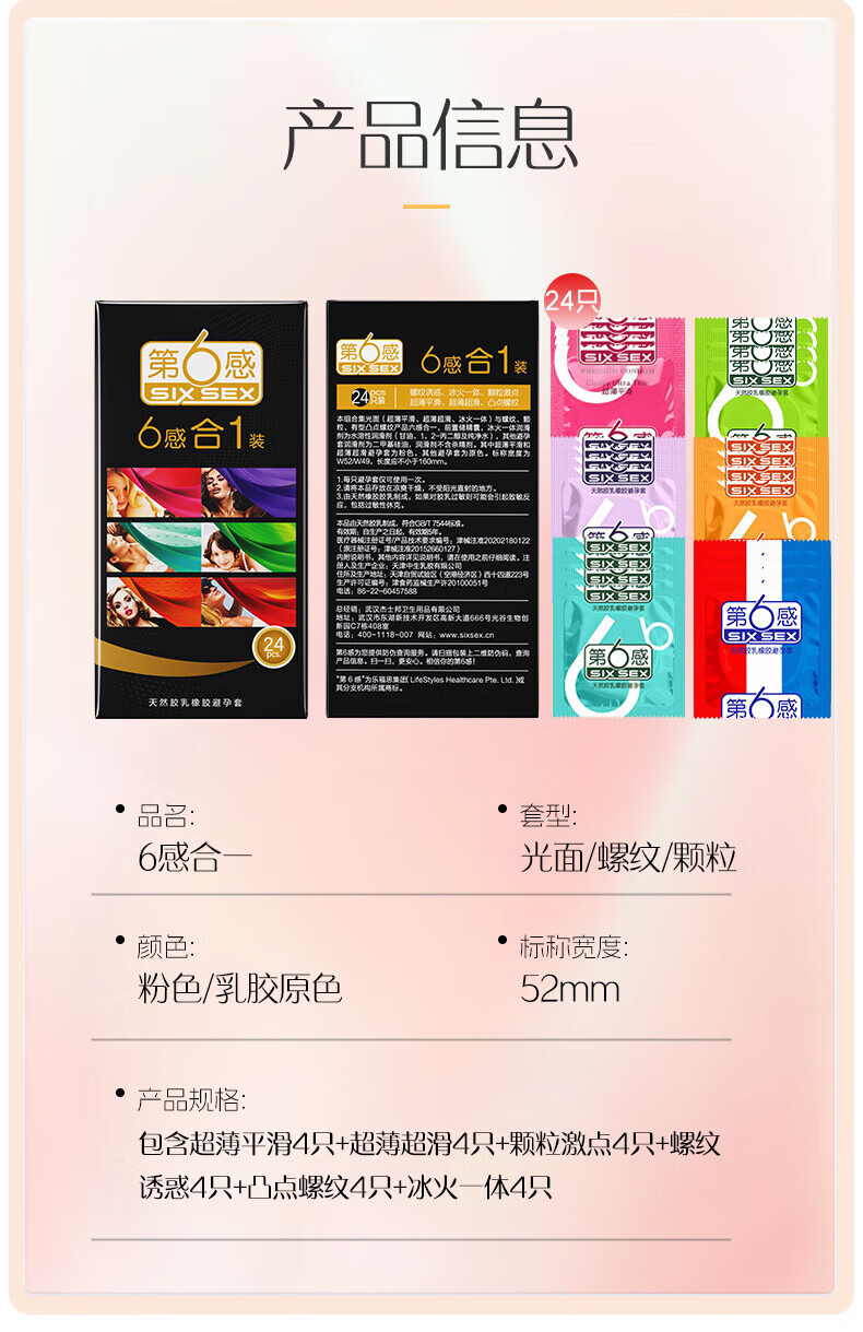 第六感避孕套颗粒情趣安全套组合大颗粒 成人计生情趣用品 【冰火六合一组合】六合一24只+冰火一体12只