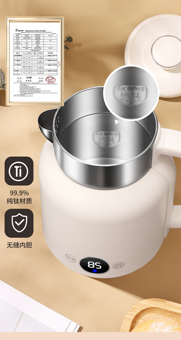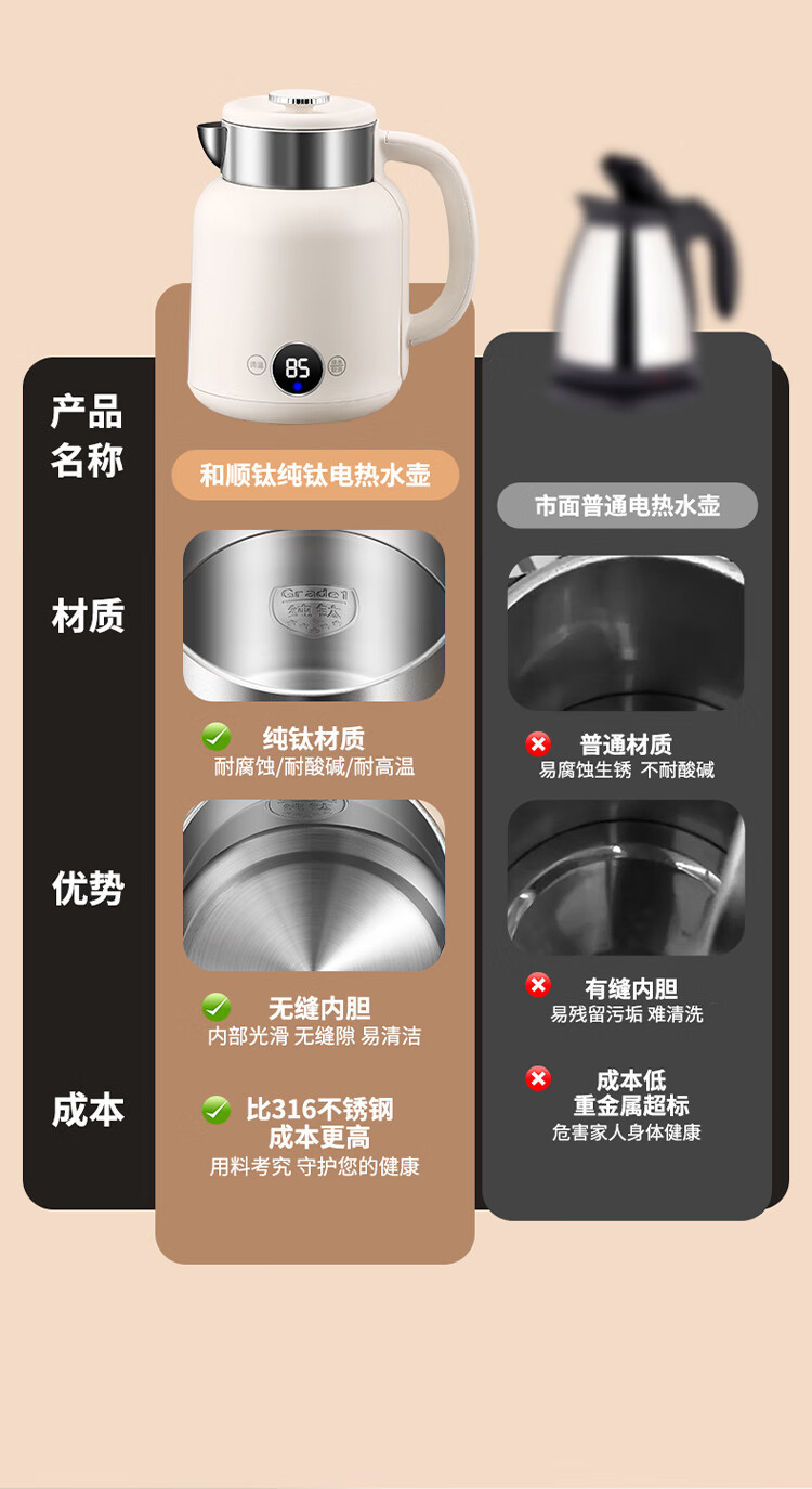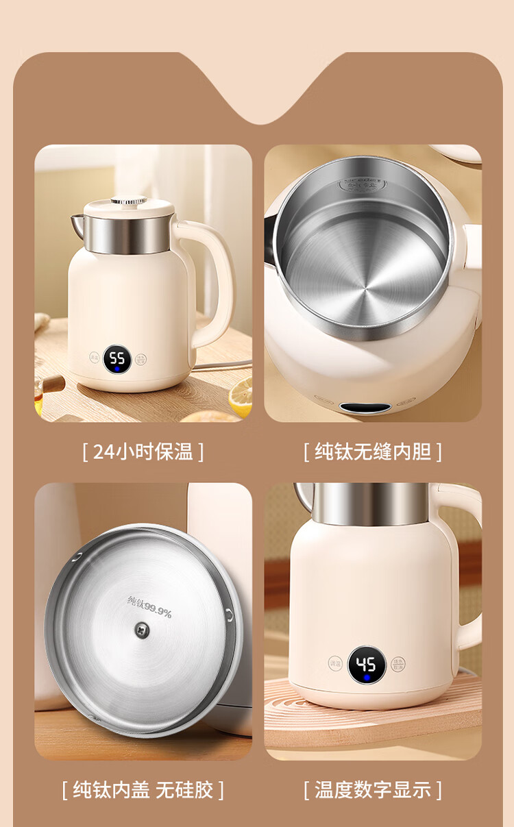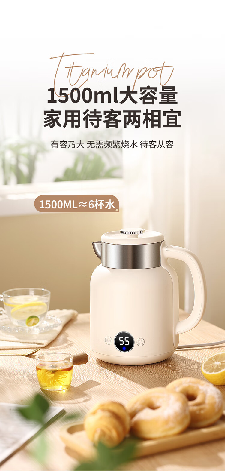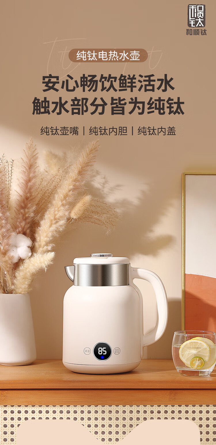 和顺钛和页钛纯钛烧水壶电热水壶自动断电防干烧双层防烫单段控温保温1.7L大容量无缝内胆快速沸腾开水壶白色 1.5L -99.9%纯钛电水壶【五段调温】 经典白色