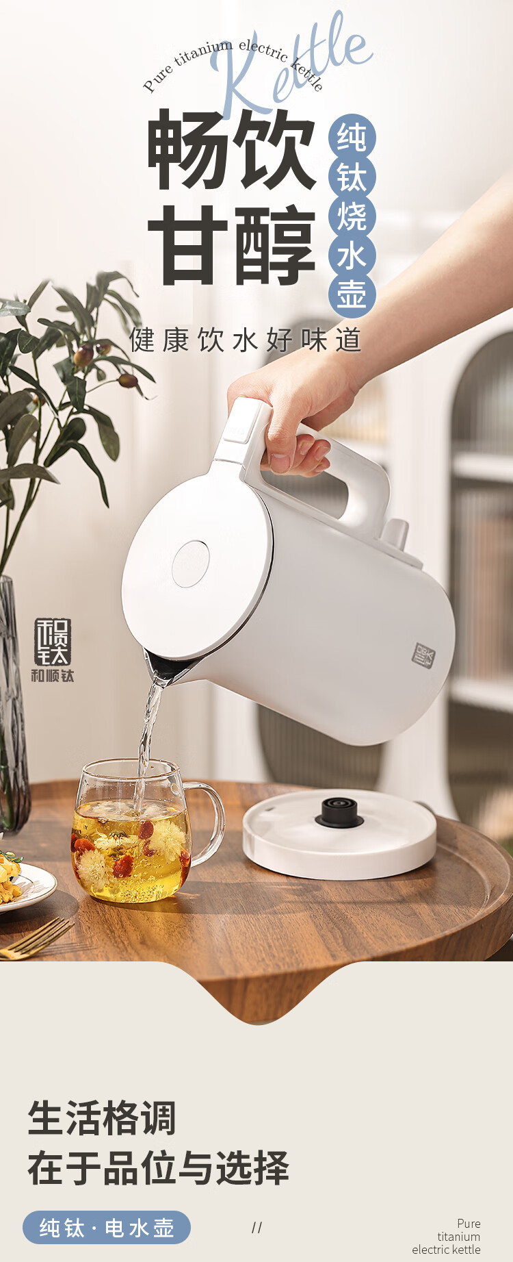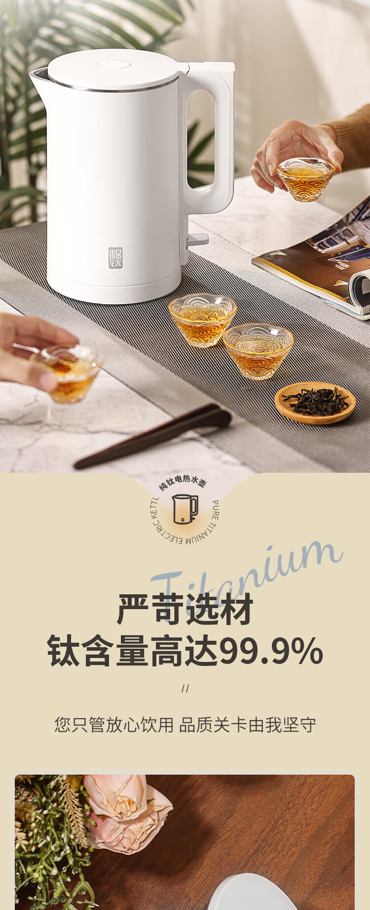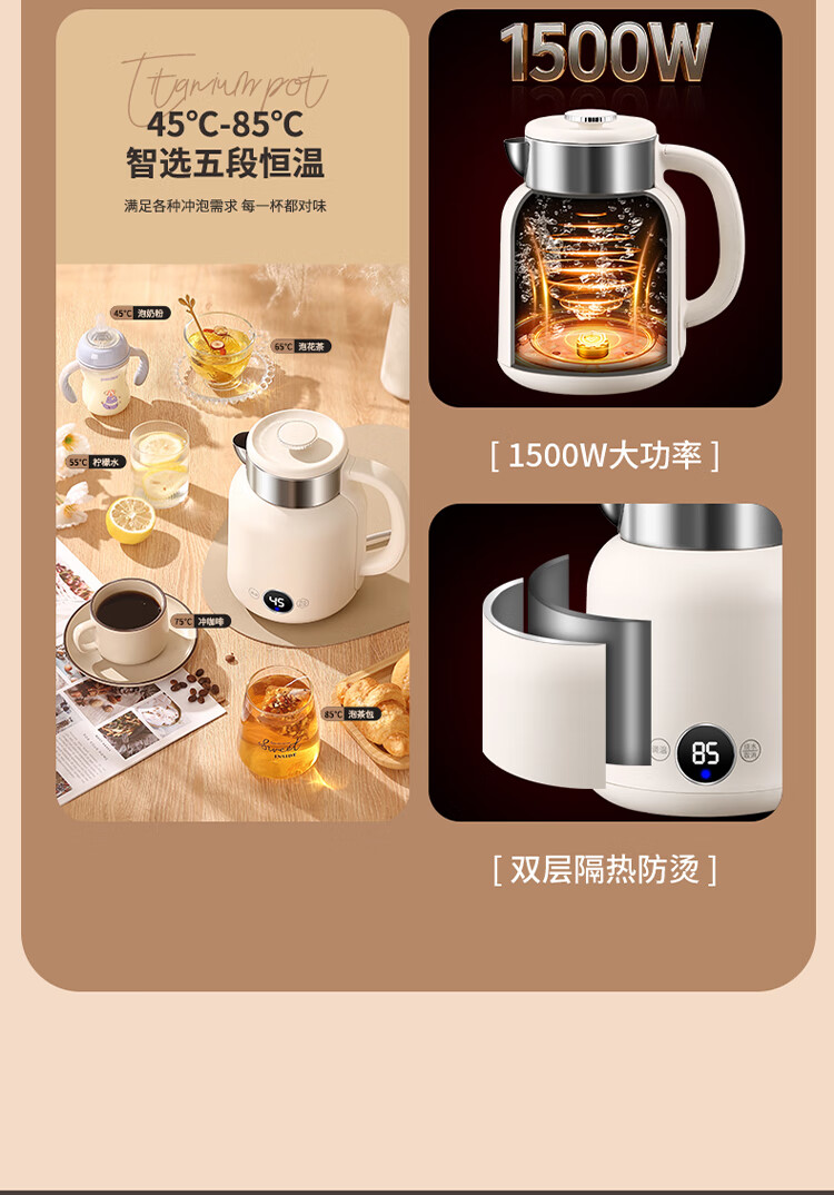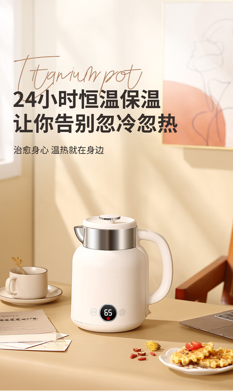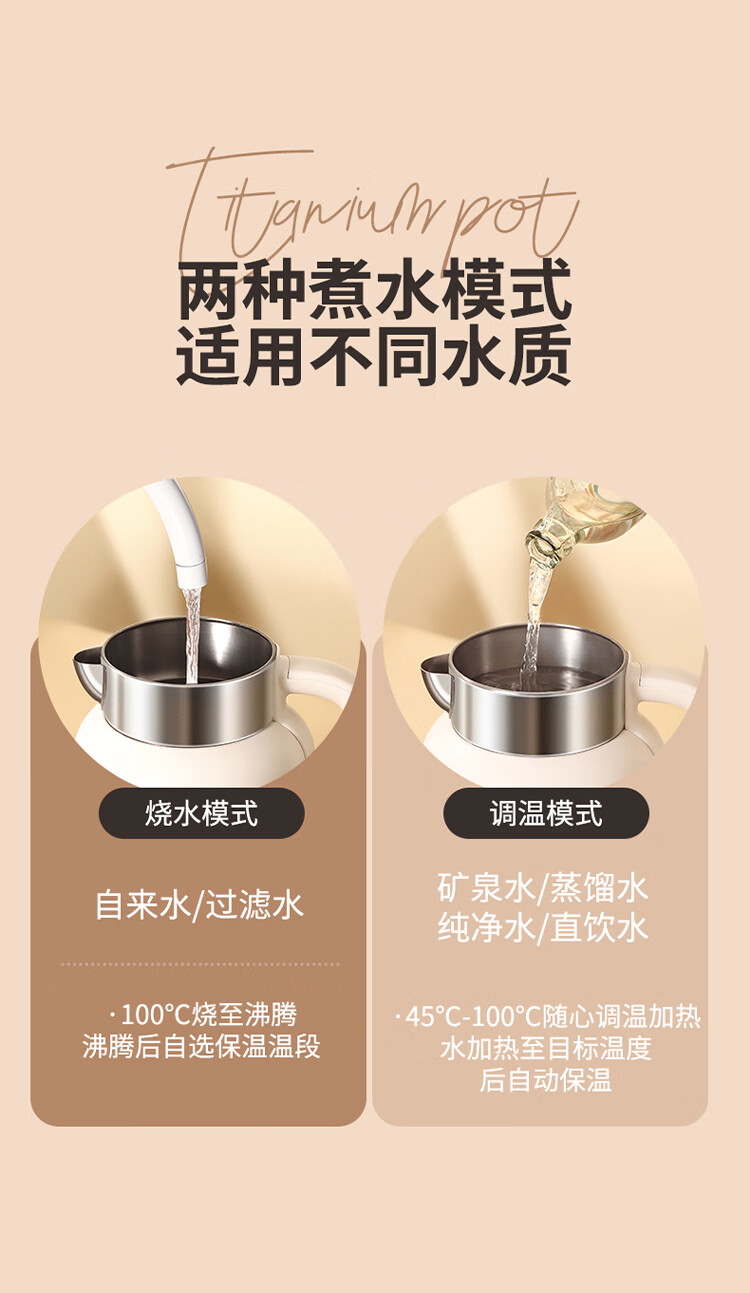 和顺钛和页钛纯钛烧水壶电热水壶自动断电防干烧双层防烫单段控温保温1.7L大容量无缝内胆快速沸腾开水壶白色 1.5L -99.9%纯钛电水壶【五段调温】 经典白色