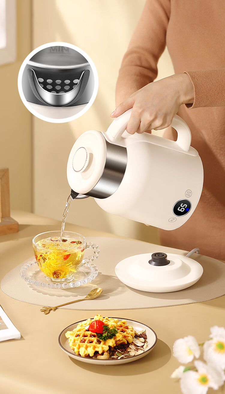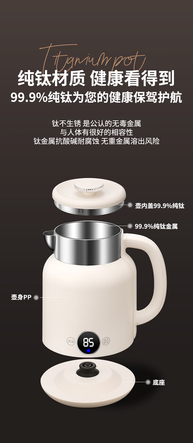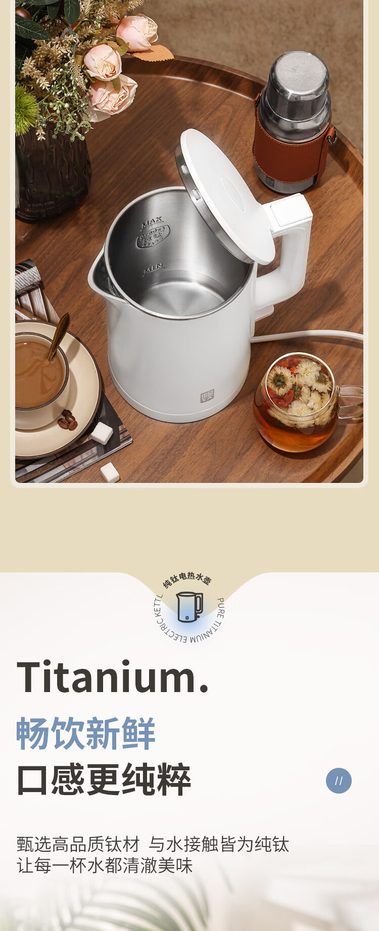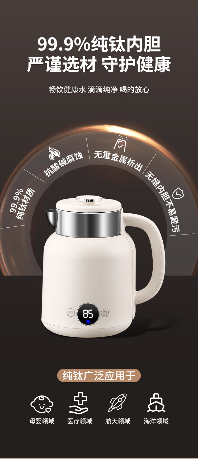 和顺钛和页钛纯钛烧水壶电热水壶自动断电防干烧双层防烫单段控温保温1.7L大容量无缝内胆快速沸腾开水壶白色 1.5L -99.9%纯钛电水壶【五段调温】 经典白色