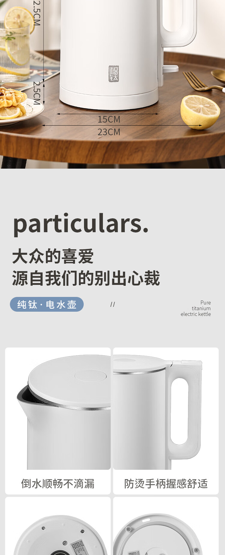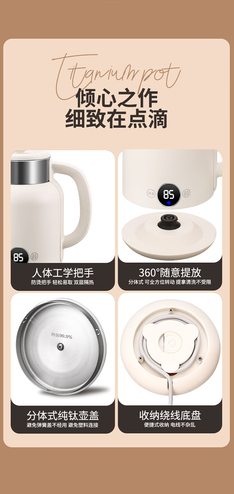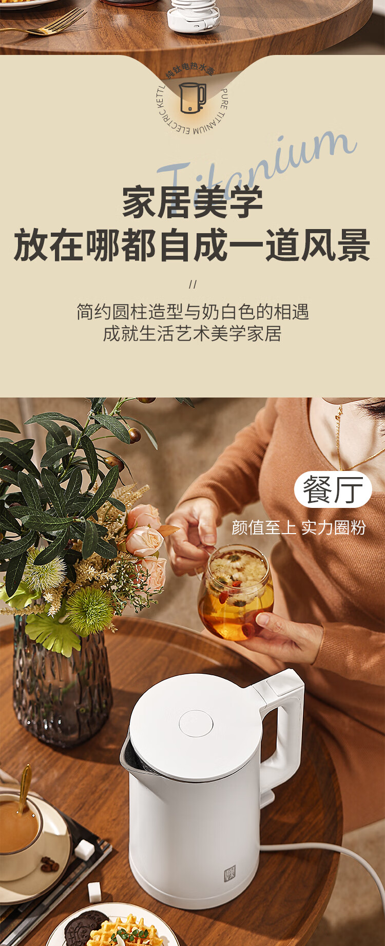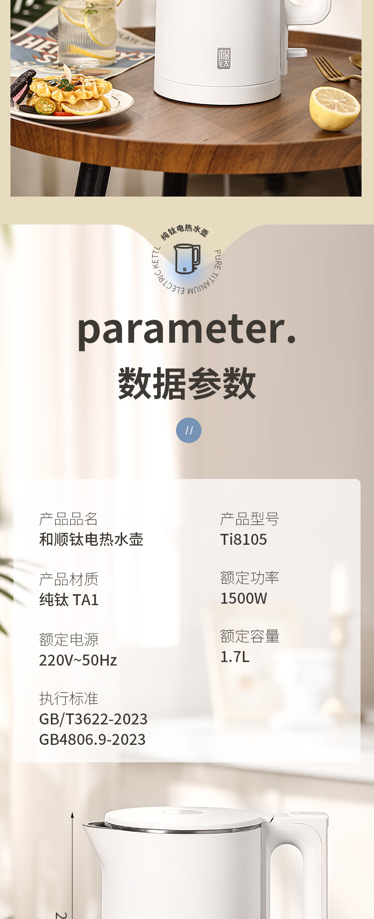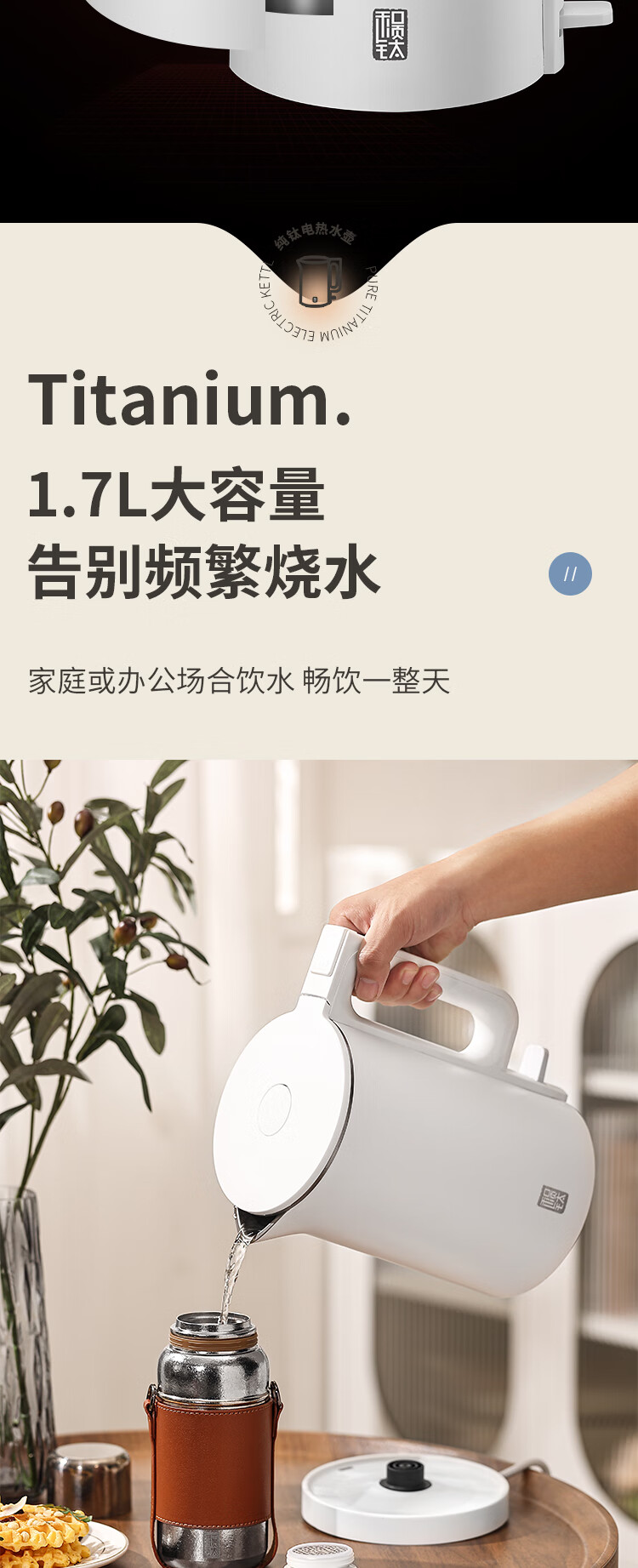 和顺钛和页钛纯钛烧水壶电热水壶自动断电防干烧双层防烫单段控温保温1.7L大容量无缝内胆快速沸腾开水壶白色 1.5L -99.9%纯钛电水壶【五段调温】 经典白色