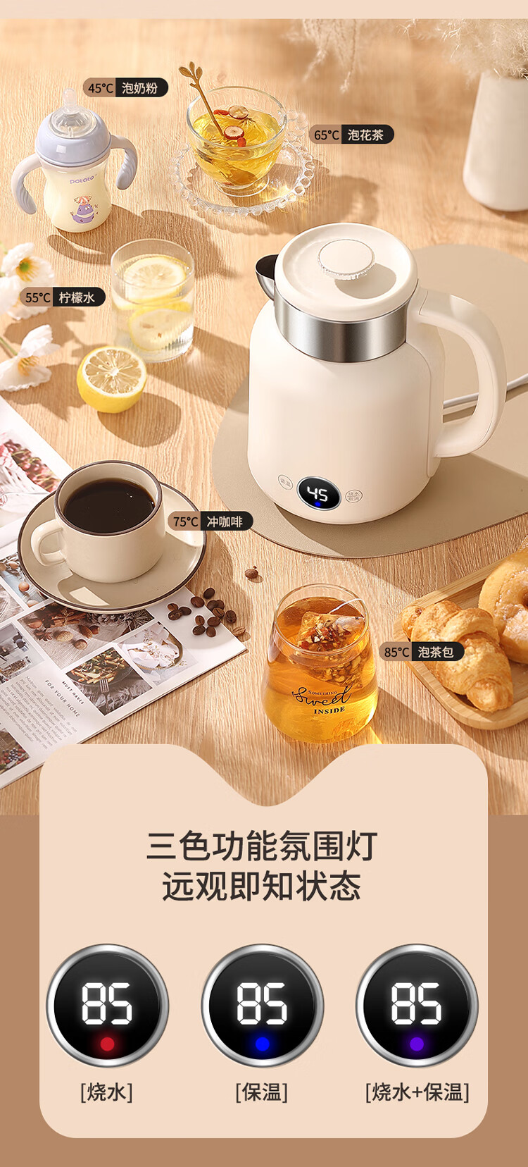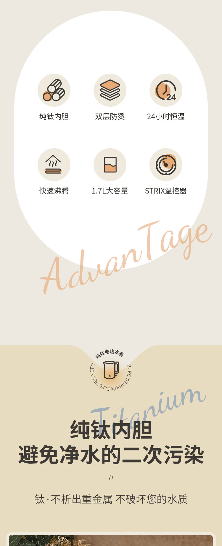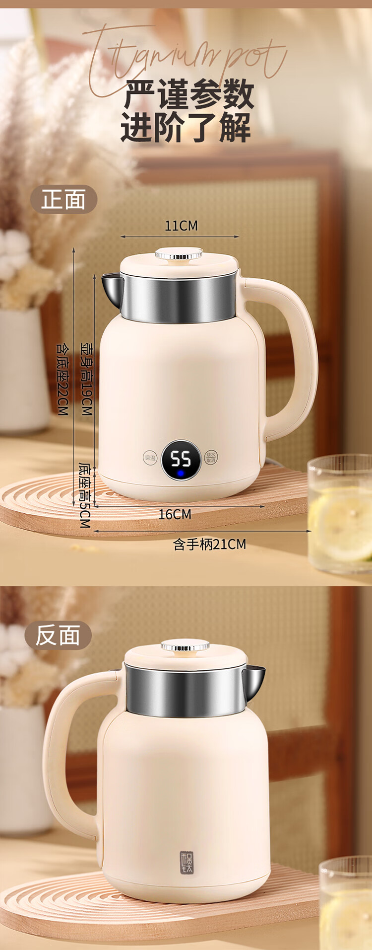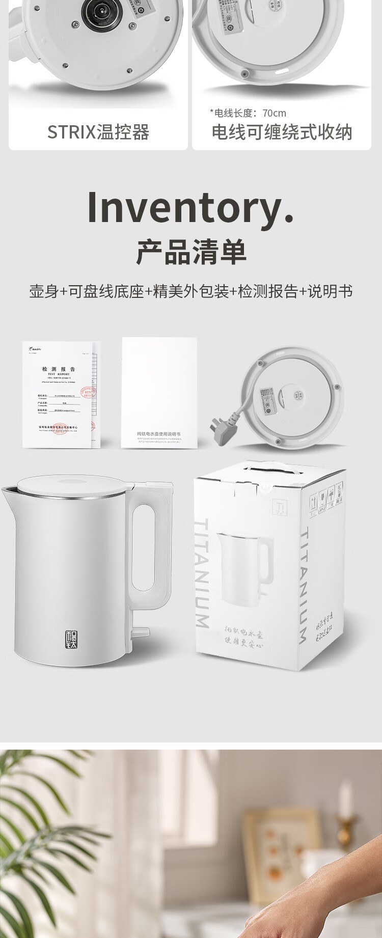 和顺钛和页钛纯钛烧水壶电热水壶自动断电防干烧双层防烫单段控温保温1.7L大容量无缝内胆快速沸腾开水壶白色 1.5L -99.9%纯钛电水壶【五段调温】 经典白色