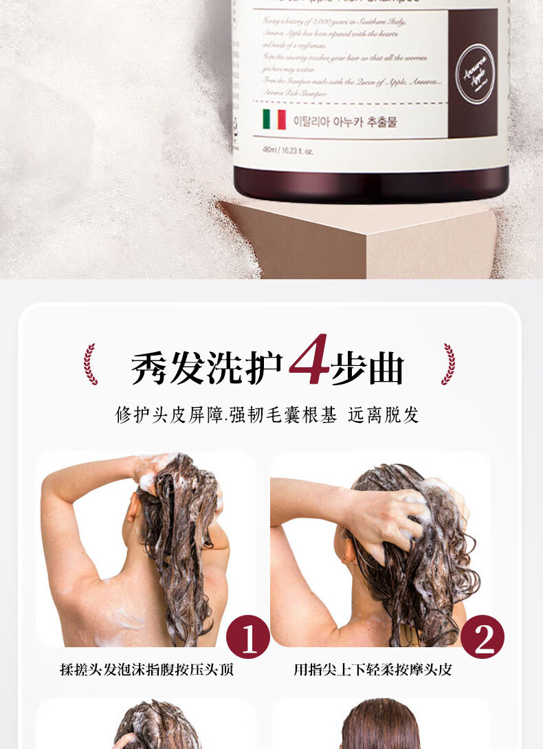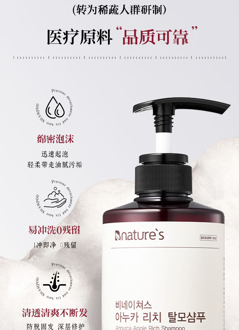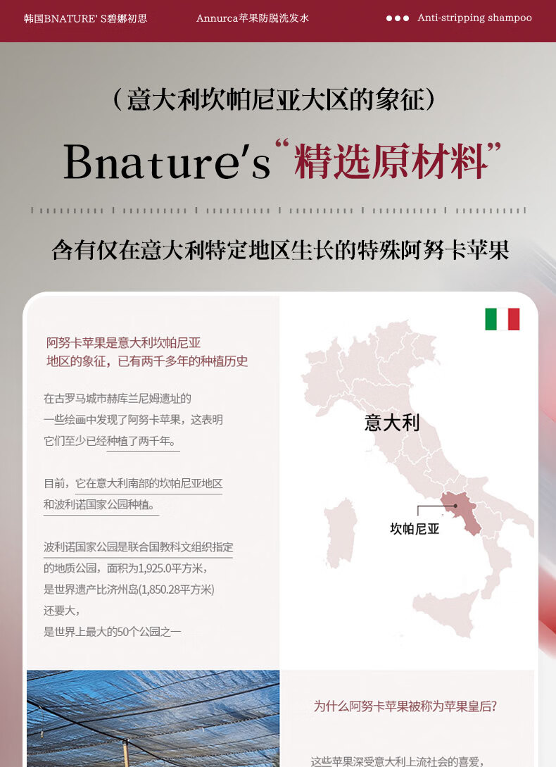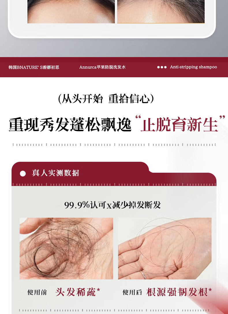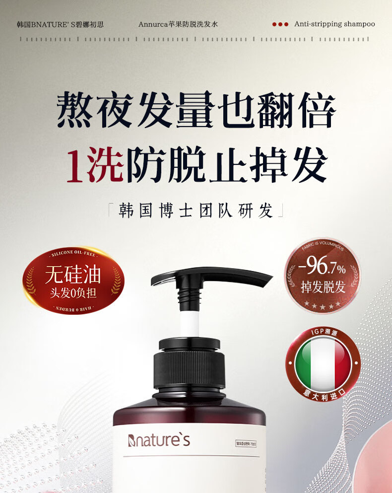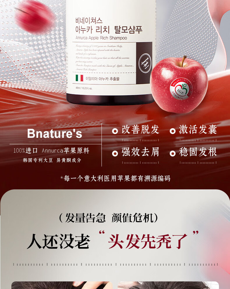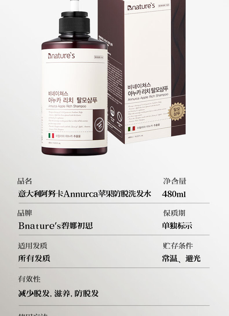 Bnature's意大利阿努卡苹果防脱洗发水增发密发育发控油洗头膏蓬松无硅油 阿努卡浓缩 防脱洗发水480ml