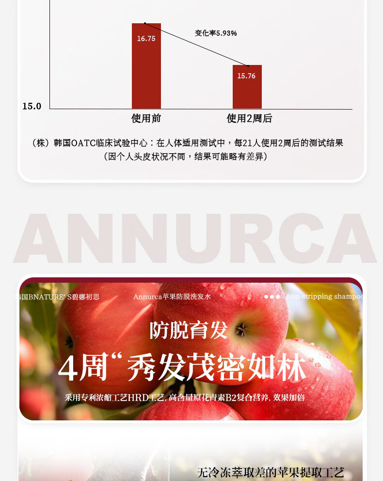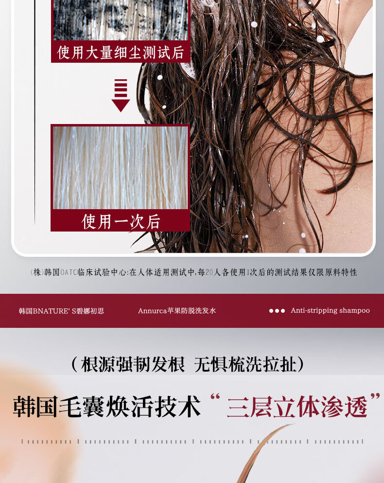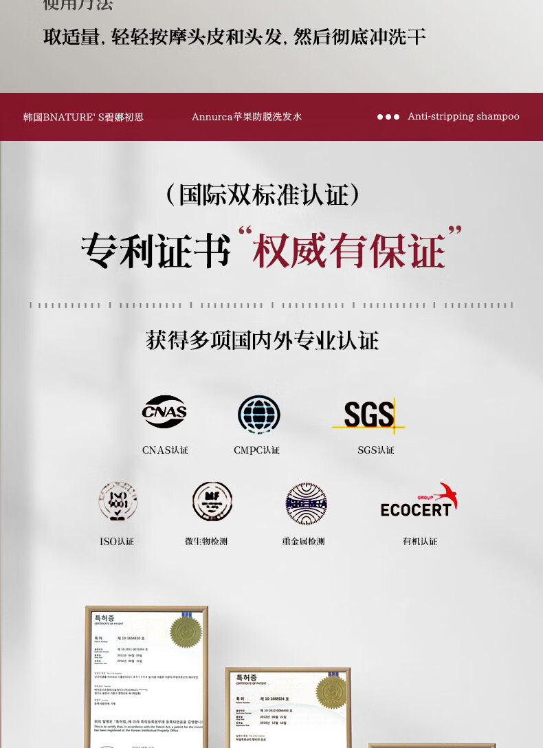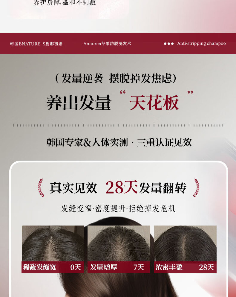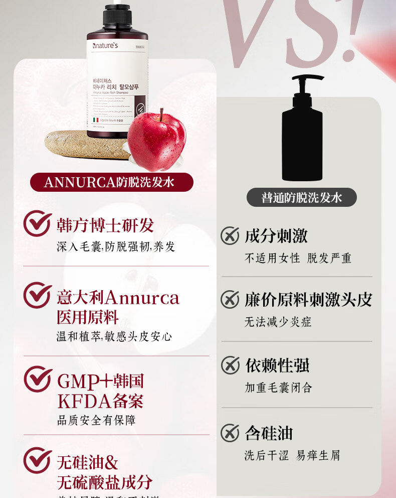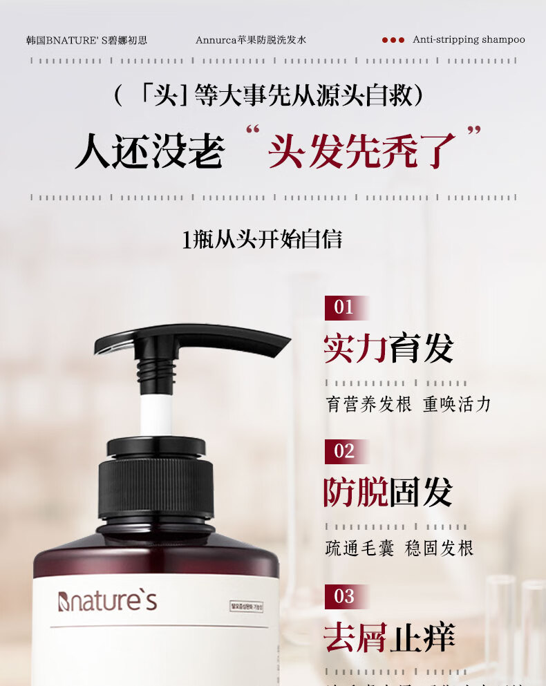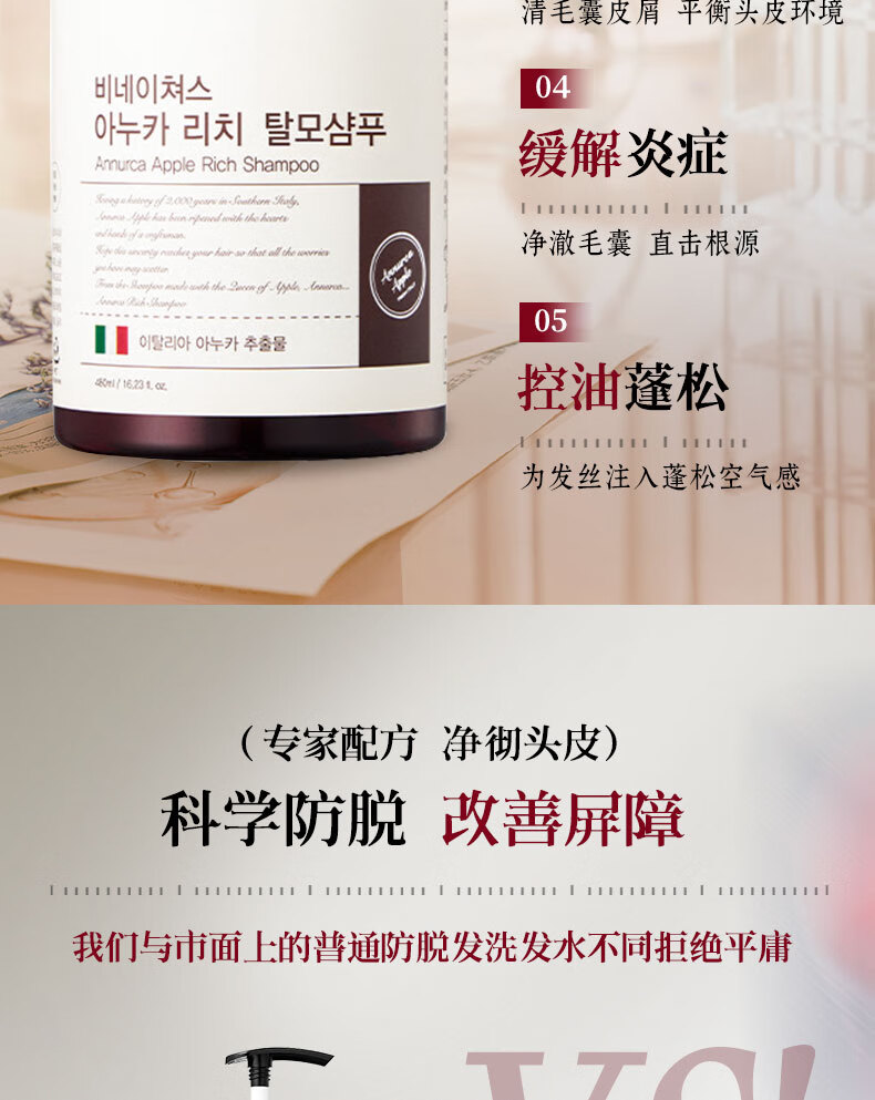 Bnature's意大利阿努卡苹果防脱洗发水增发密发育发控油洗头膏蓬松无硅油 阿努卡浓缩 防脱洗发水480ml