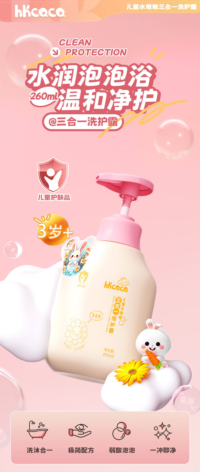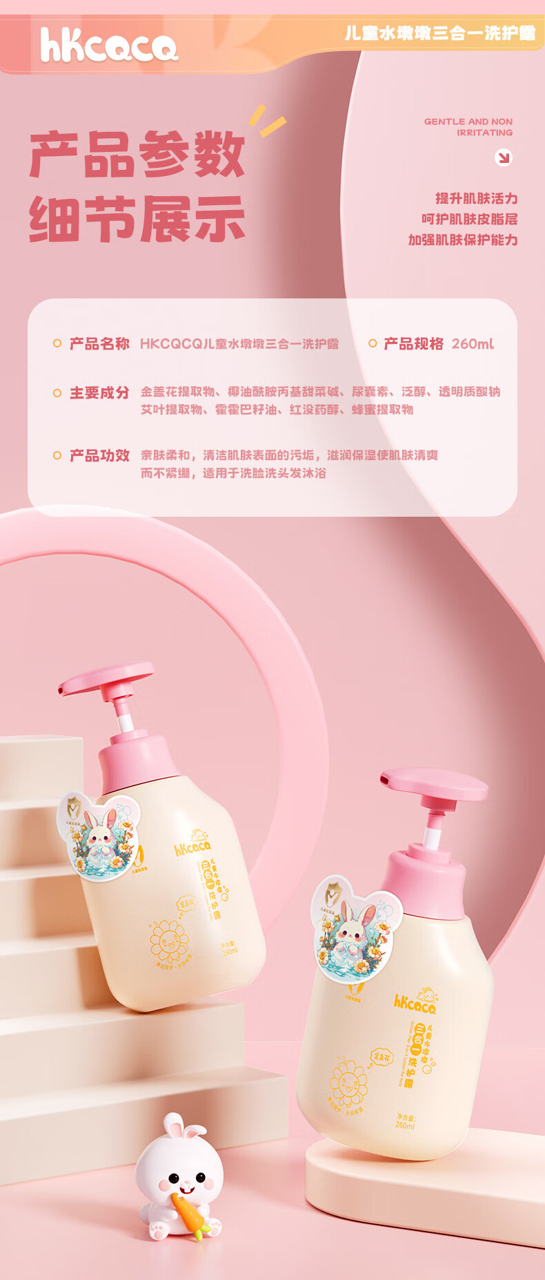 HKCQCQ儿童洗发水沐浴露洗护二合一洗护露亲肤洗发宝宝沐浴露批发 洗护露260ml(控价产品,合作咨询客服)