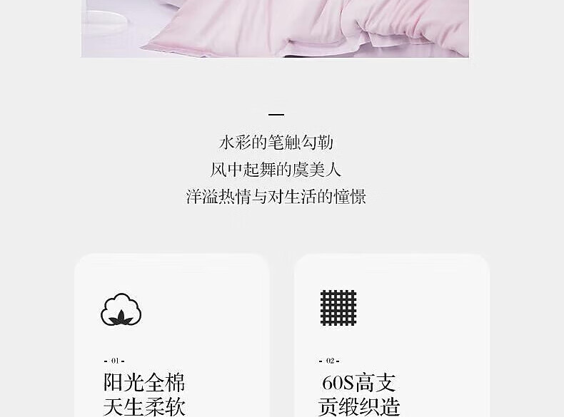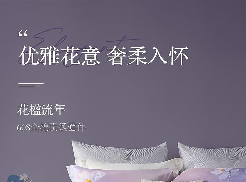 百丽丝床上四件套60S贡缎纯棉套件三件套宿舍家用床品 花楹流年 床单款 (被套200*230cm)
