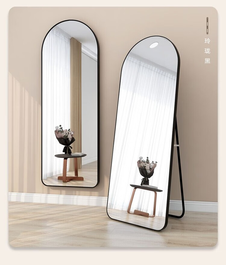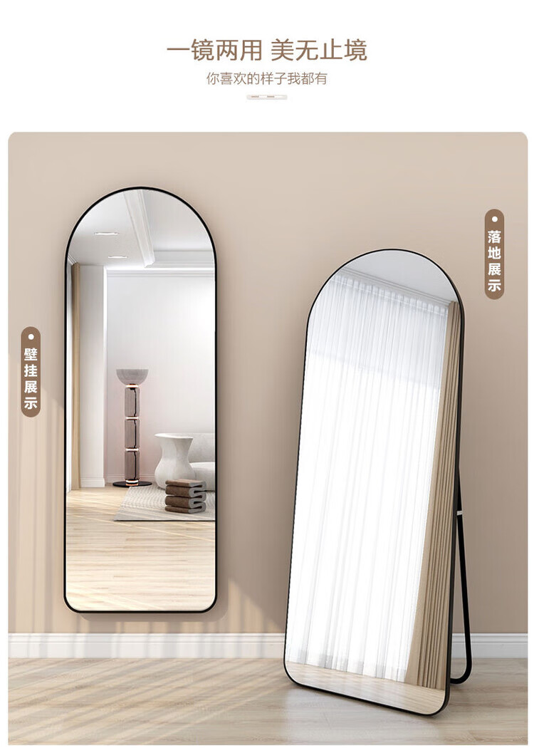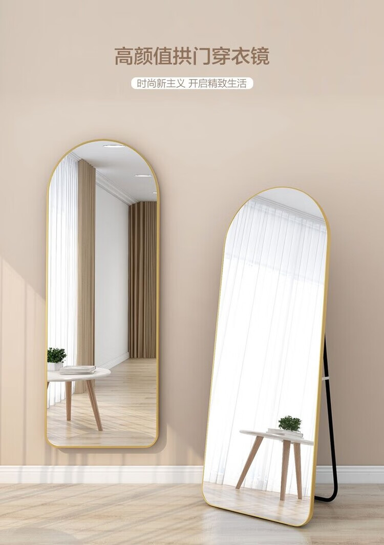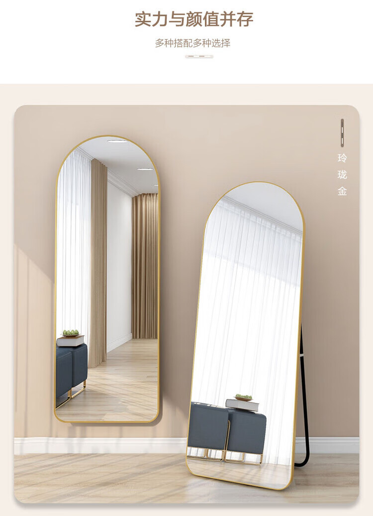 弘星隆全身镜子落地镜家用高清全身镜拱形服装店试衣镜卧室少女穿衣镜 【合金款】玲珑金 1500*400mm落地/壁挂两用