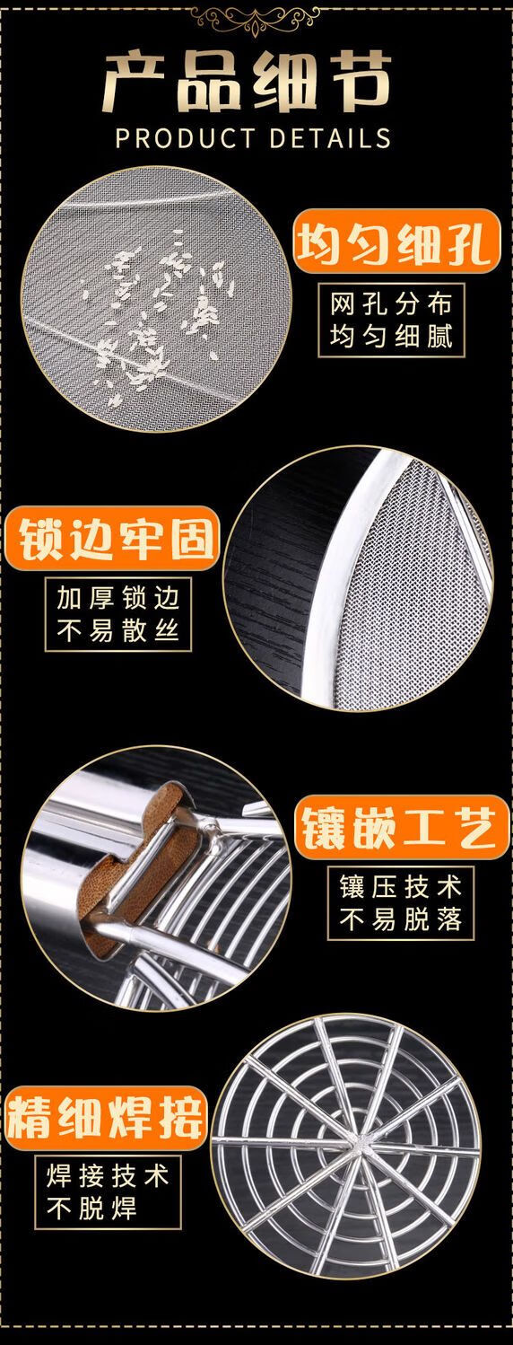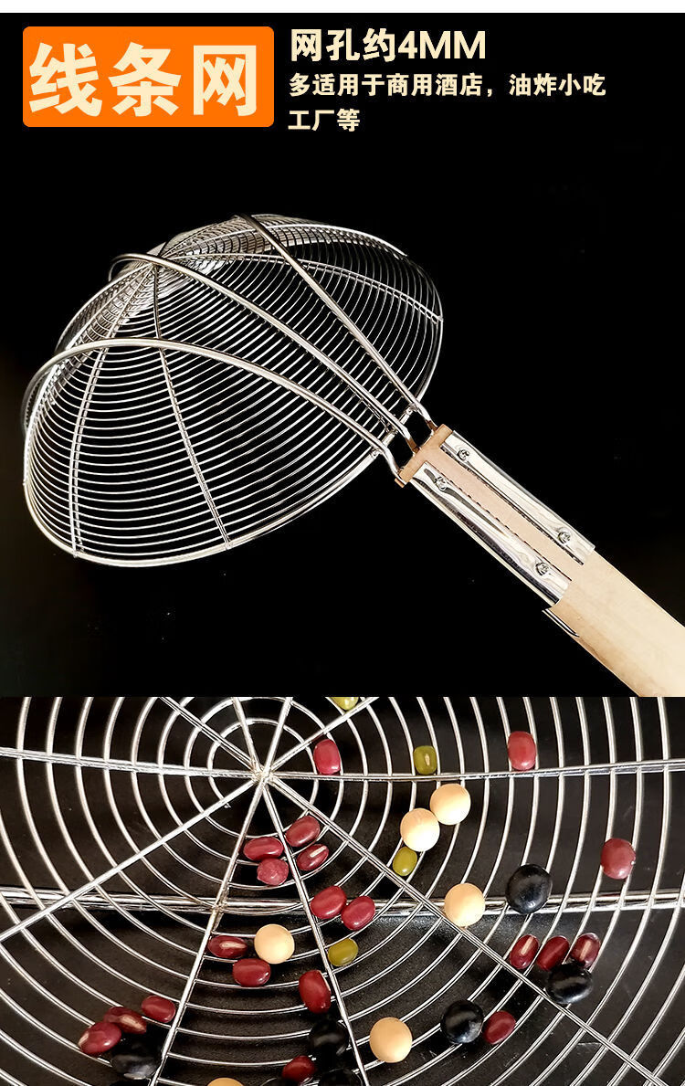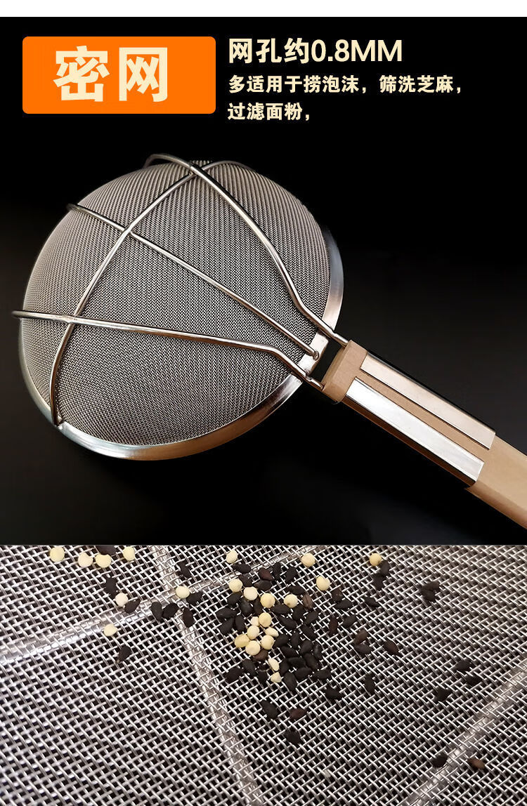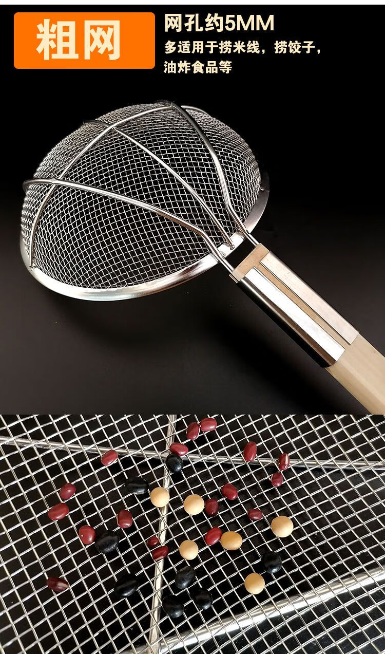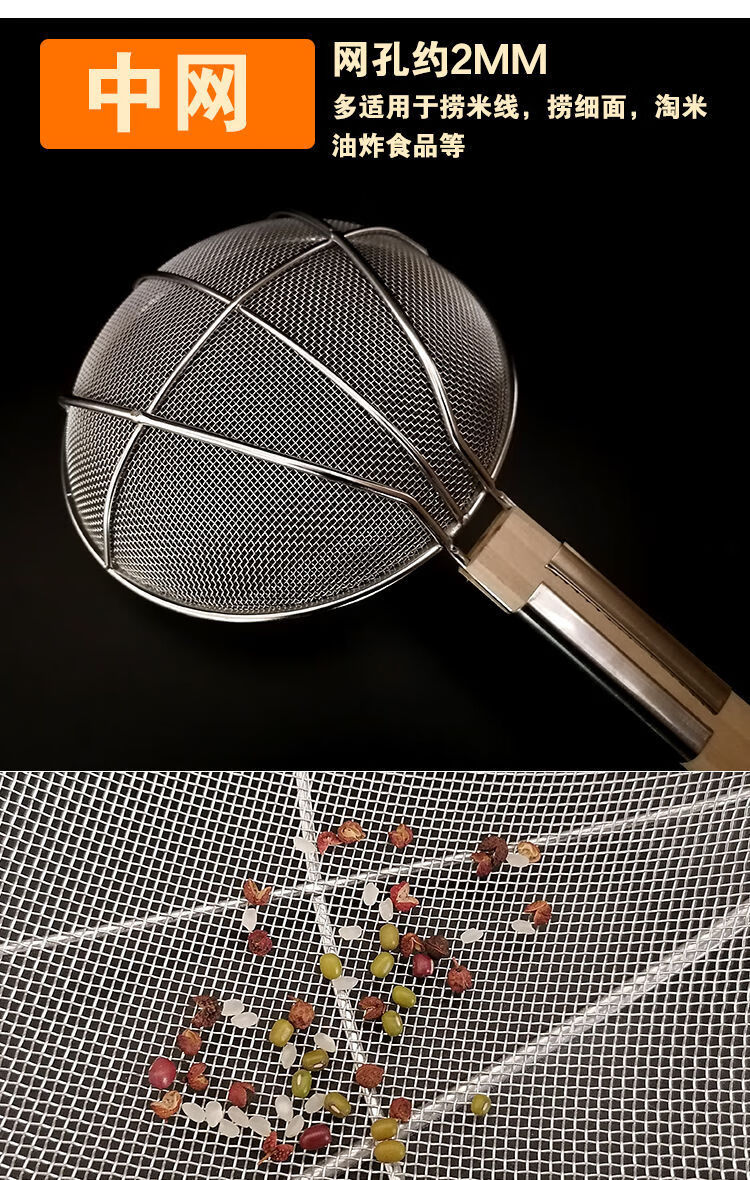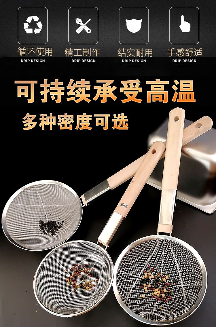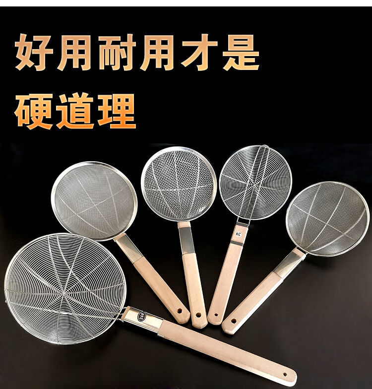 LZJV不锈钢捞篱漏勺油炸过滤网大号捞面漏网厨房商用超细家用木柄笊篱 两托12目中网16cm