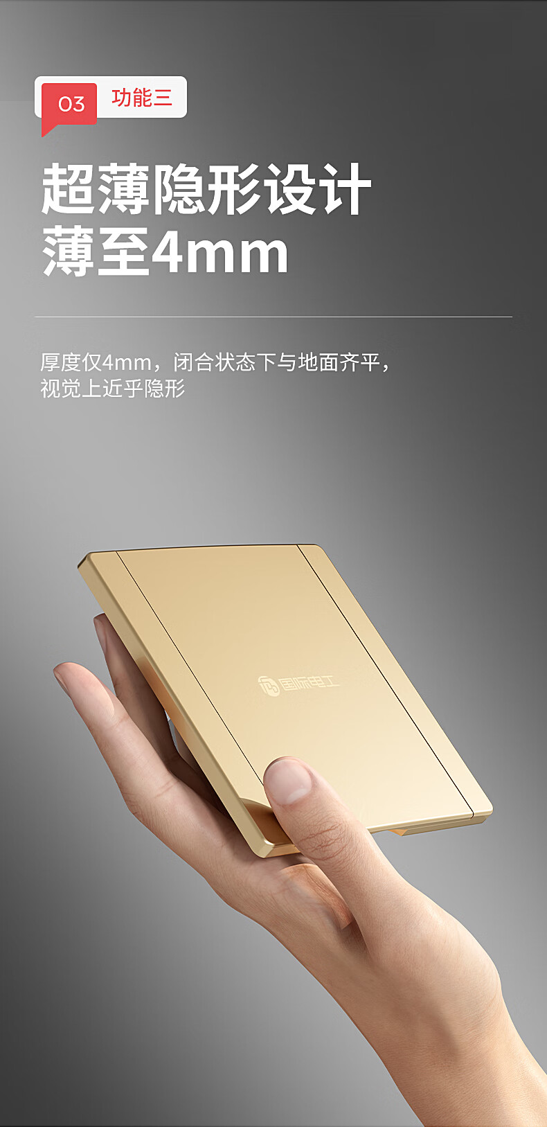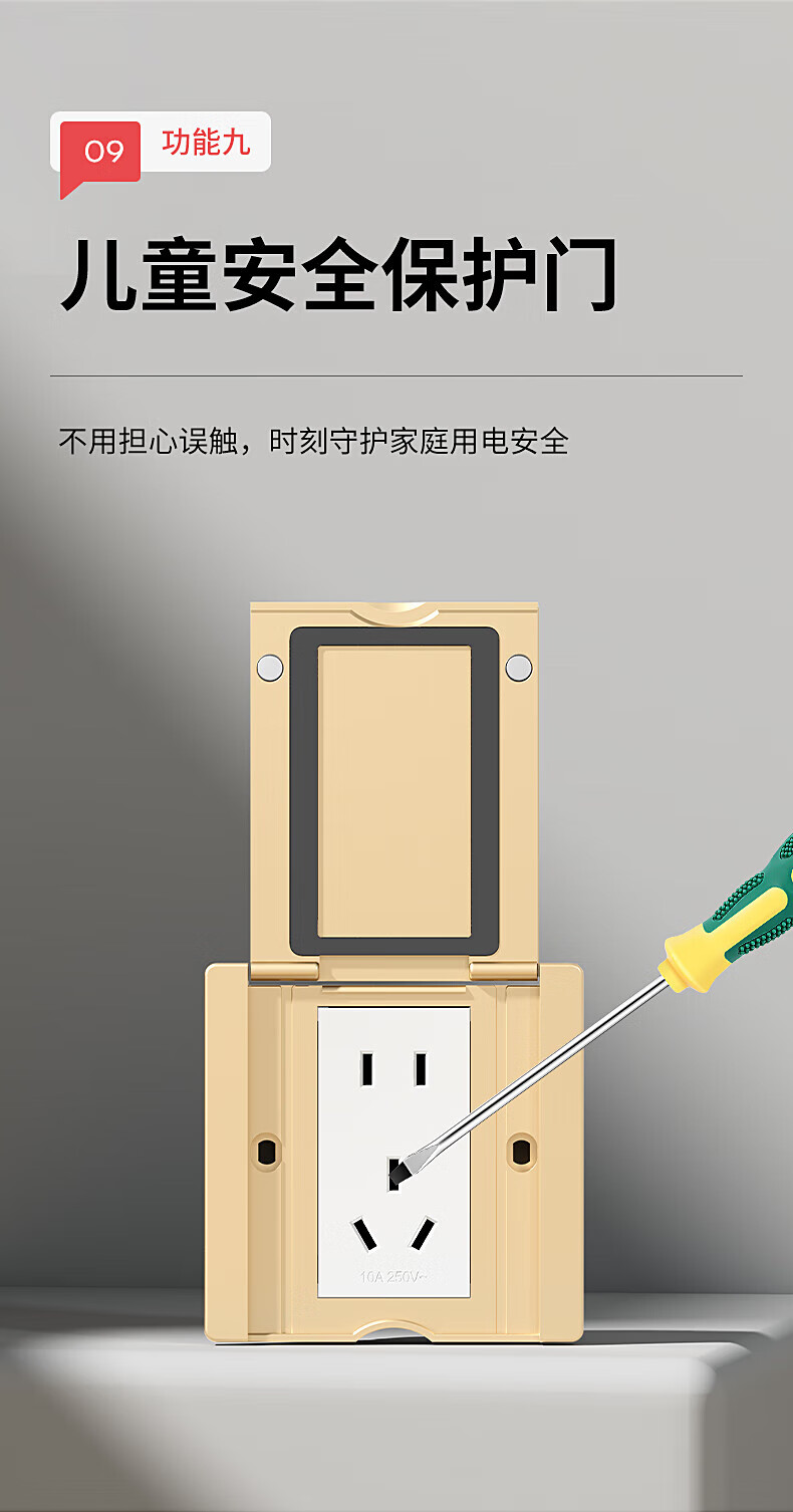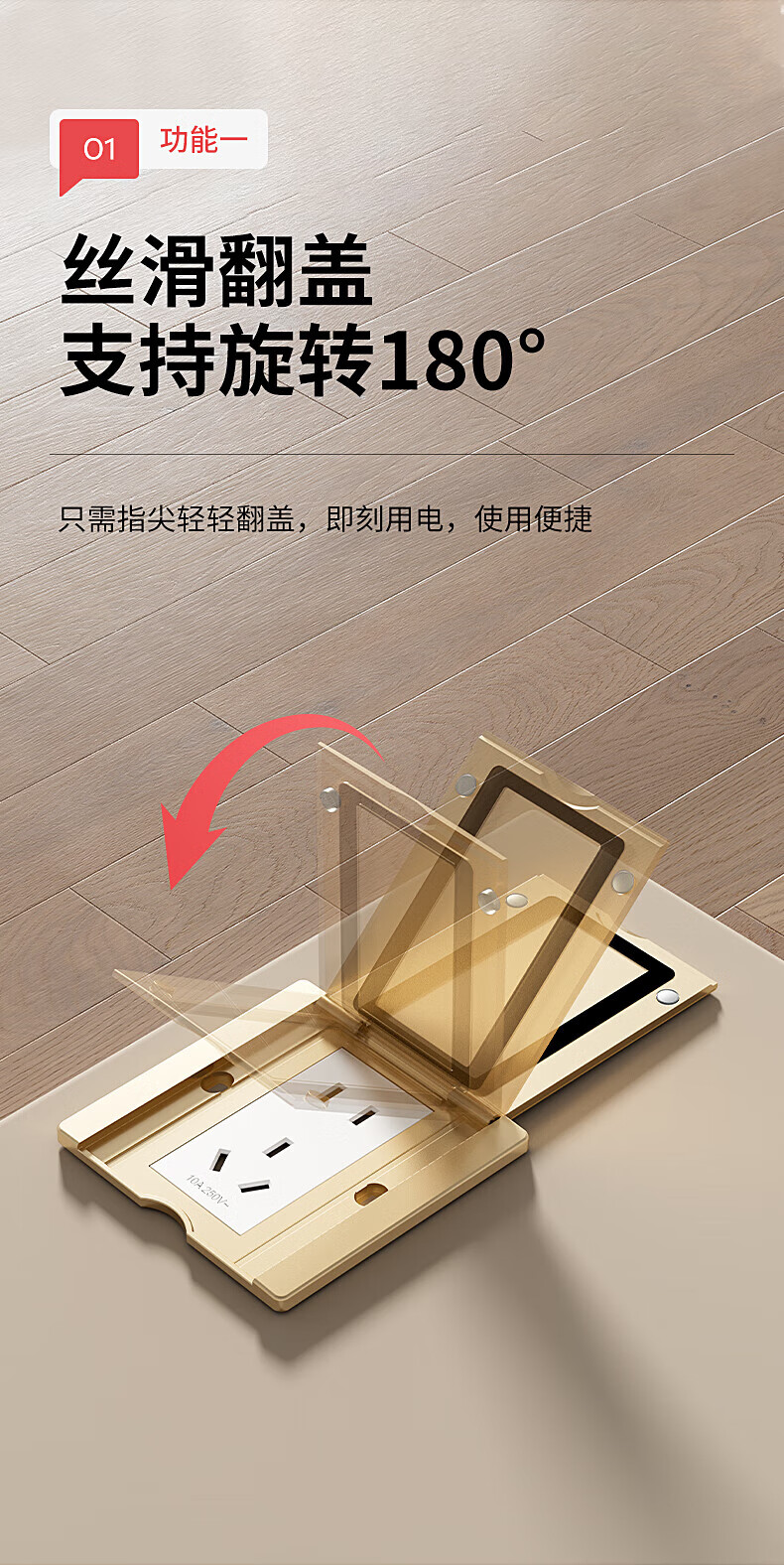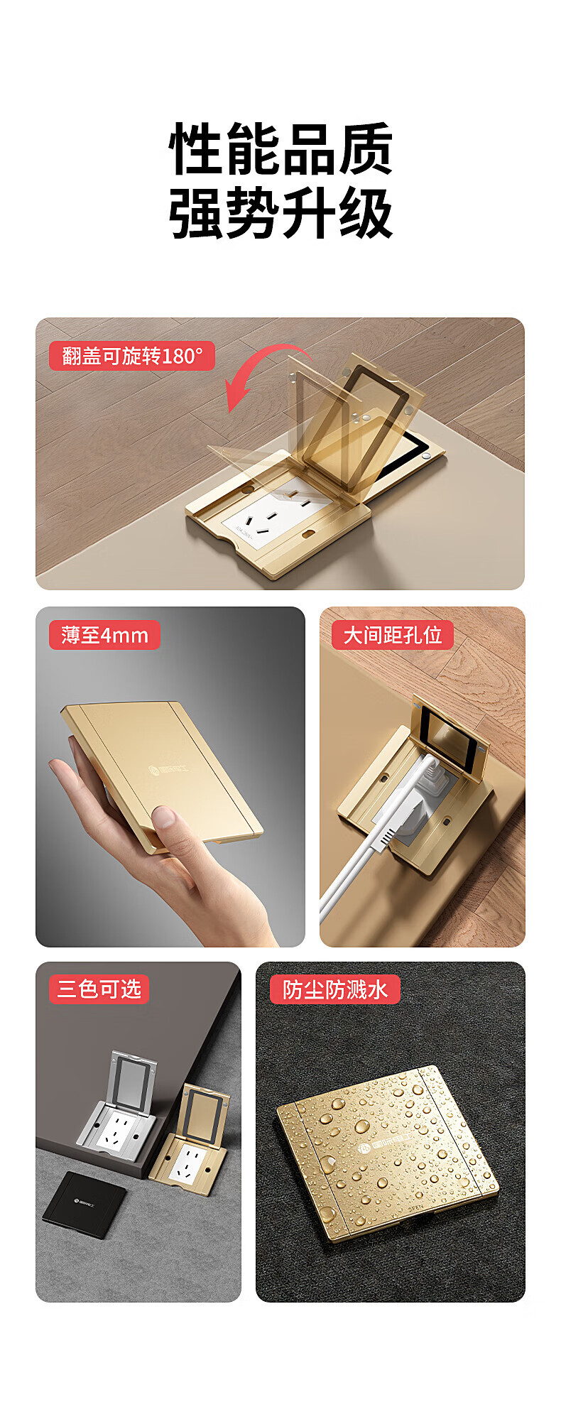 国际电工86型地面插座隐形地插翻盖隐藏式盖板超薄防水五孔网络电脑面板 86型金色-16A五孔