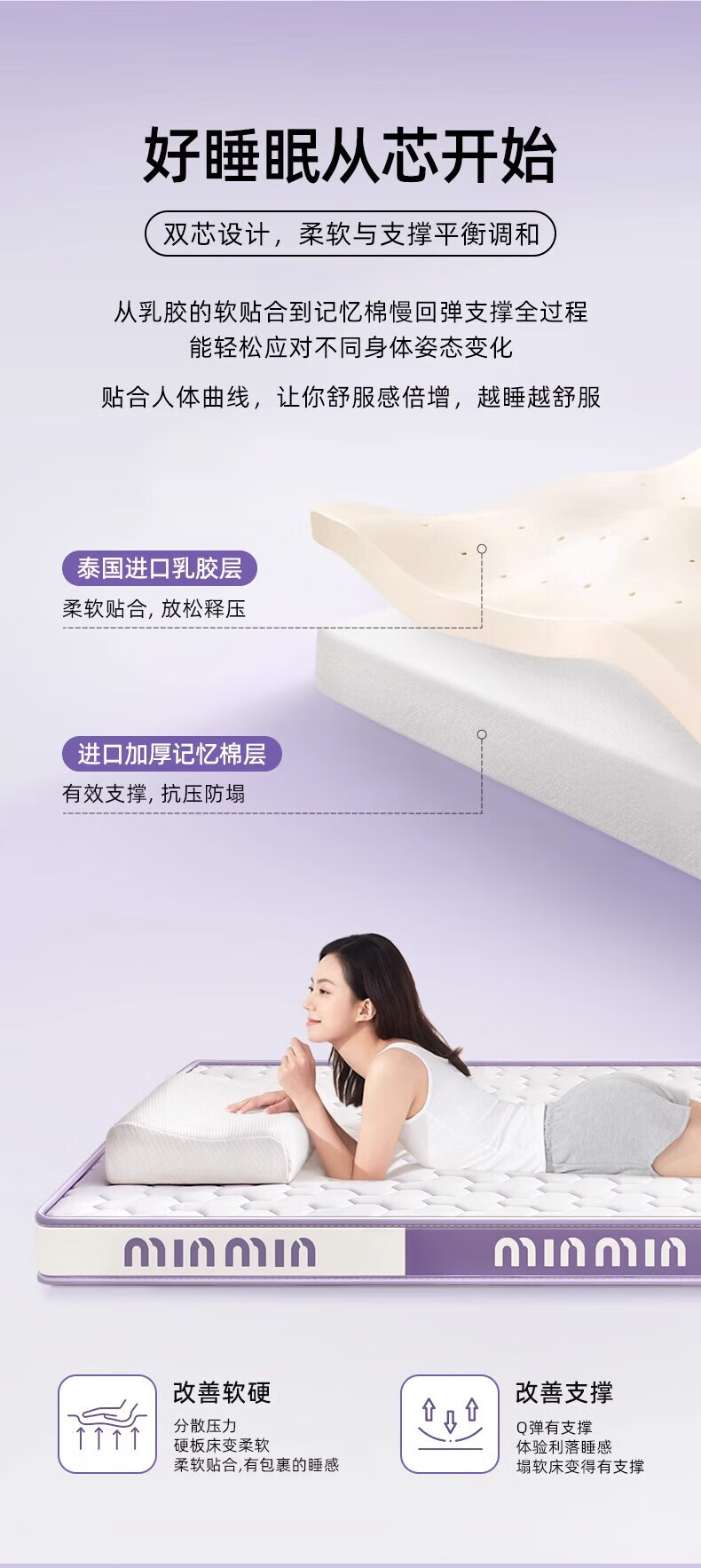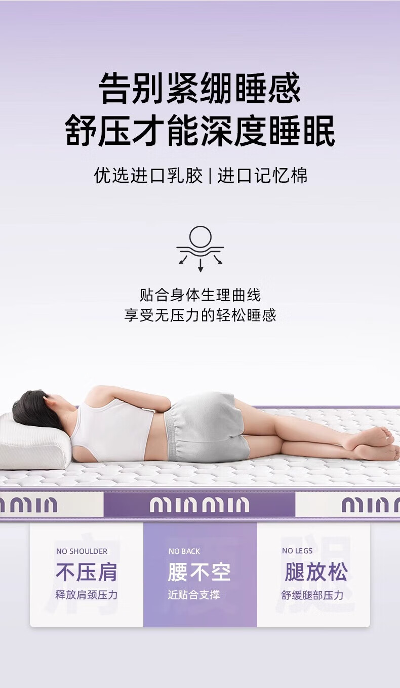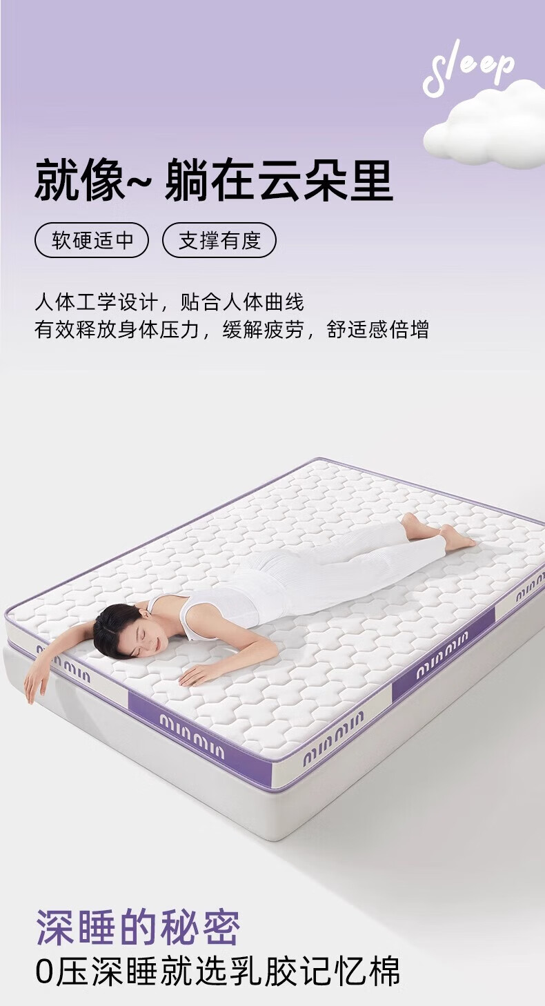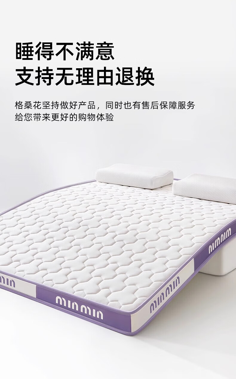 南极人(Nanjiren)学生乳胶床垫1.2米x1.9米记忆棉单人可折叠海绵垫宿舍榻榻米垫子 minmin-白紫【约6cm厚】 120cm*190cm【天然乳胶层】