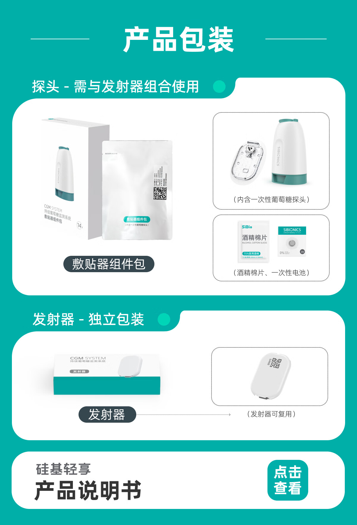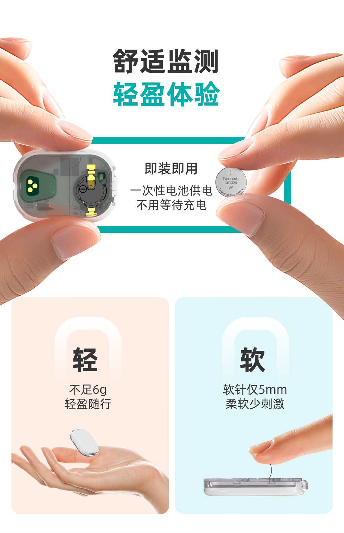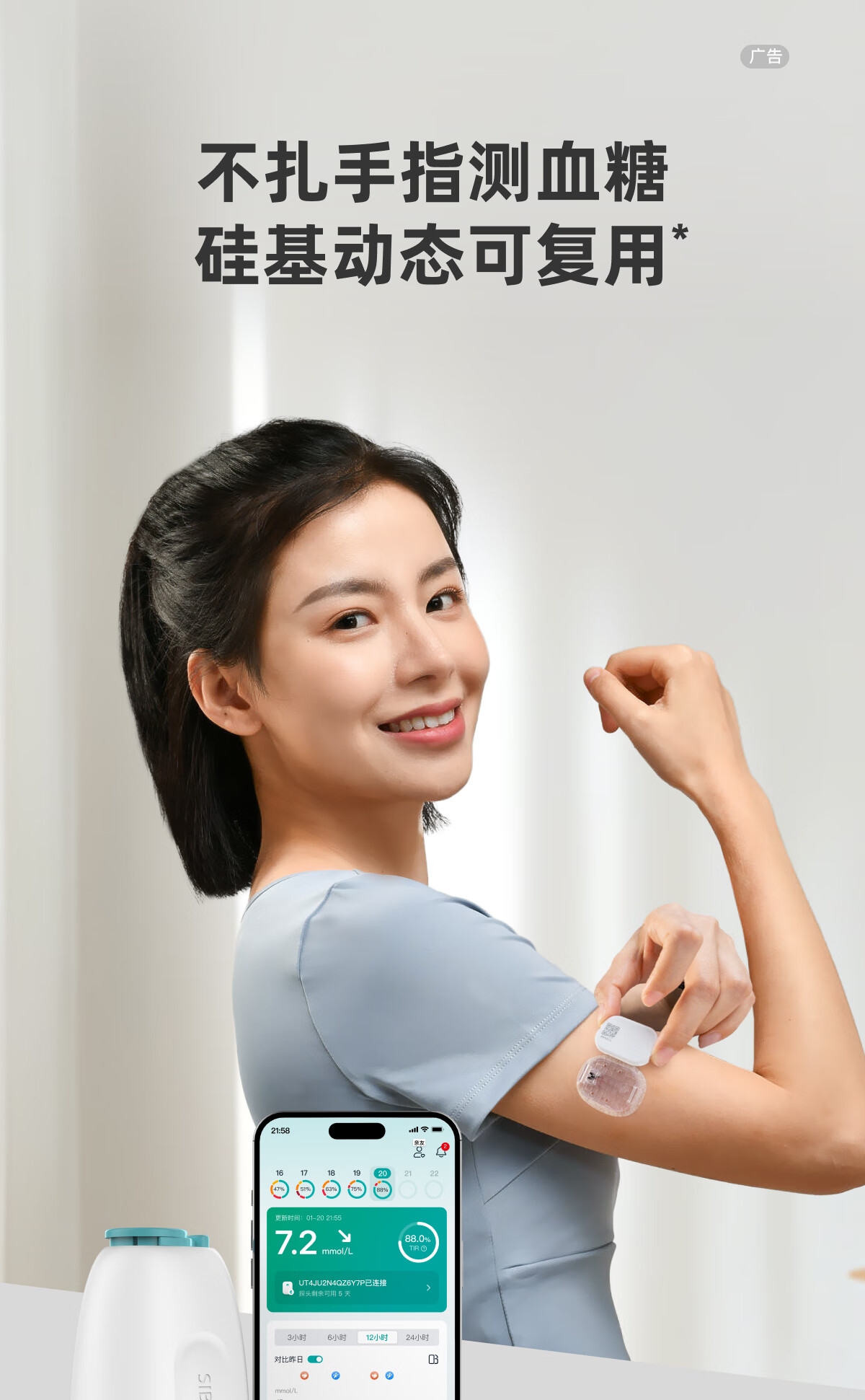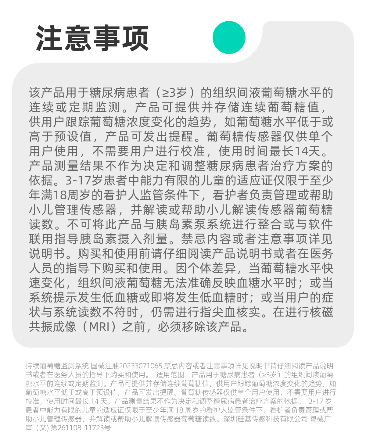 硅基动感轻享分体式可复用动态血糖仪家用24小时检测不扎手指免扎针血糖仪 1发射器+4探头【可用56天】