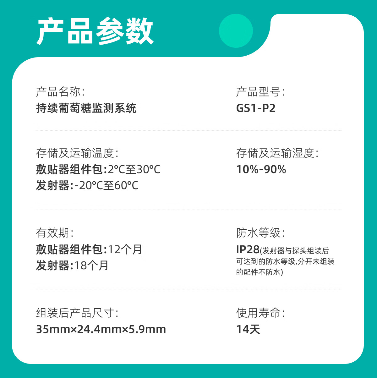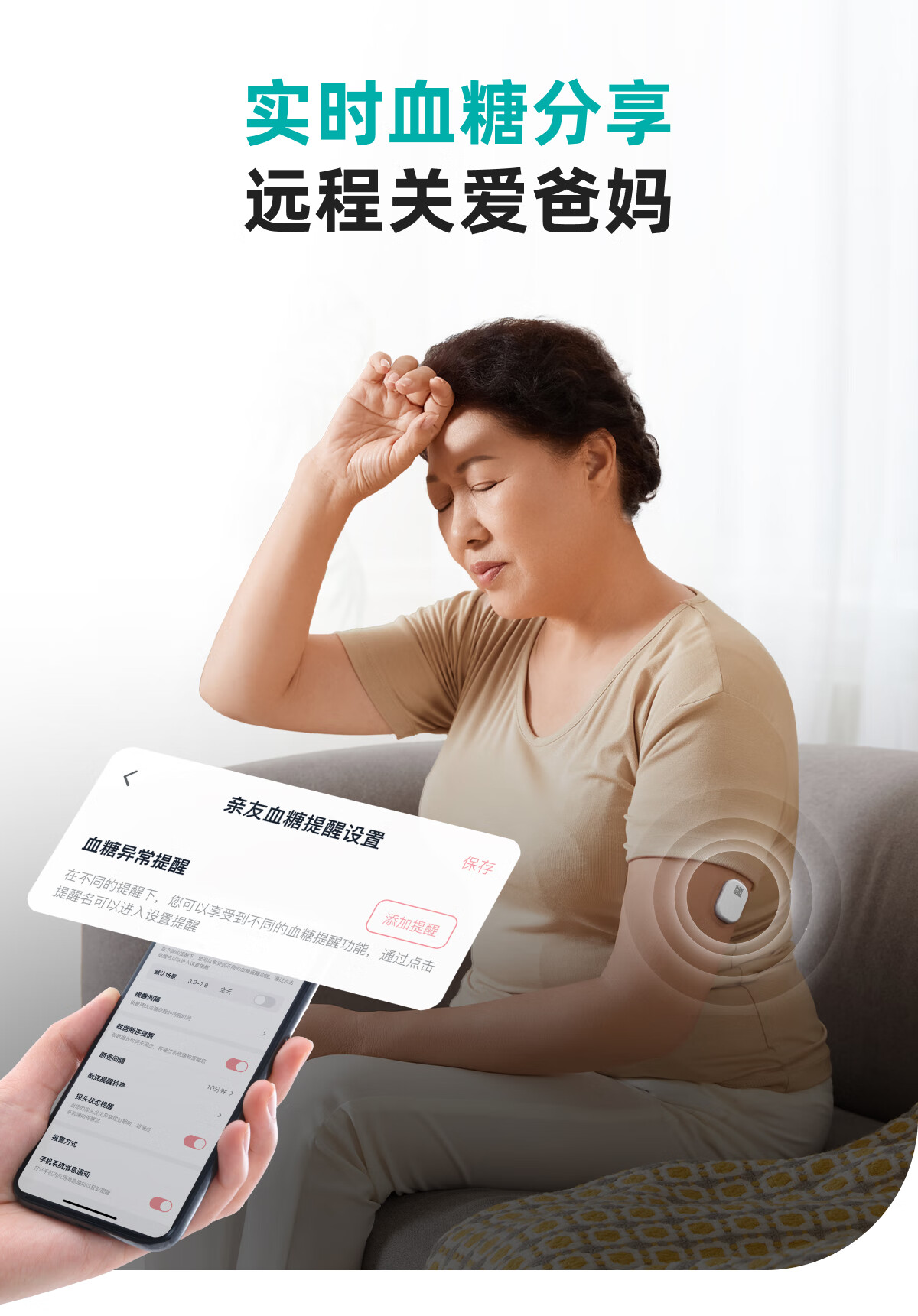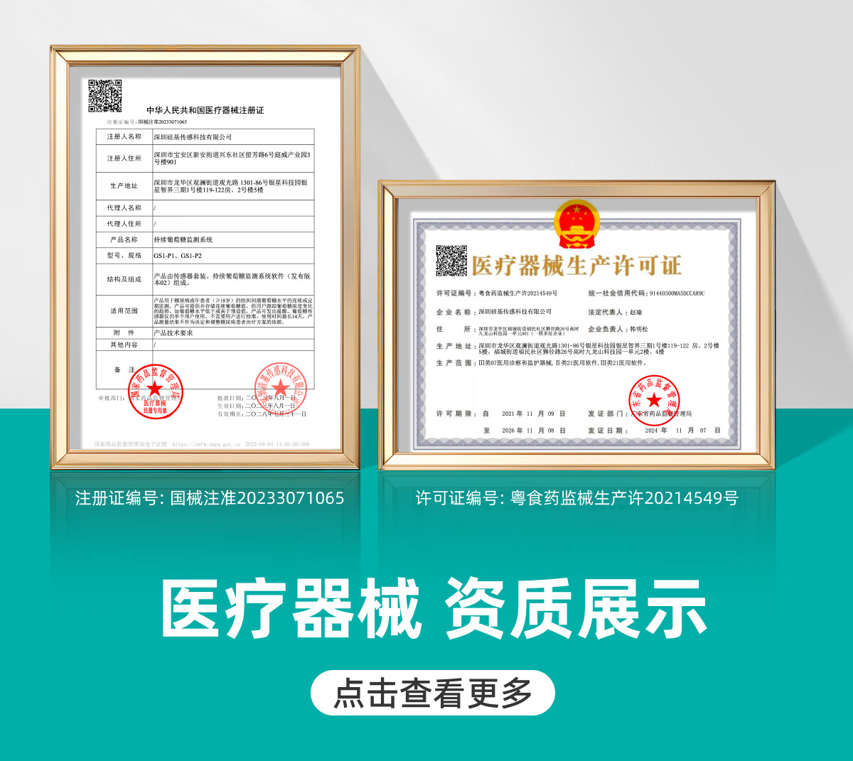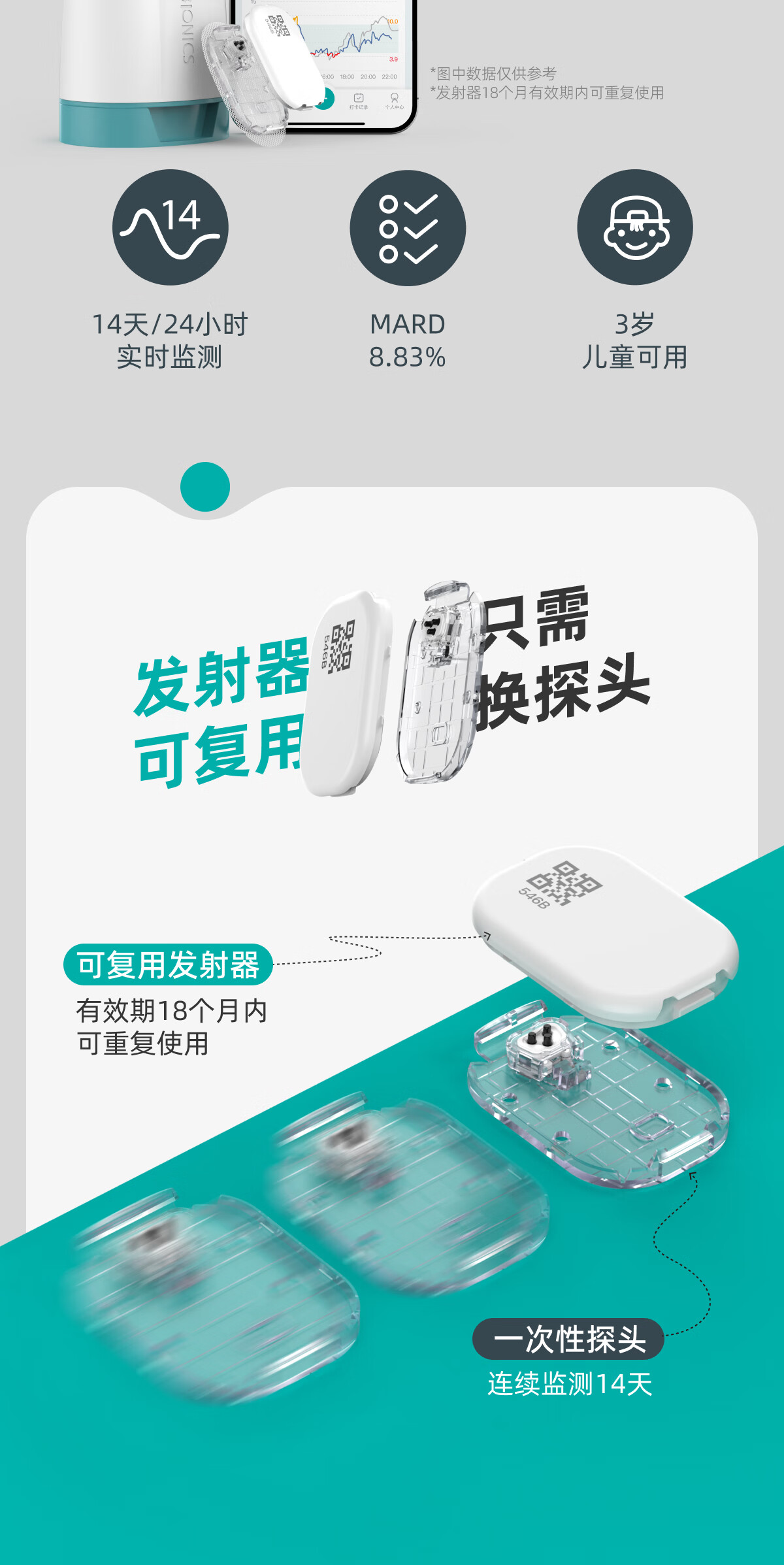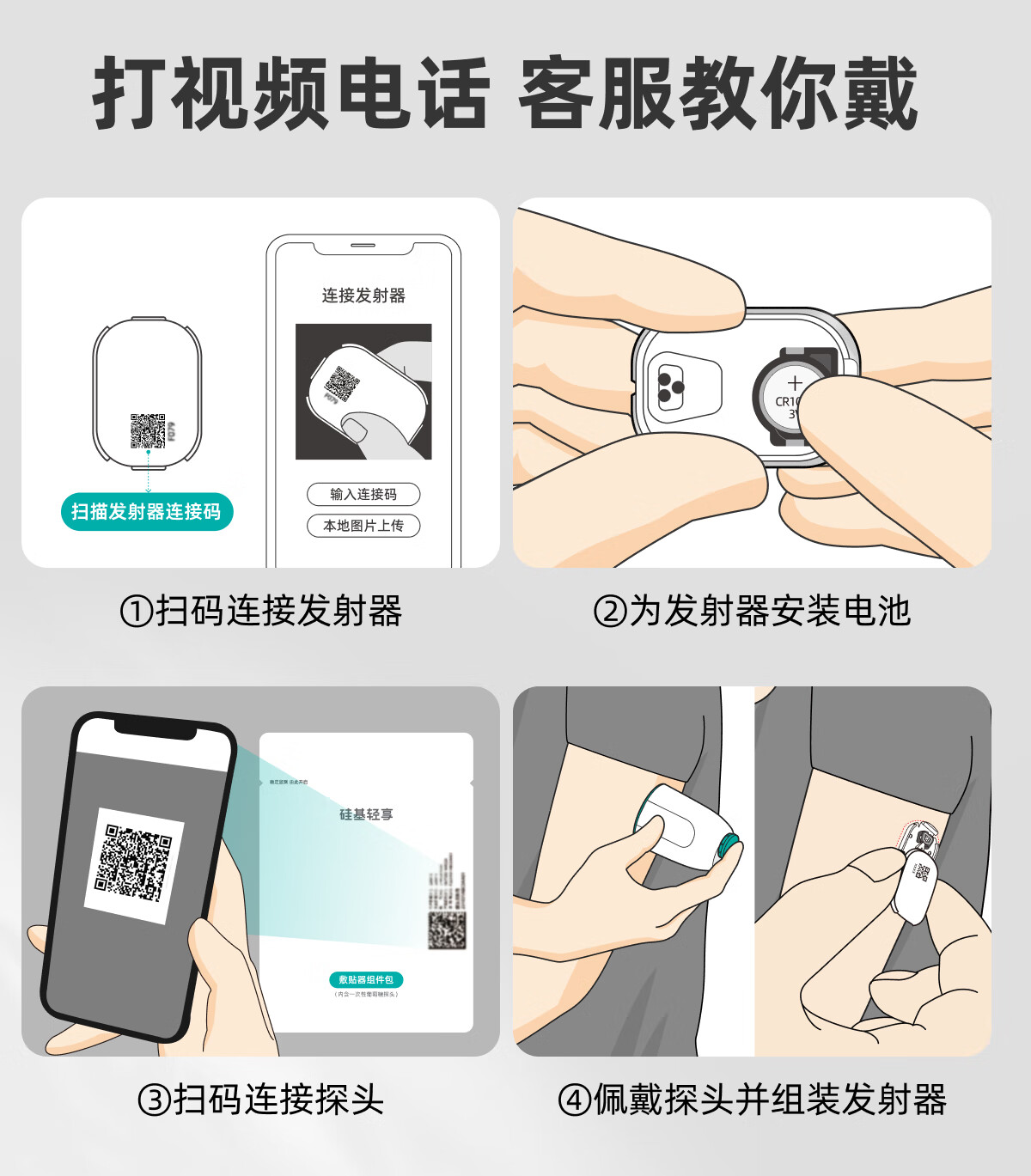 硅基动感轻享分体式可复用动态血糖仪家用24小时检测不扎手指免扎针血糖仪 1发射器+4探头【可用56天】