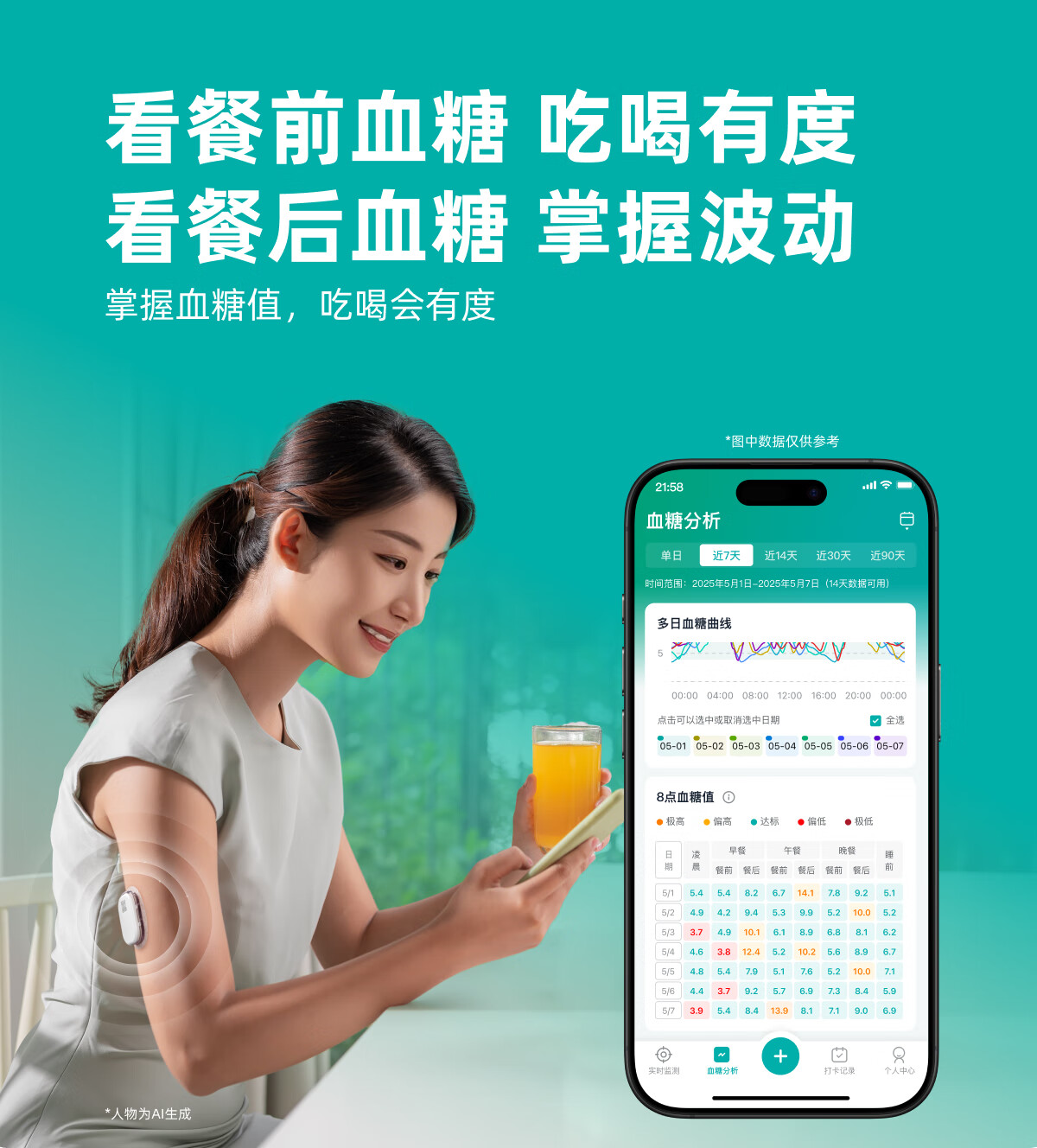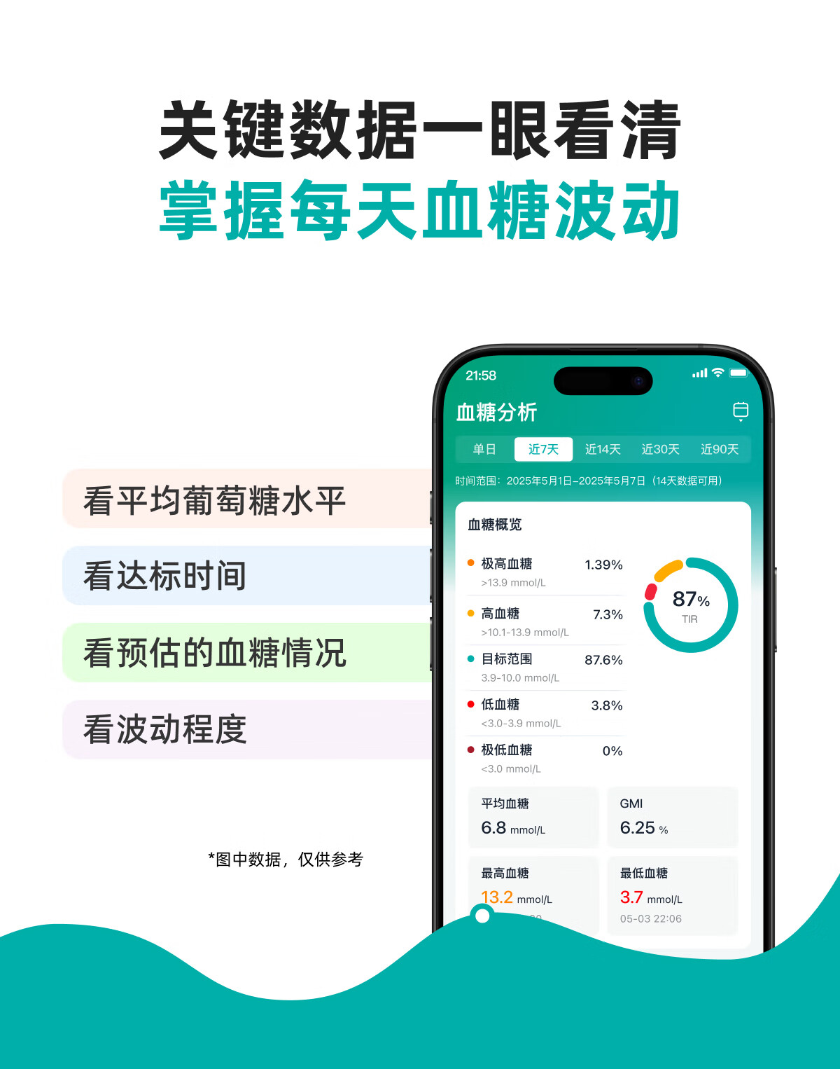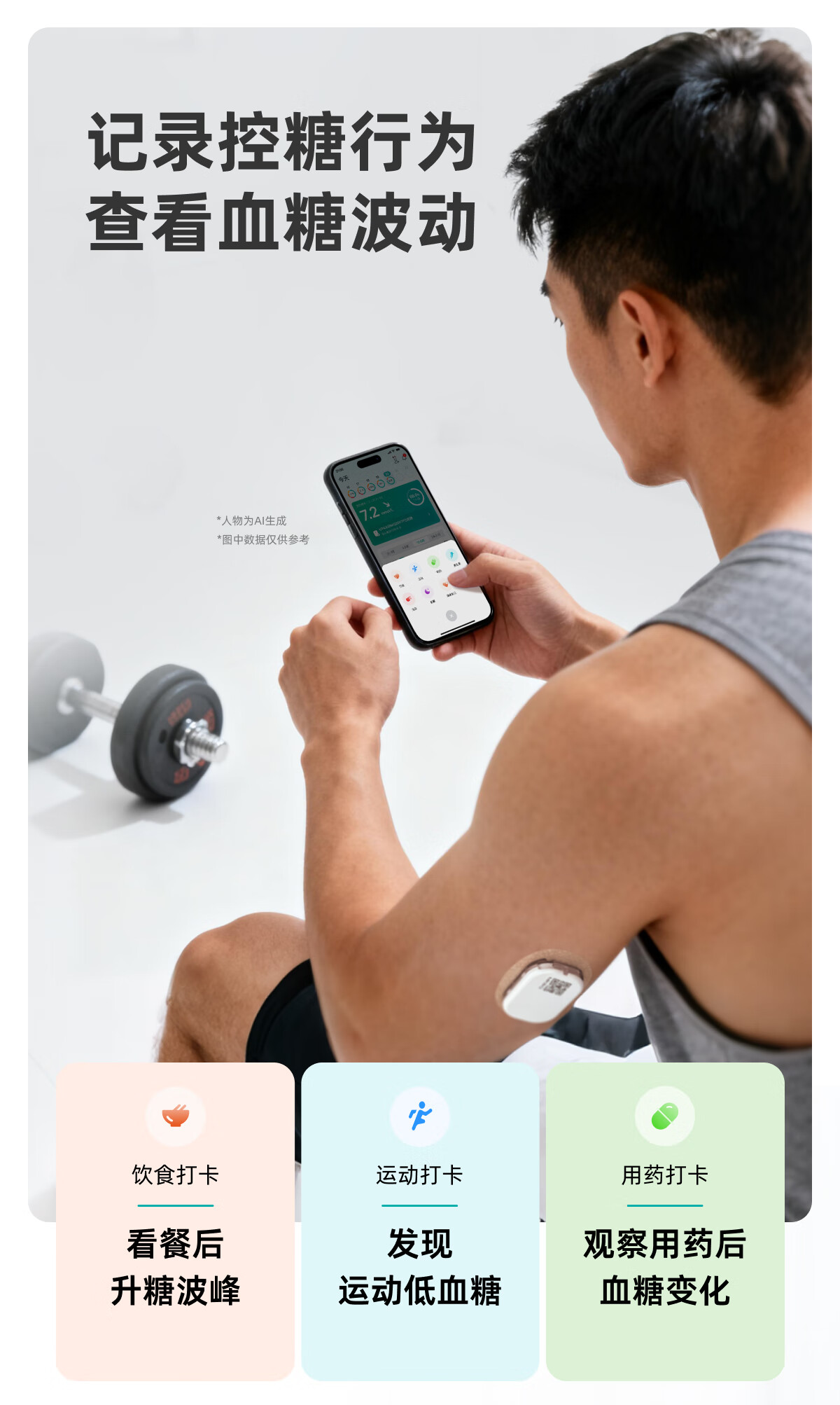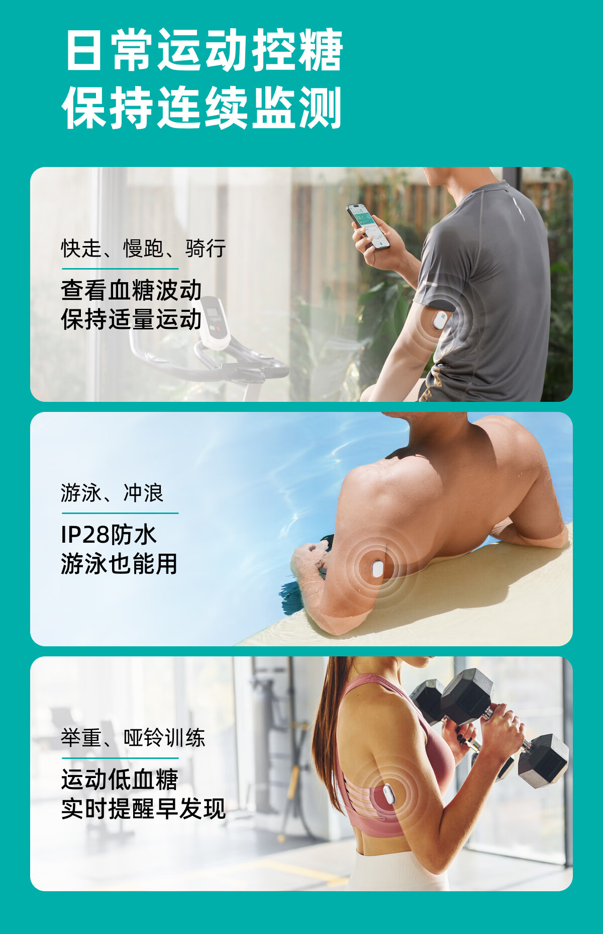 硅基动感轻享分体式可复用动态血糖仪家用24小时检测不扎手指免扎针血糖仪 1发射器+4探头【可用56天】