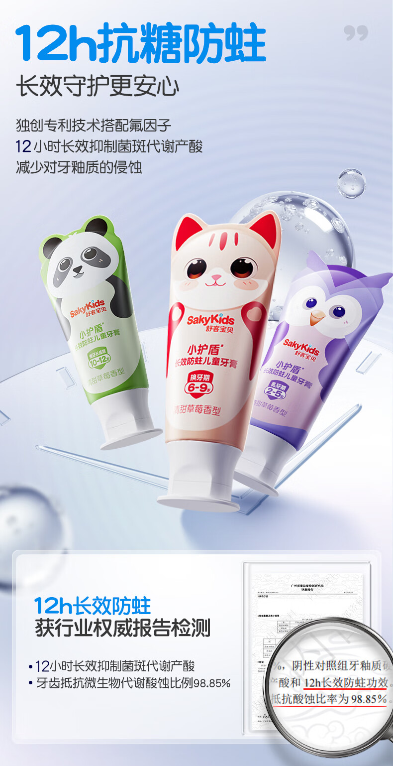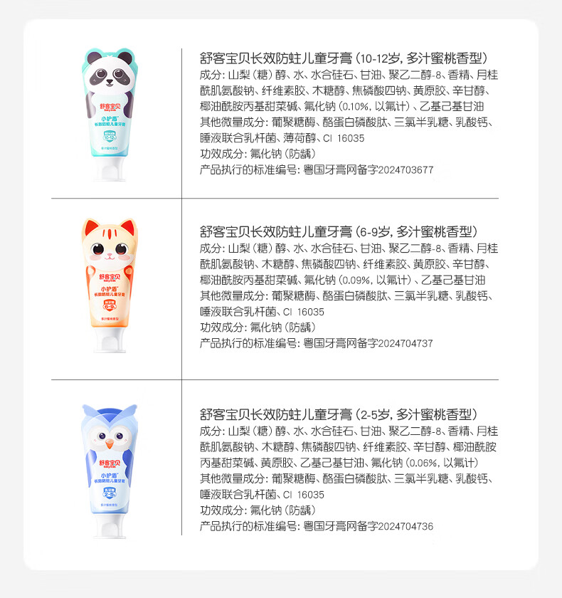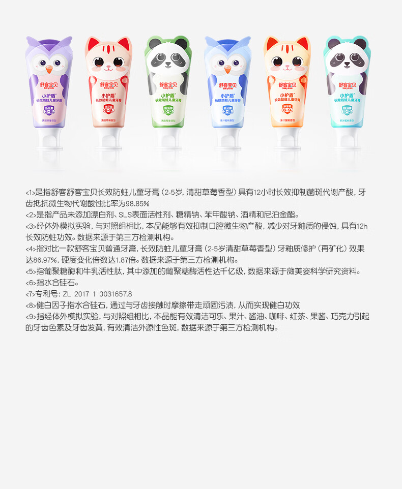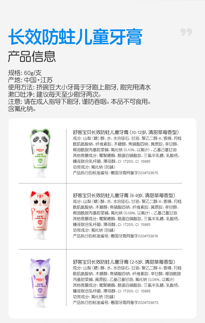 舒客宝贝儿童牙膏套装小护盾12小时长效防蛀牙膏60g*4支装(6-9岁)