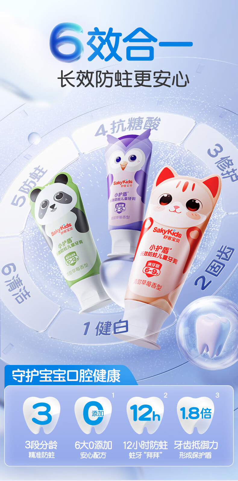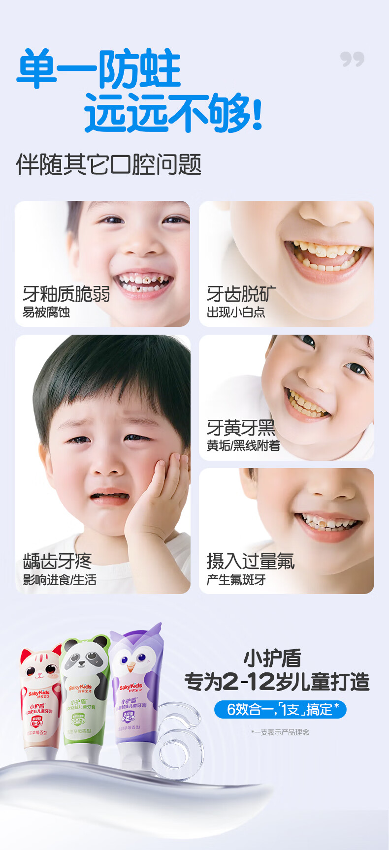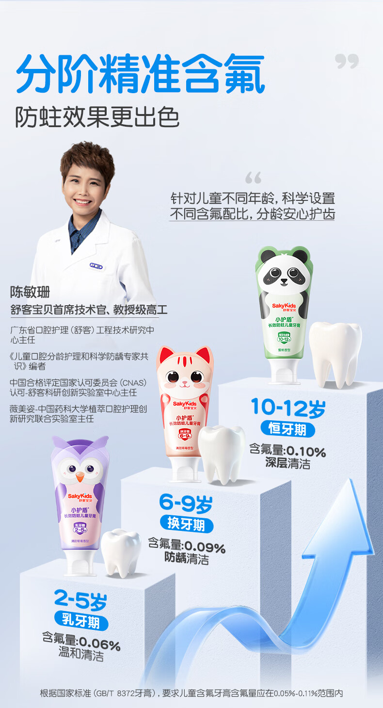 舒客宝贝儿童牙膏套装小护盾12小时长效防蛀牙膏60g*4支装(6-9岁)