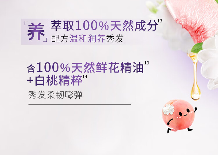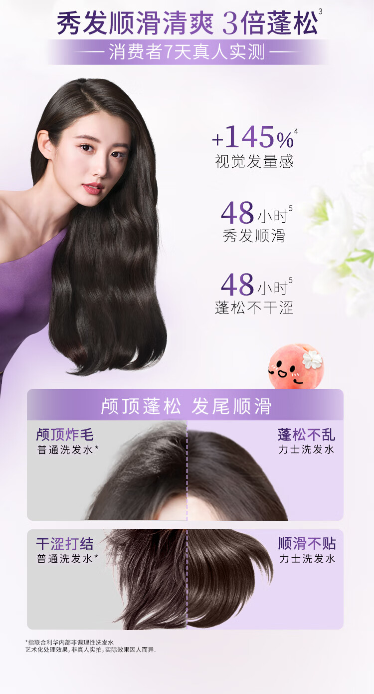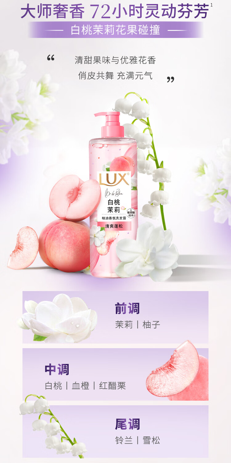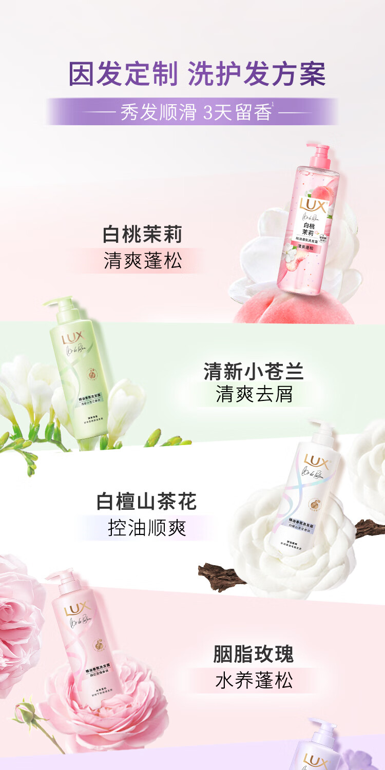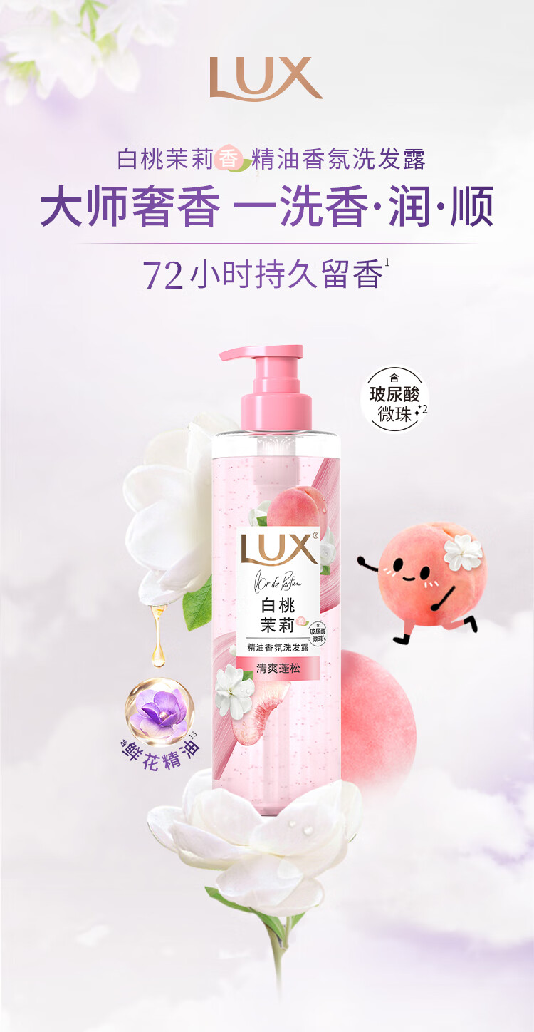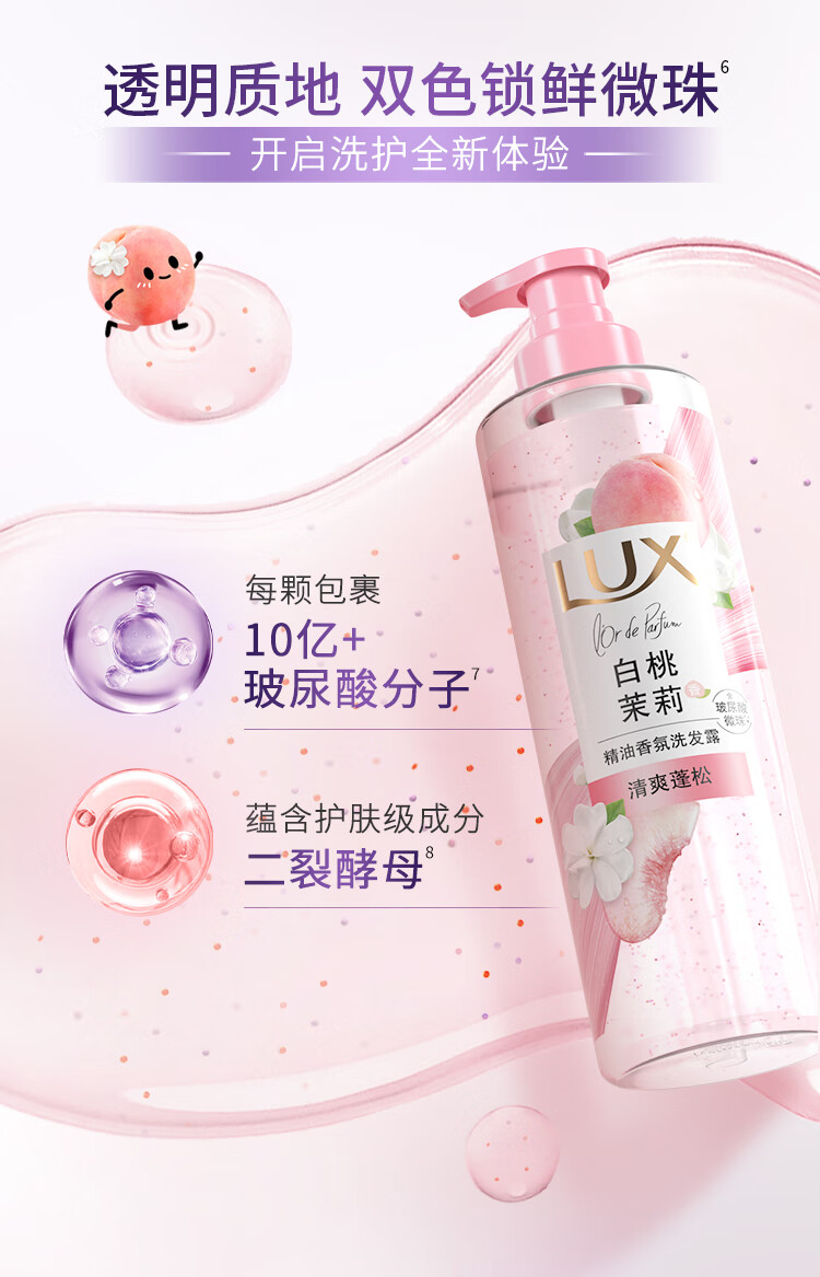 力士白桃茉莉香氛蓬松洗发水470gx2 玻尿酸洗发露