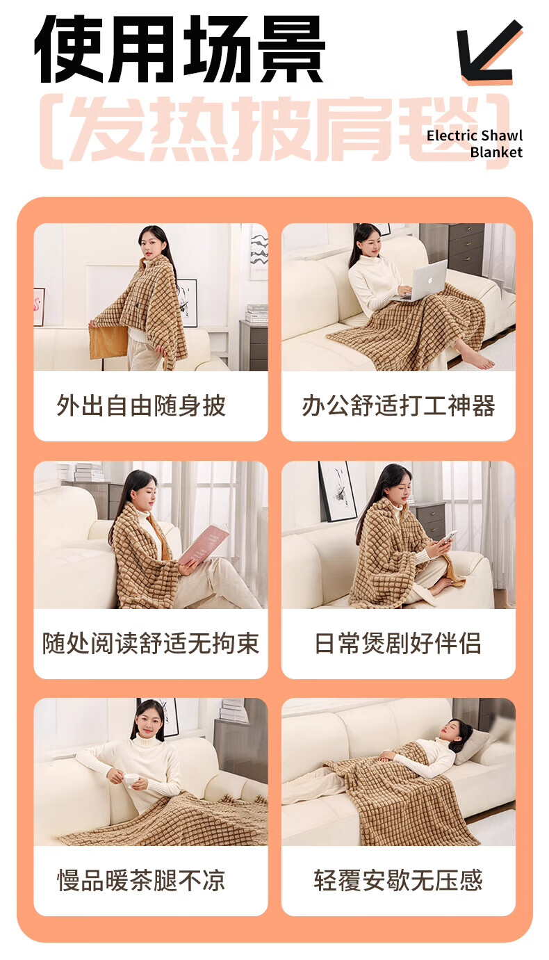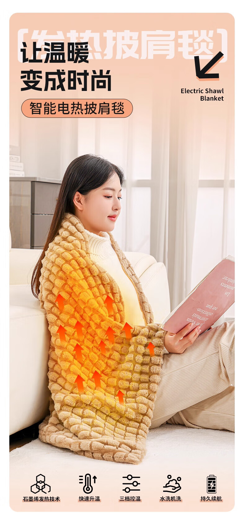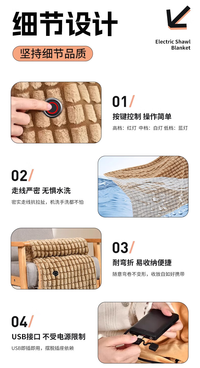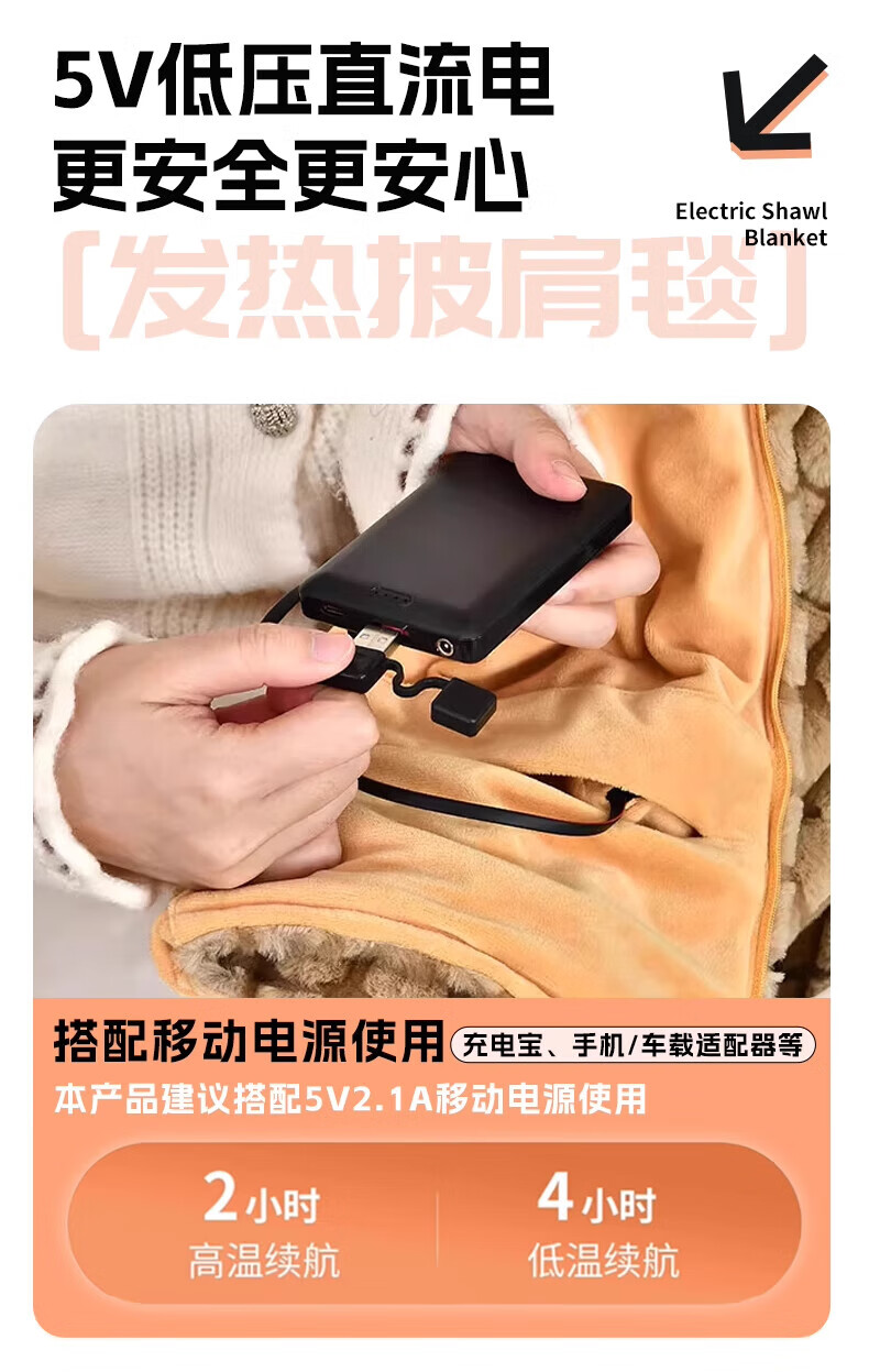 DEATKN德国高端电热毯暖身毯发热暖披肩暖腿USB免插电家用办公室盖腿身 【食品级材质】1-3人用+备用刀片