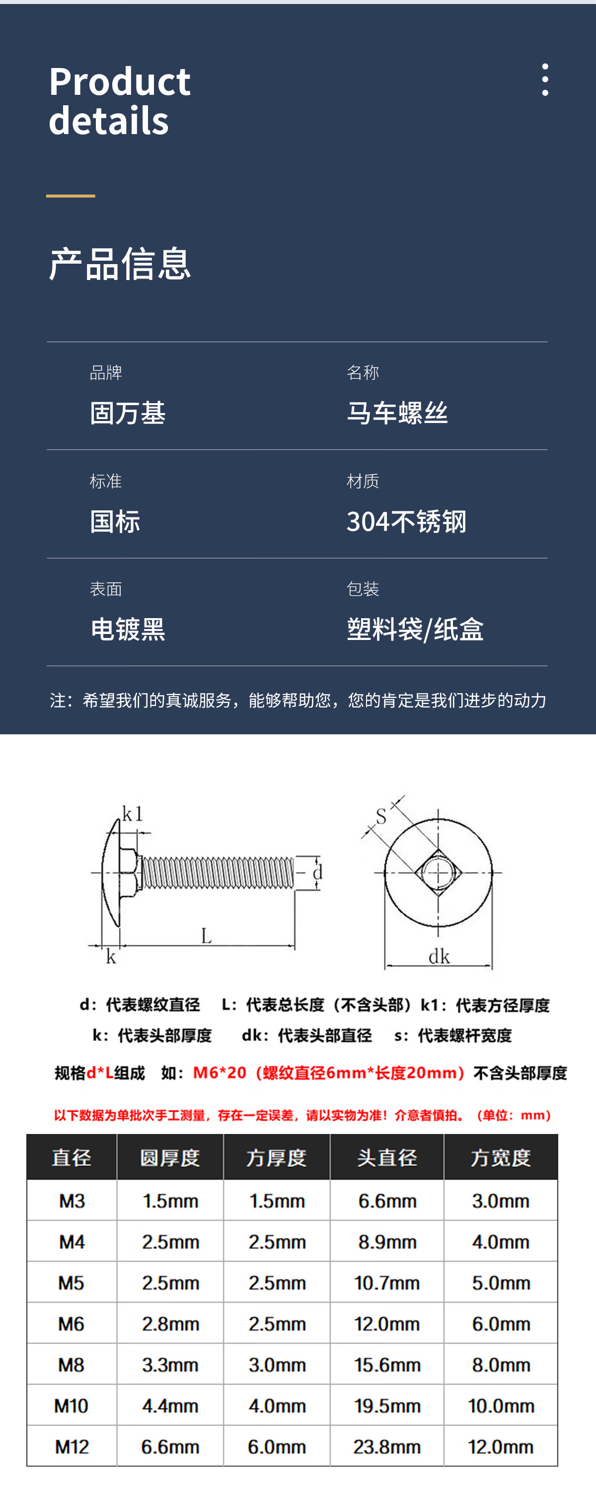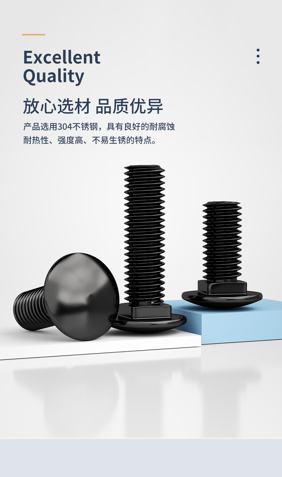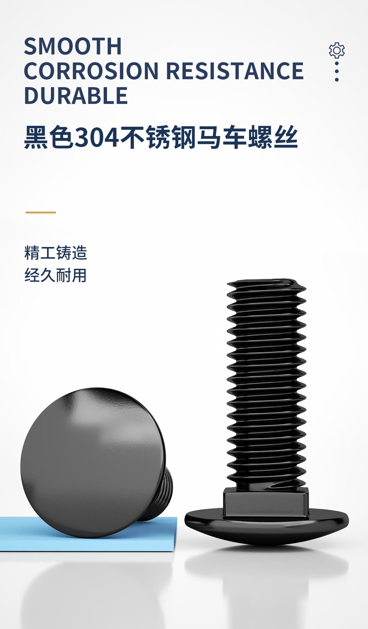 固万基(GUWANJI)黑色304不锈钢马车螺栓GB12半圆方颈扁头货架螺丝M3M4-M12 M3x30[100个]