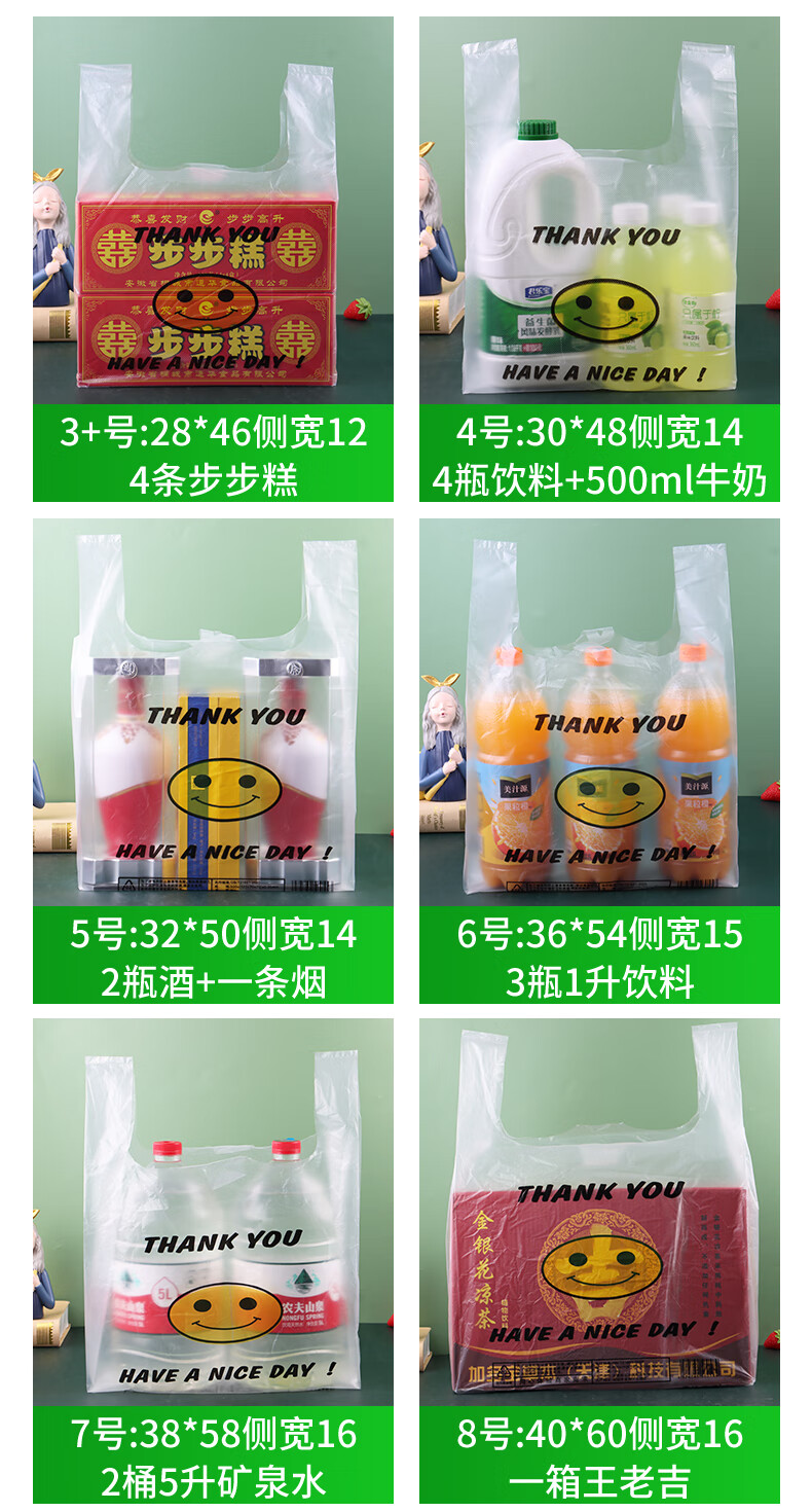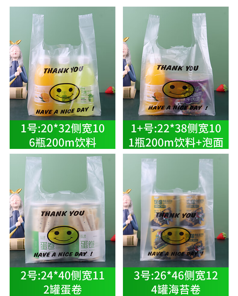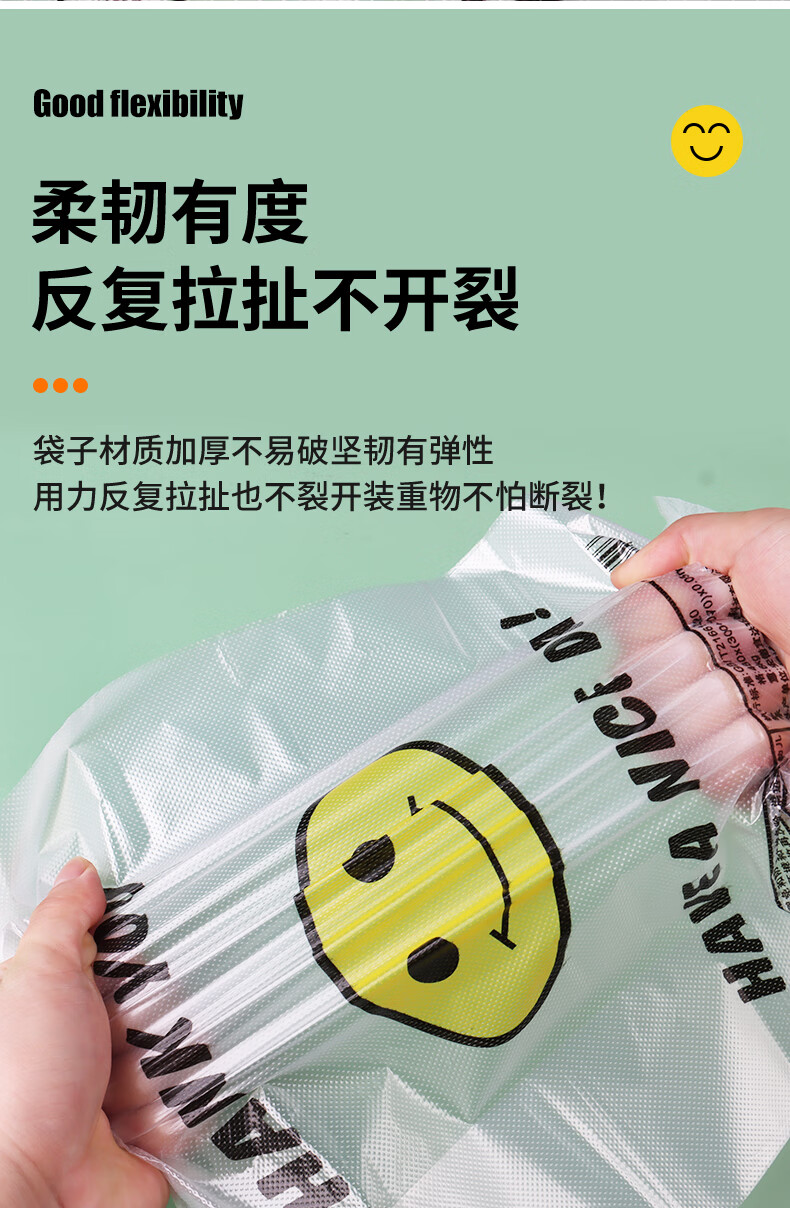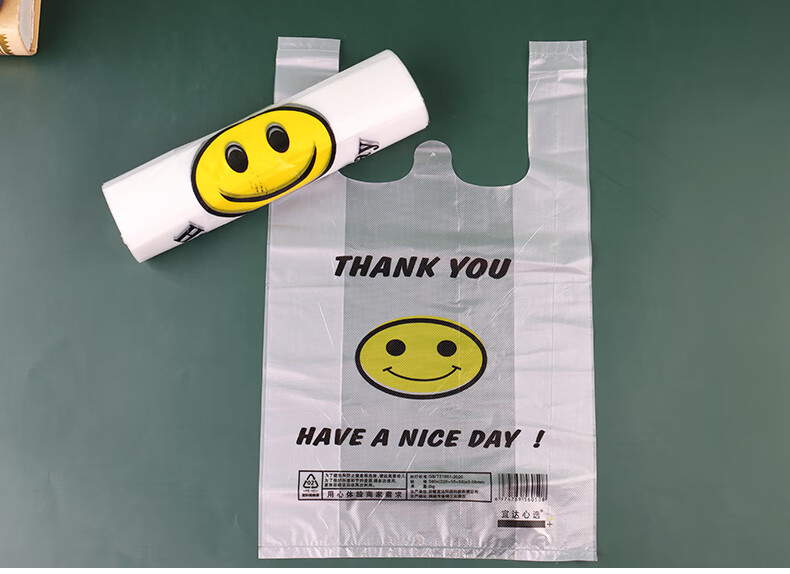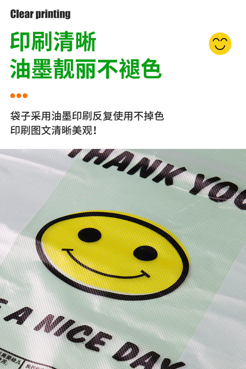 笑脸加厚透明塑料袋外卖食品袋商用打包背心购物方便手提袋子批发 20*32*10cm 中厚 笑脸袋 50个