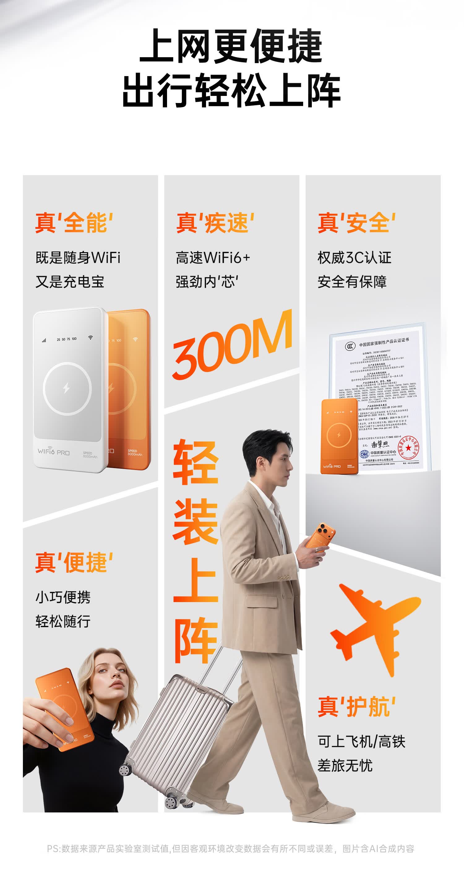 椰贝5G随身wifi6移动无线网络2026款月租1500G无限高速流量全国通用路由器网卡热点8000毫安 【升级充电款】8000毫安大电池 【终身质保】365天免费换新+不卡顿不虚标