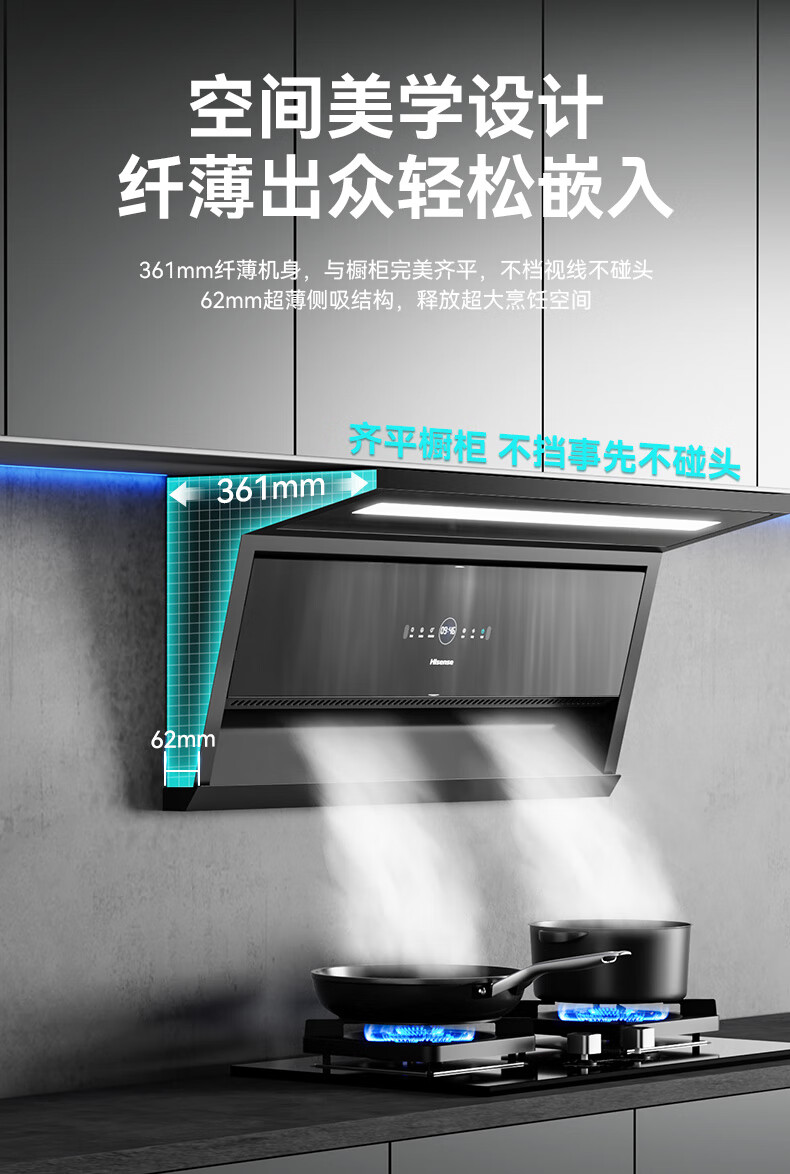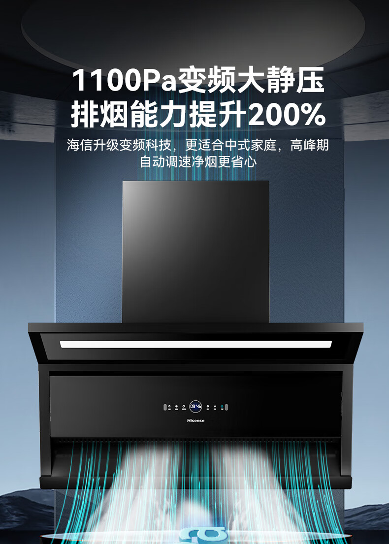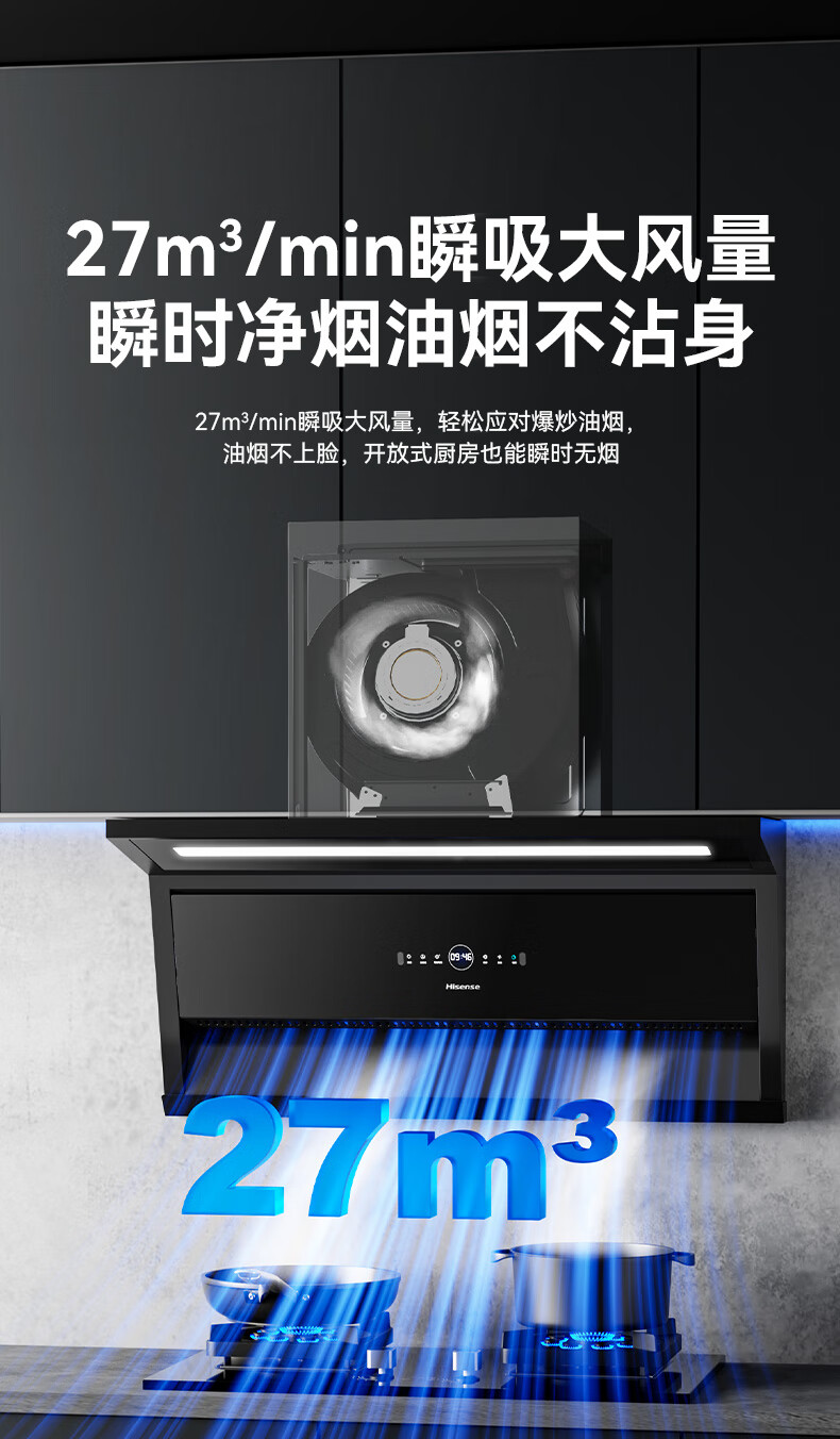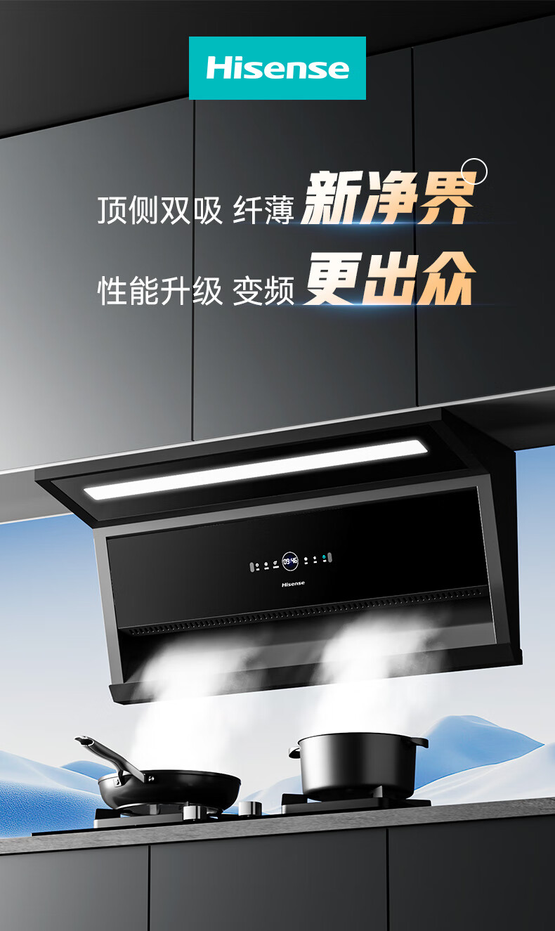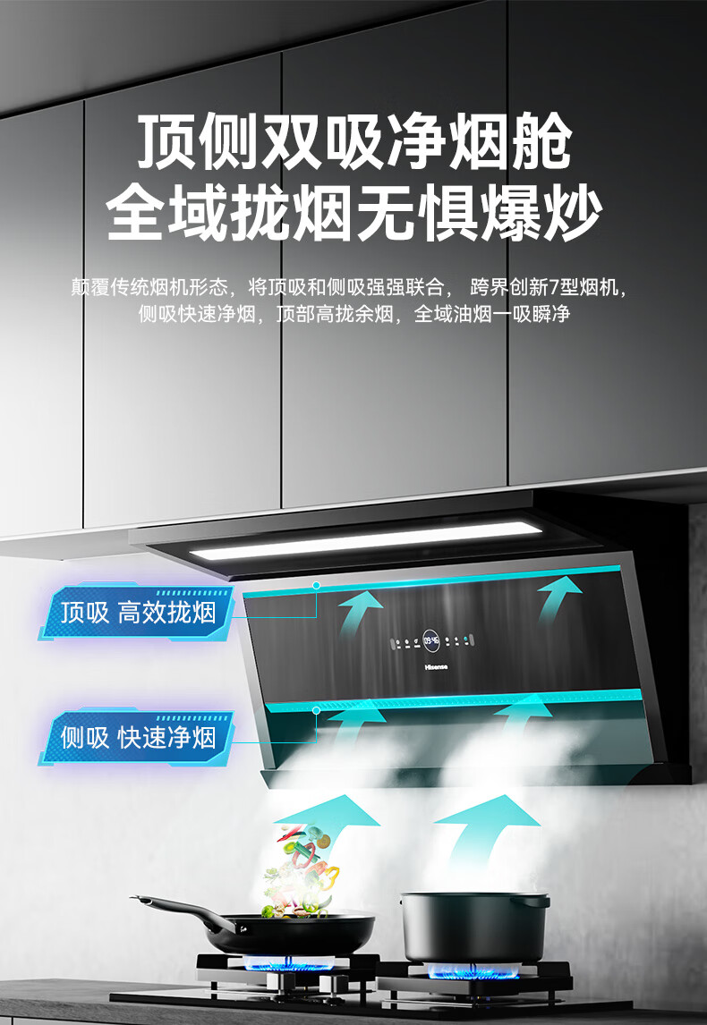 海信(Hisense)烟灶套装大吸力变频抽油烟机家用厨房顶侧双吸挥手智控自清洗 顶侧双吸挥手智控+聚能猛火灶天然气