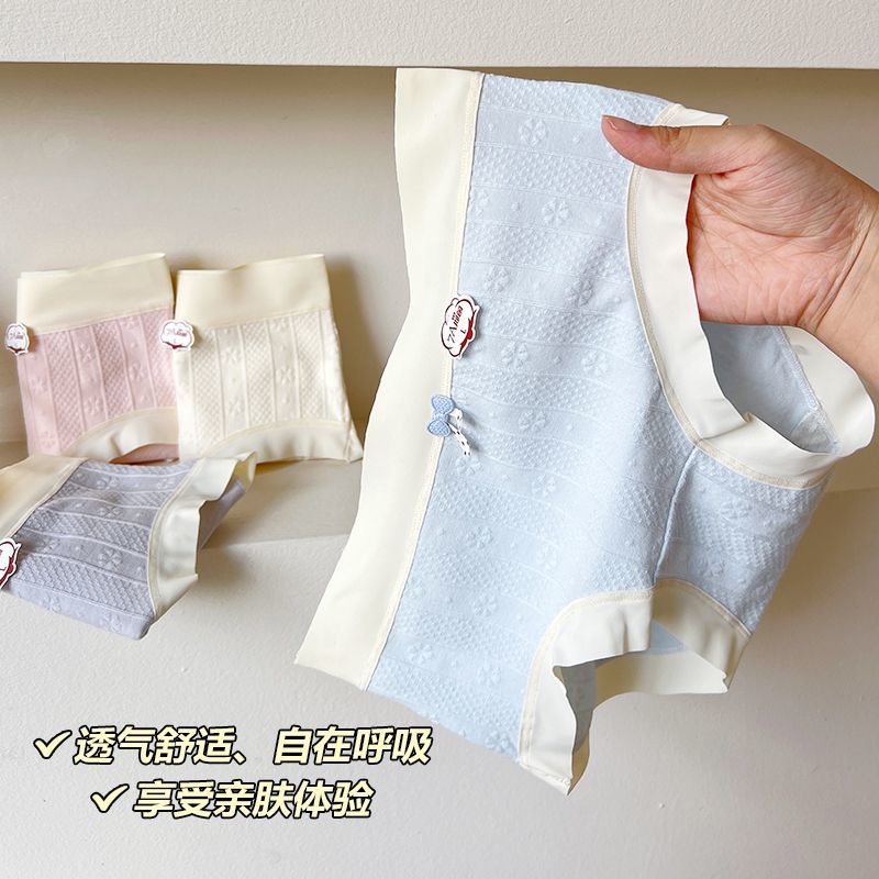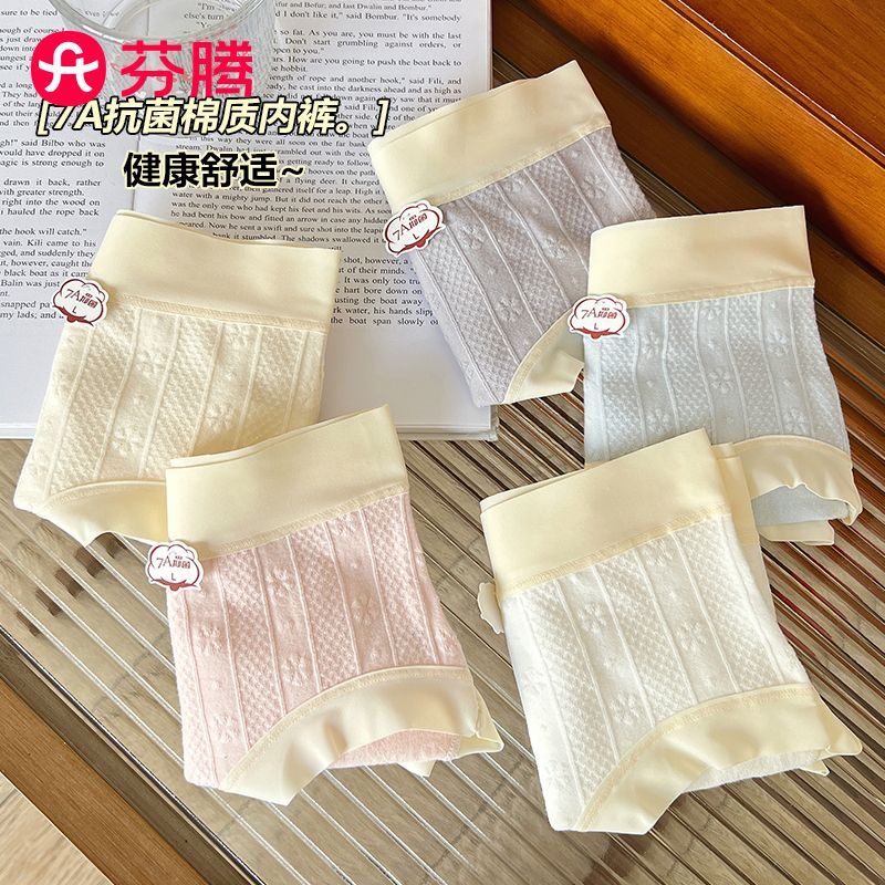 芬腾7A抗菌棉质内裤纯棉提花透气中腰包臀可爱少女学生三角裤头