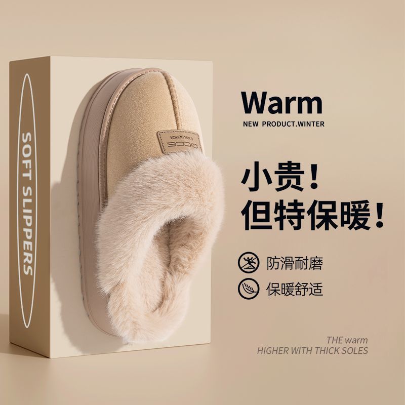 秋冬季2025新款翻半包跟棉拖鞋加绒保暖居家室内毛毛绒厚底防滑