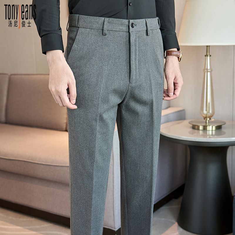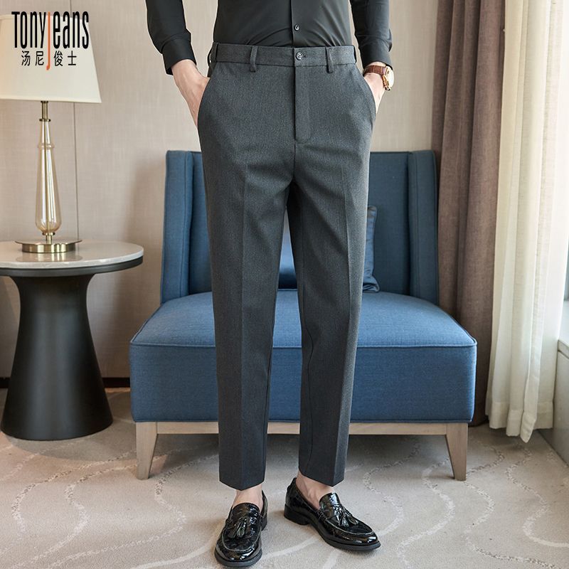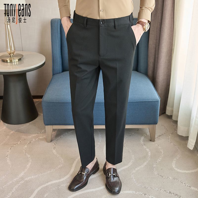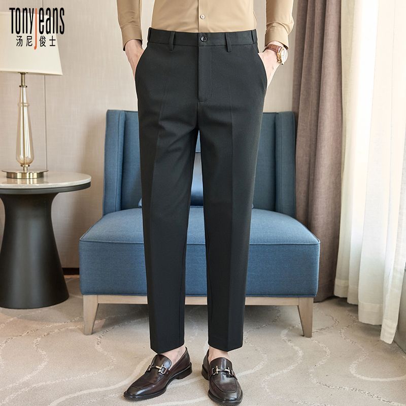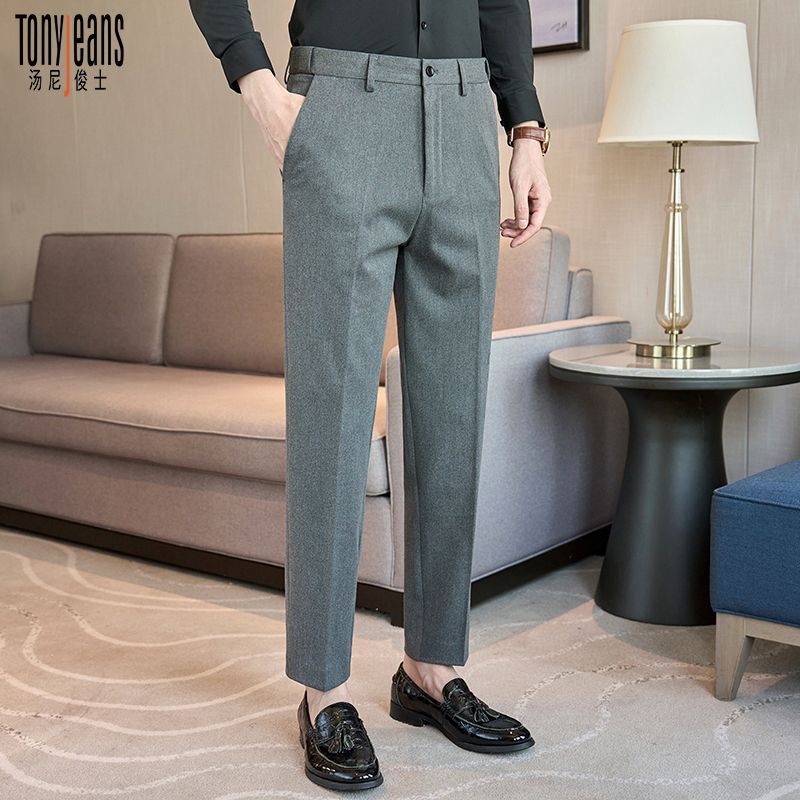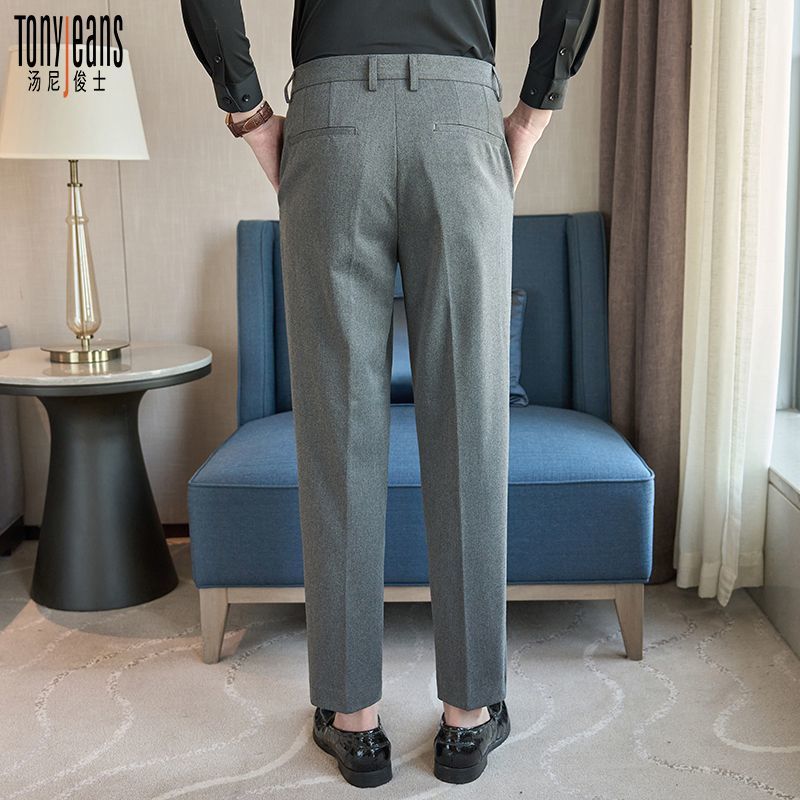 汤尼俊士春秋季男士休闲简约免烫西装裤韩版弹力修身直筒小脚西裤