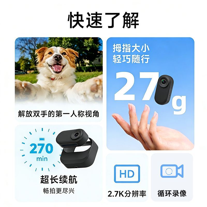 影巨人执法记录仪高清Vlog儿童亲子宠物运动相机磁吸防抖骑行相机