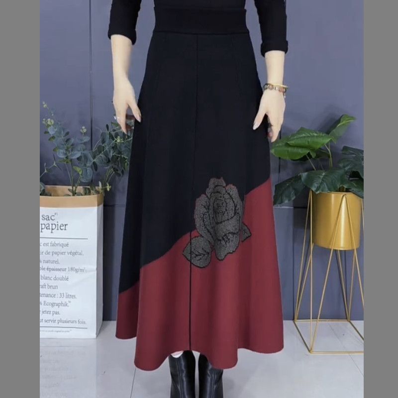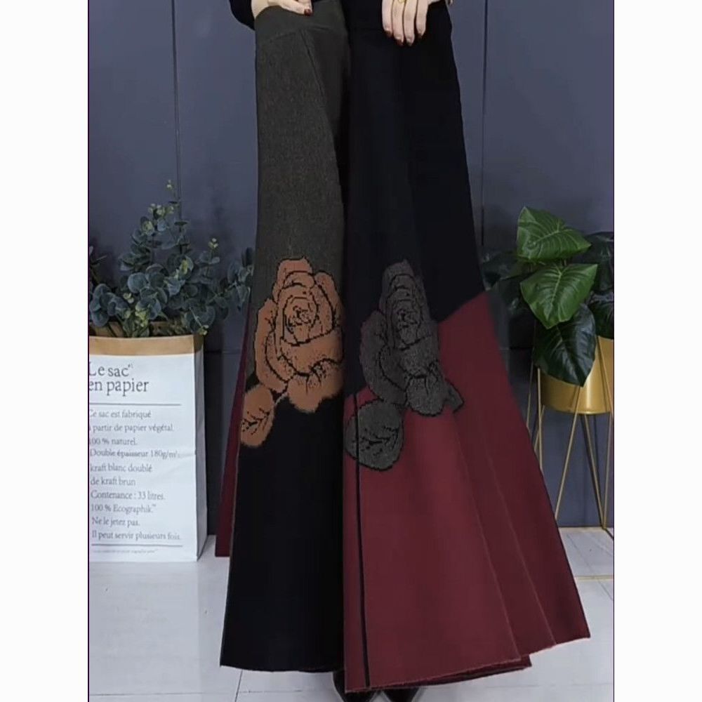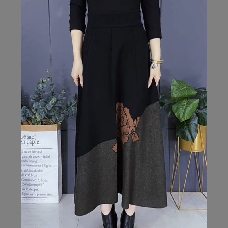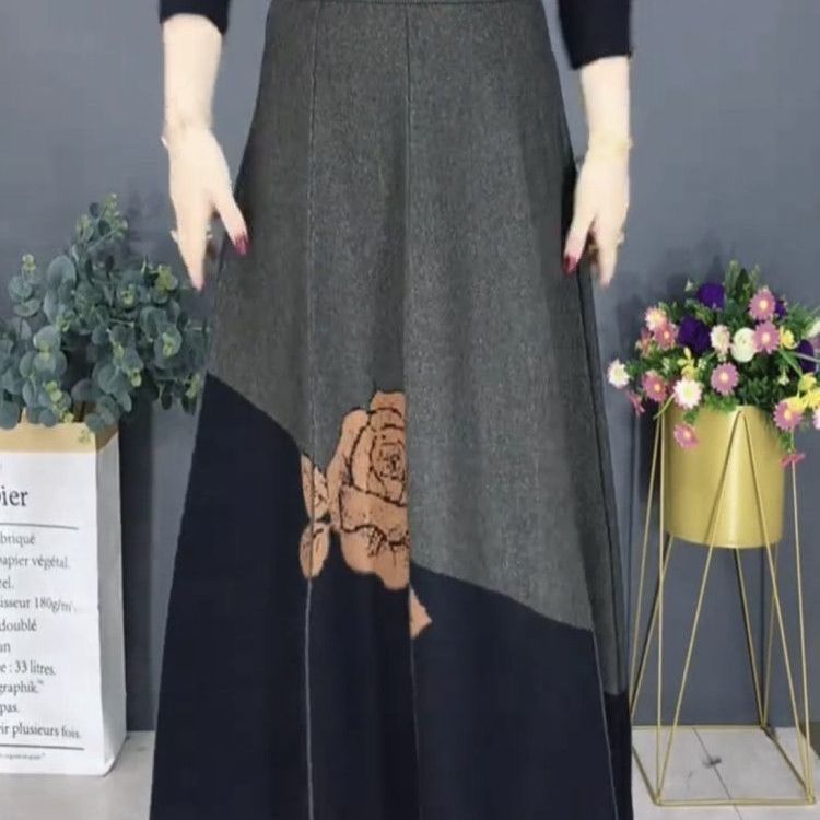 秋冬新款格子仿针织半身裙女加厚高腰显瘦百褶裙大摆裙妈妈裙子