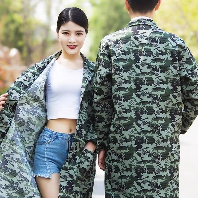 蓝大褂马褂工作服迷彩防尘春夏搬运耐磨劳保罩衣长袖外穿围裙