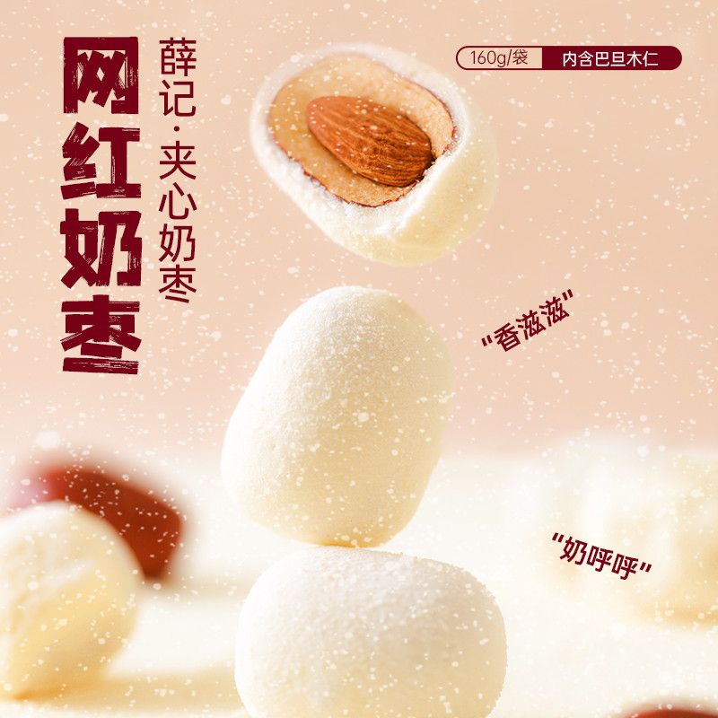 薛记炒货夹心奶枣66g*3袋巴旦木夹心网红奶枣休闲解馋零食独立装